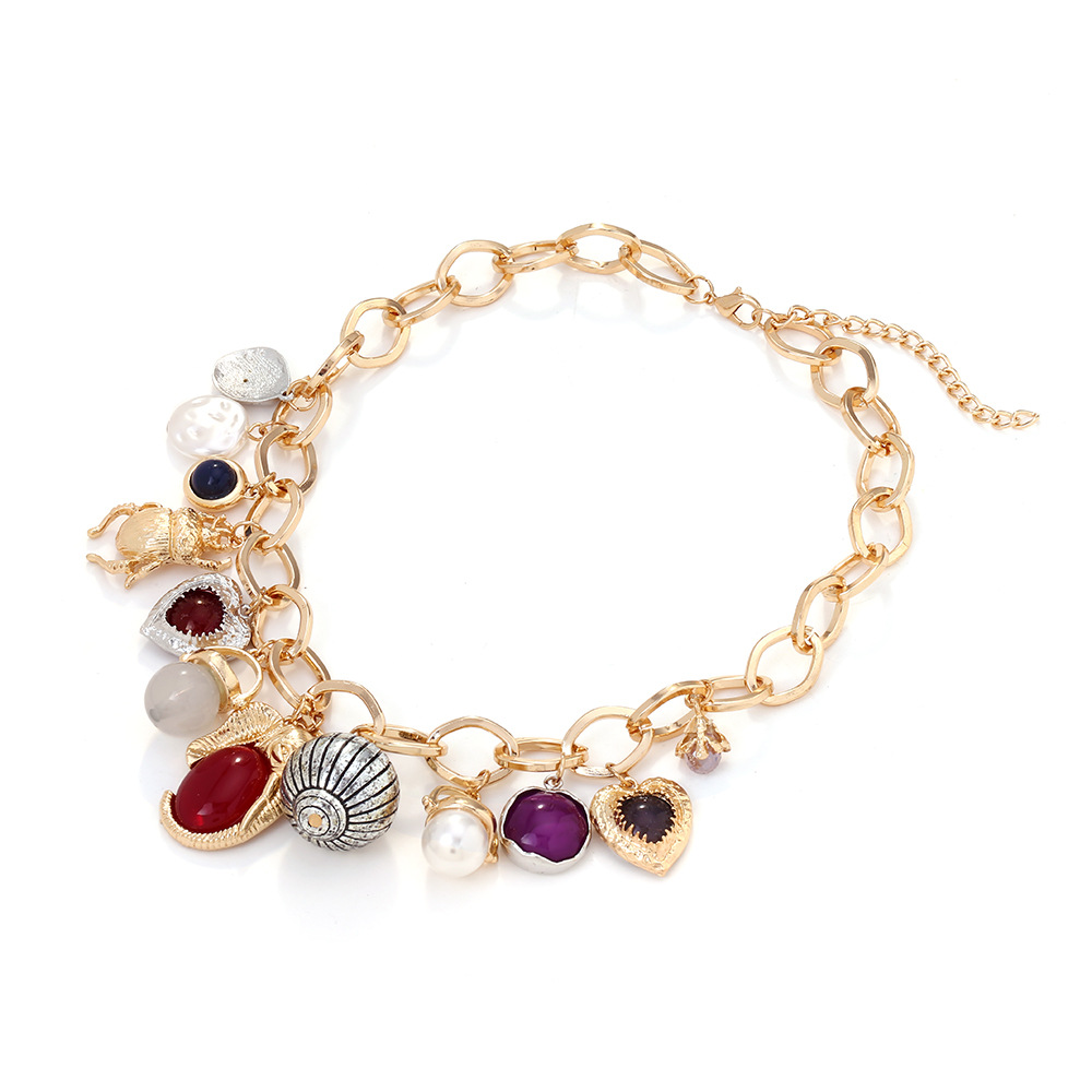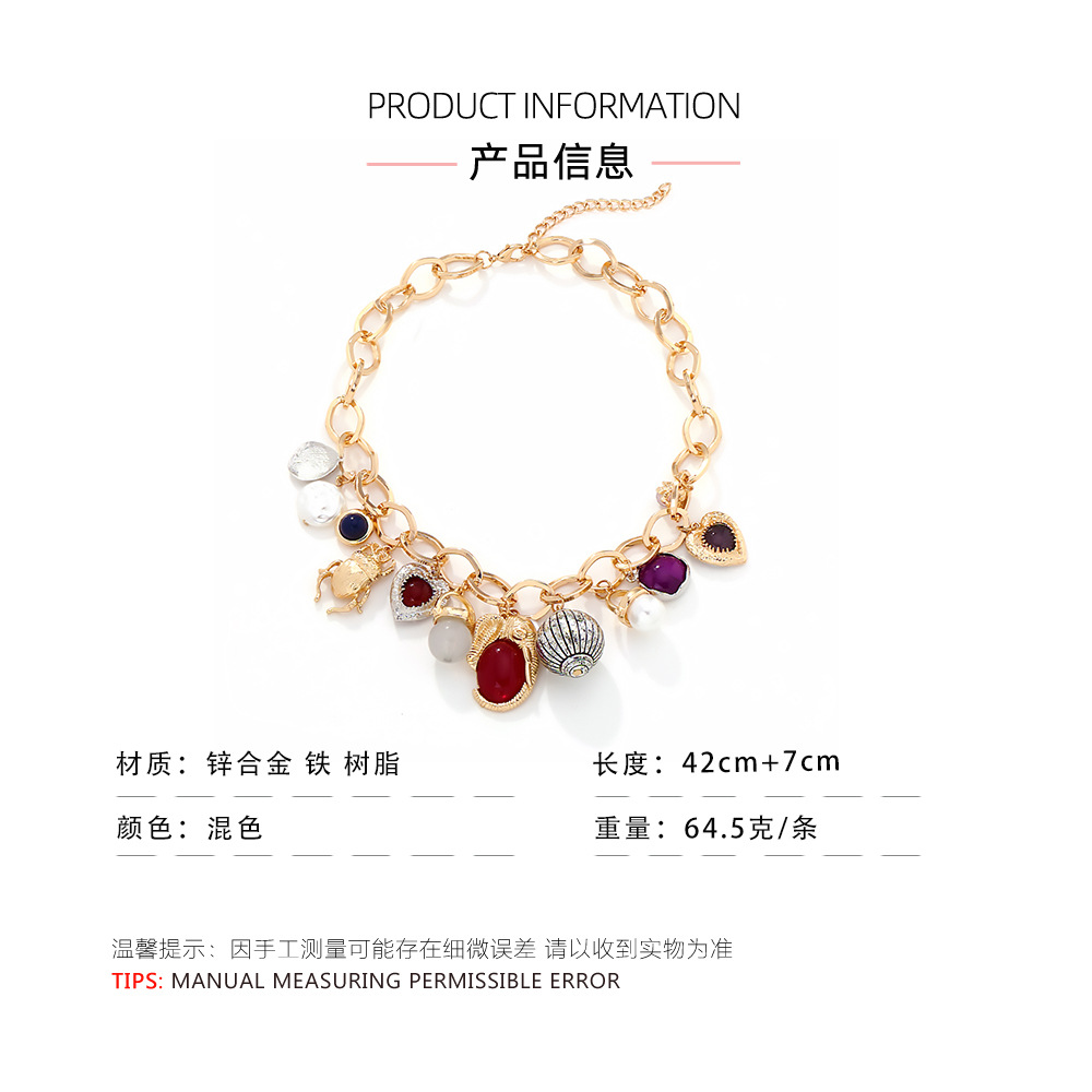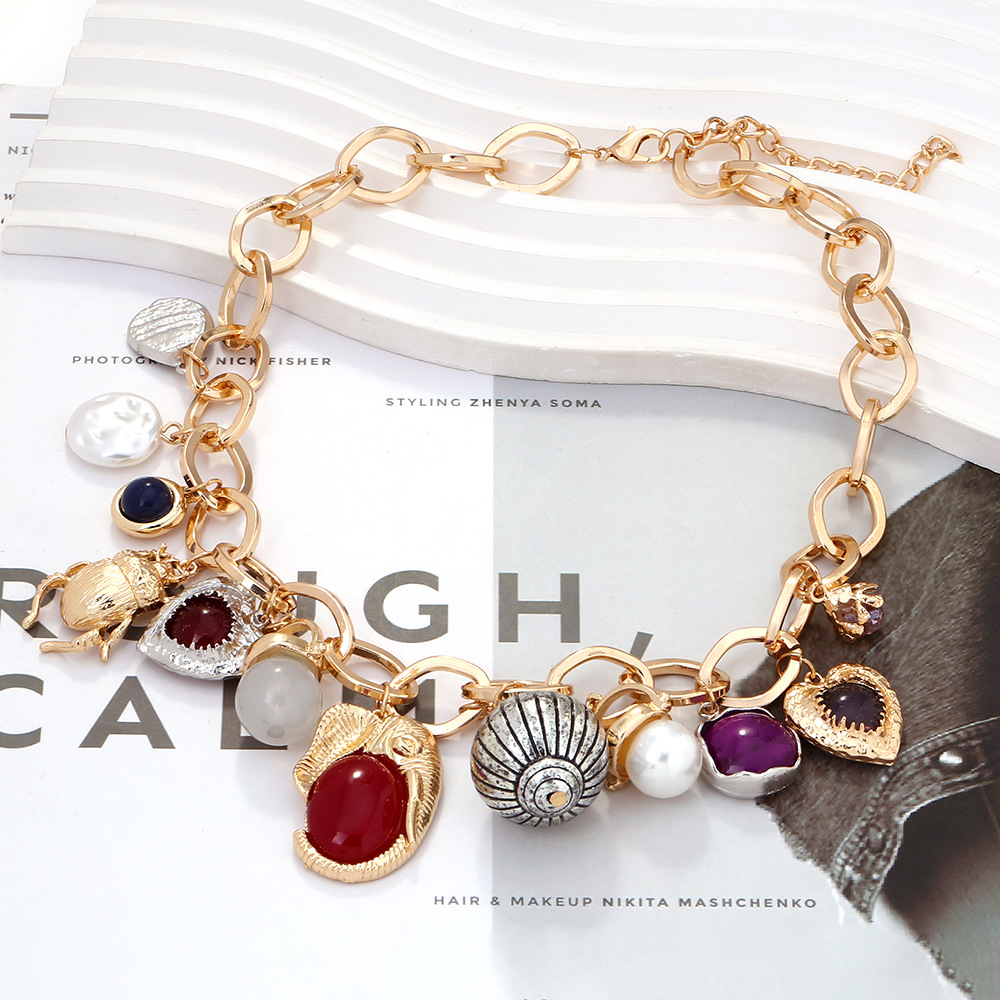 ZA Exaggerated Palace Style Love Insect Pearl Pendant Necklace European and American Retro Mix and Match Coarse Clavicle Chain Cross-border Women