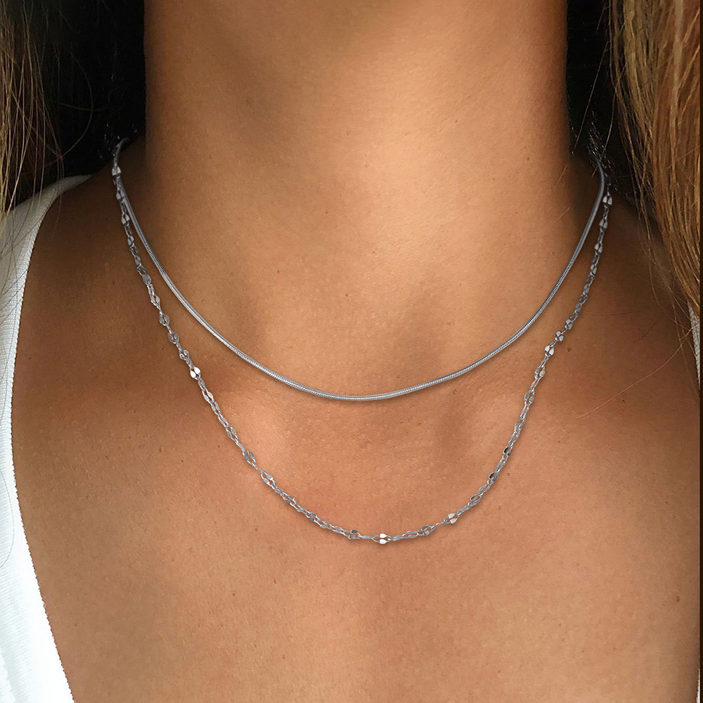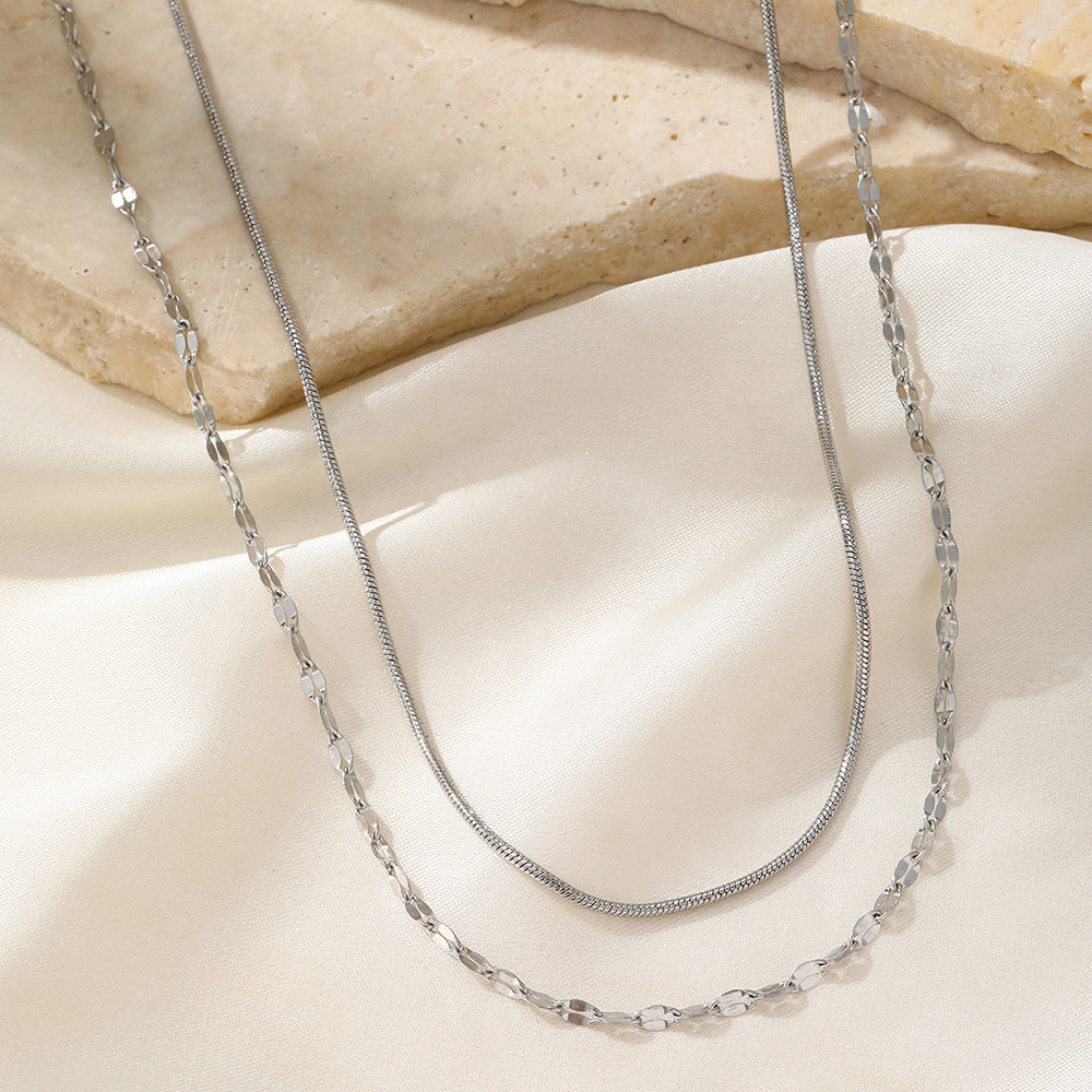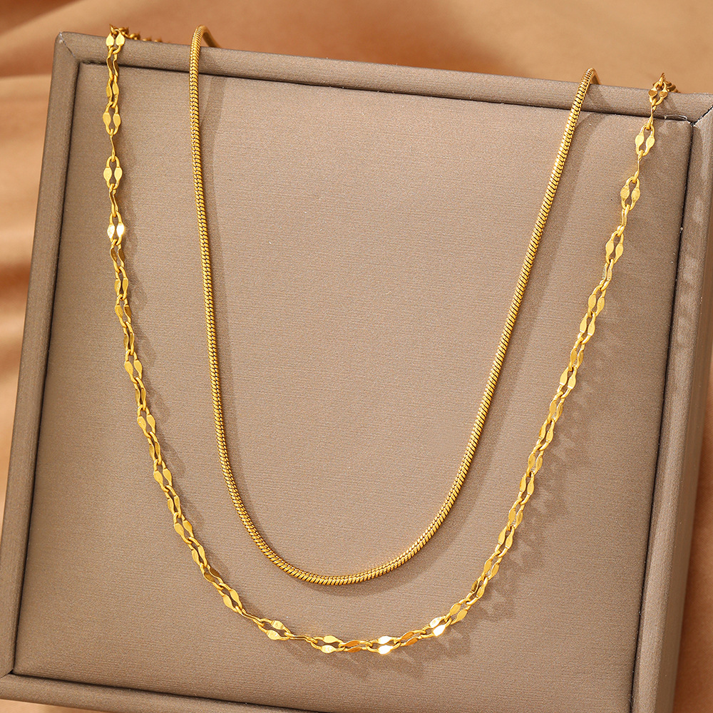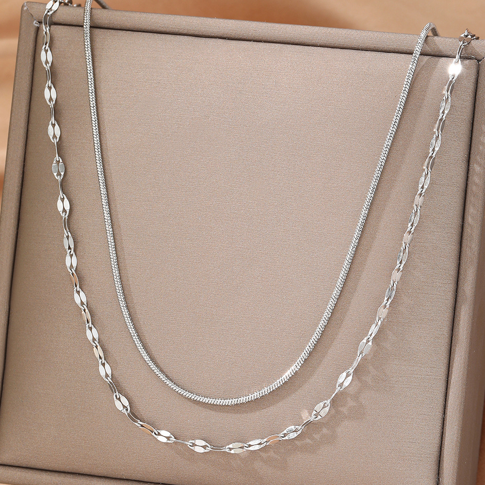 Japanese and Korean-style Niche Simple Snake Bone Chain Spiral Blade Chain Double-layer Necklace Sweet Cool Style All-match Girl's Clavicle Chain