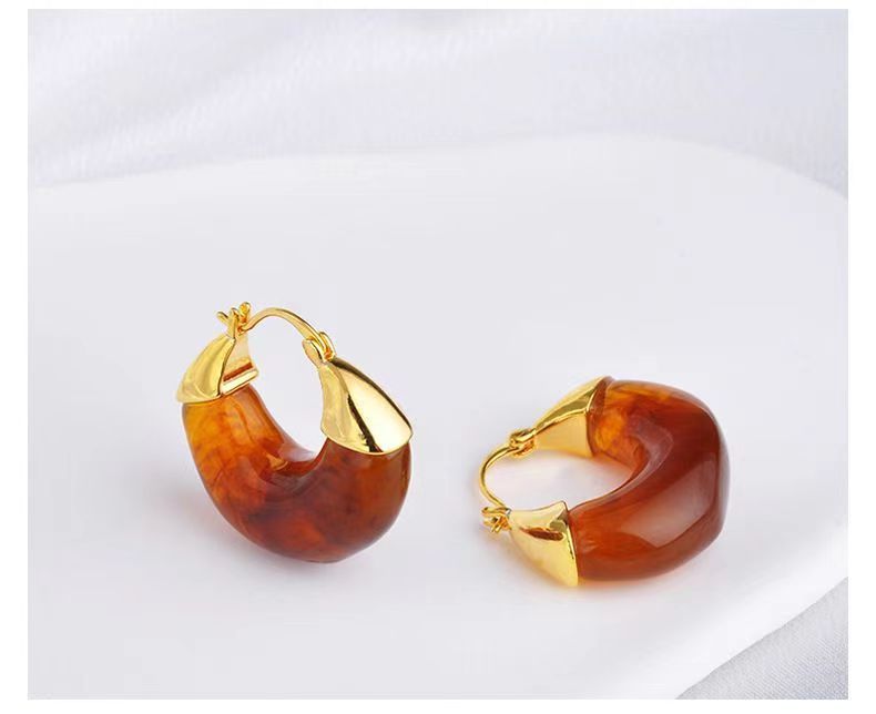 Vintage Elegant Earrings Niche Design Earrings Advanced Sense Exaggerated Earrings Women's Colorful Transparent Resin Earrings Light Luxury
