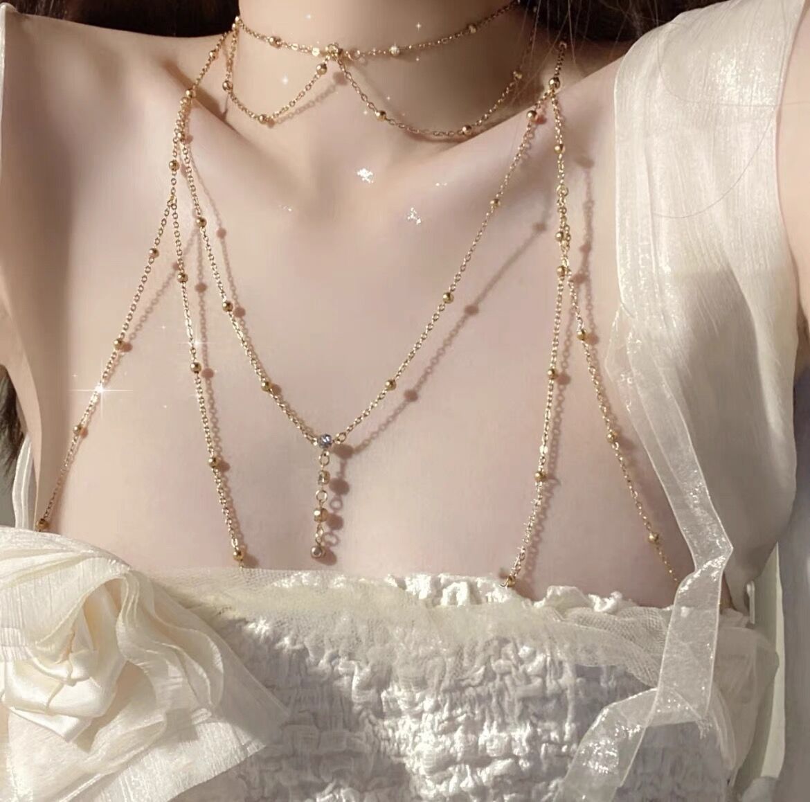 Color: White k set [body chain + necklace]