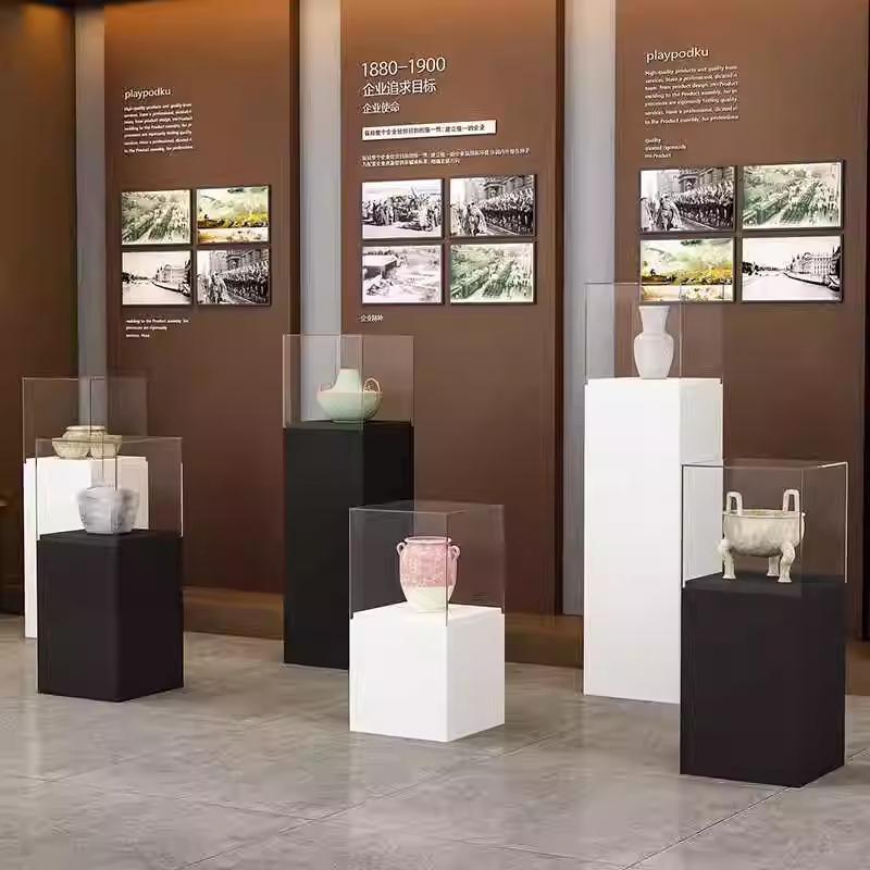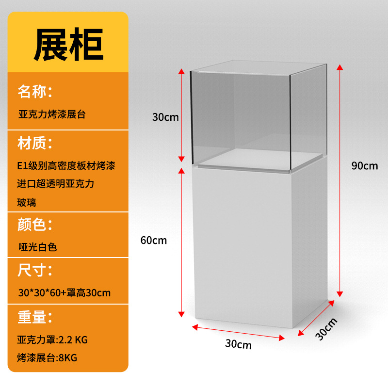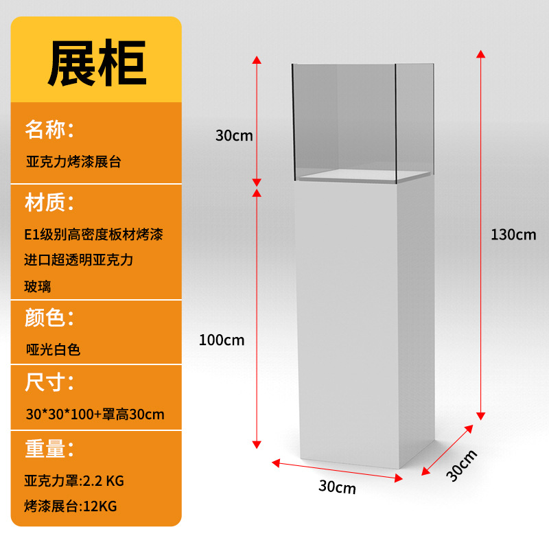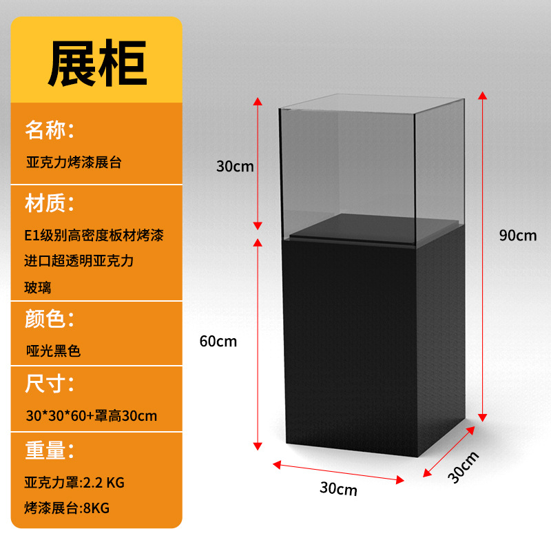 Specifications: Painted base 30*30*100+30cm high acrylic cover