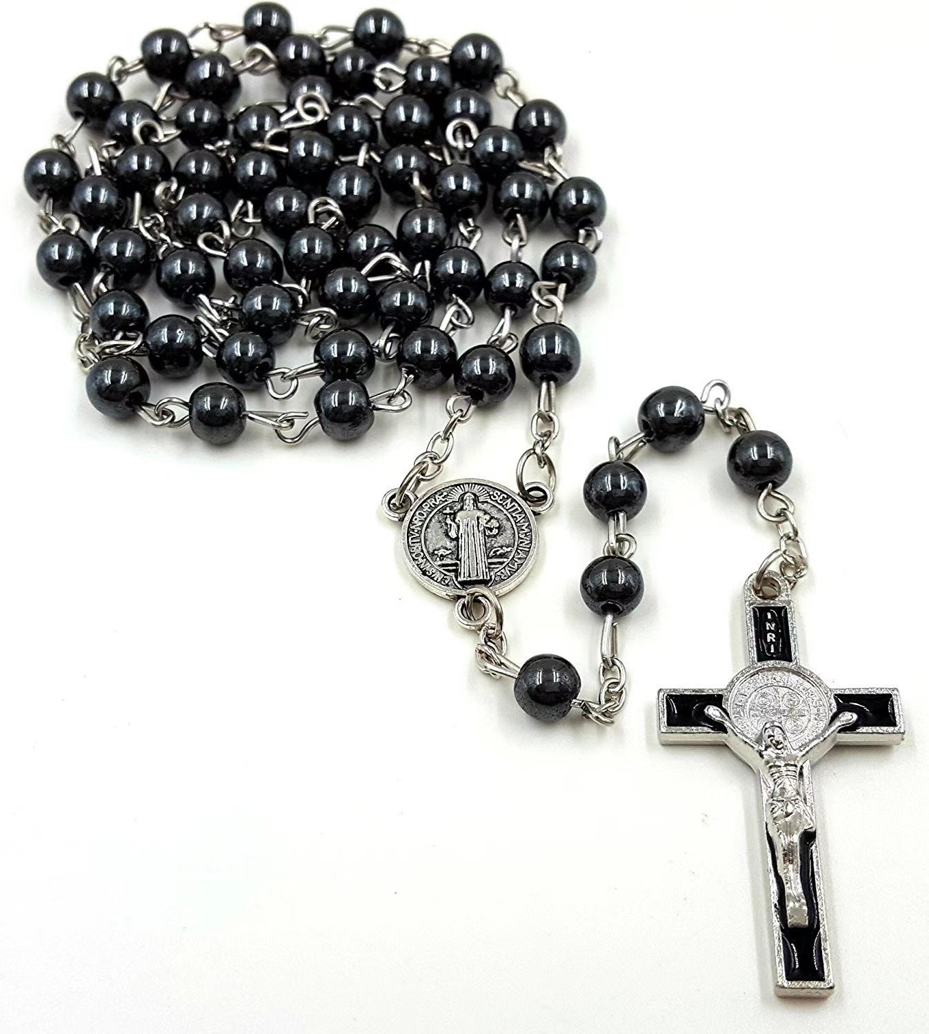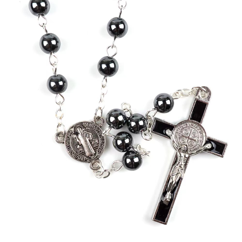 Foreign trade e-commerce St. Benedict black stone necklace cross jewelry Rosary Necklace