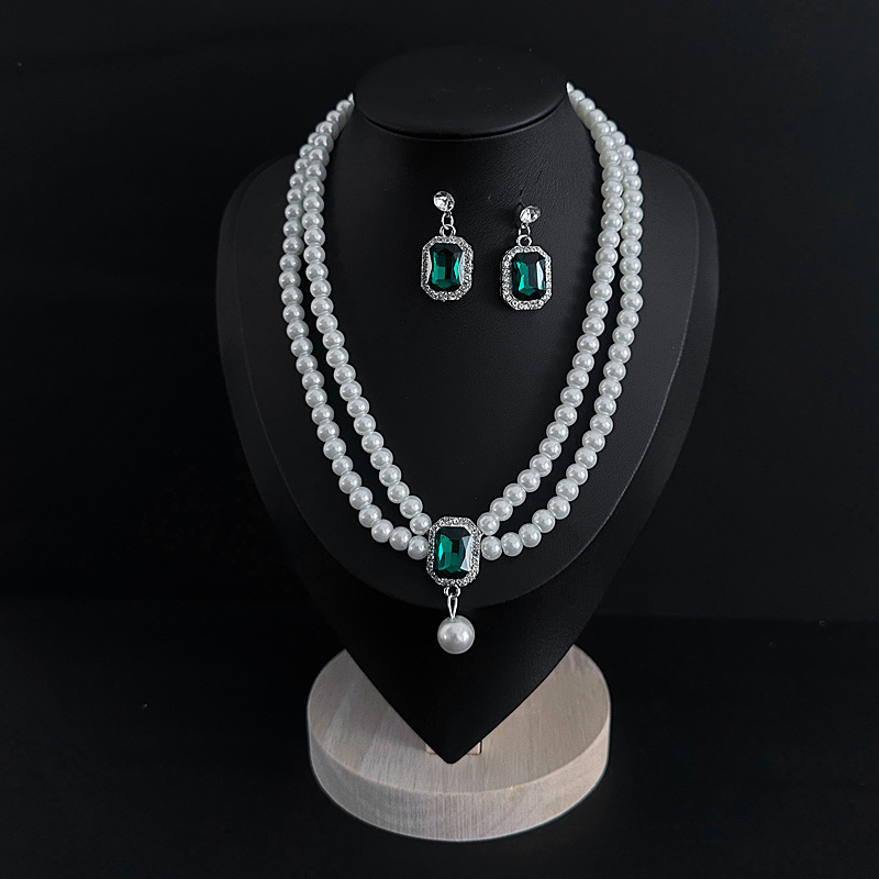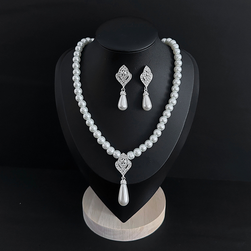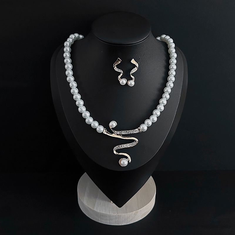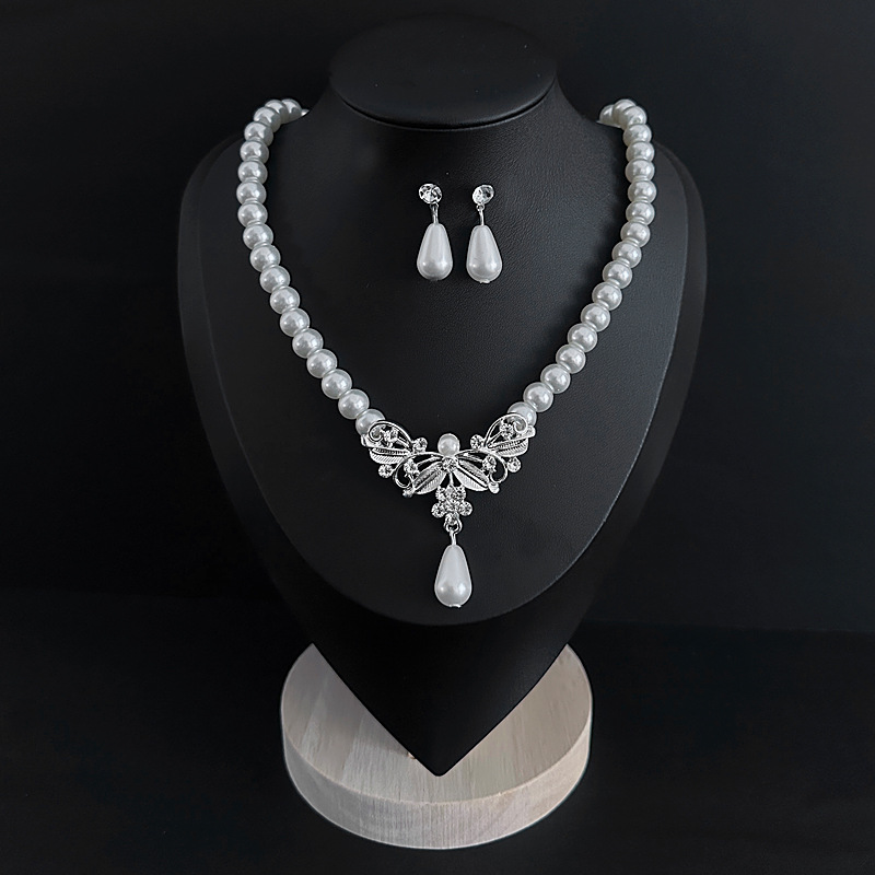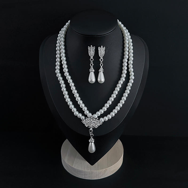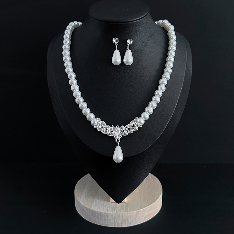 Color: Imitation pearl necklace two-piece set