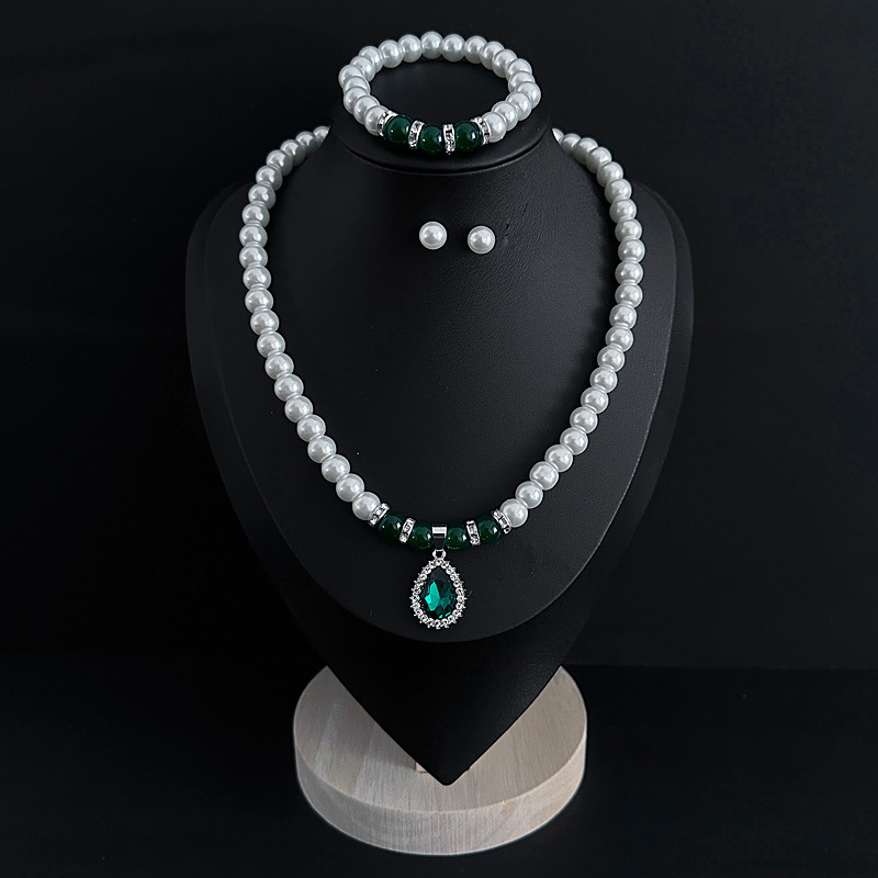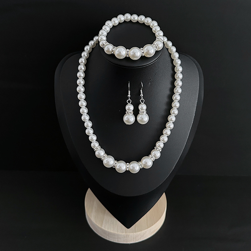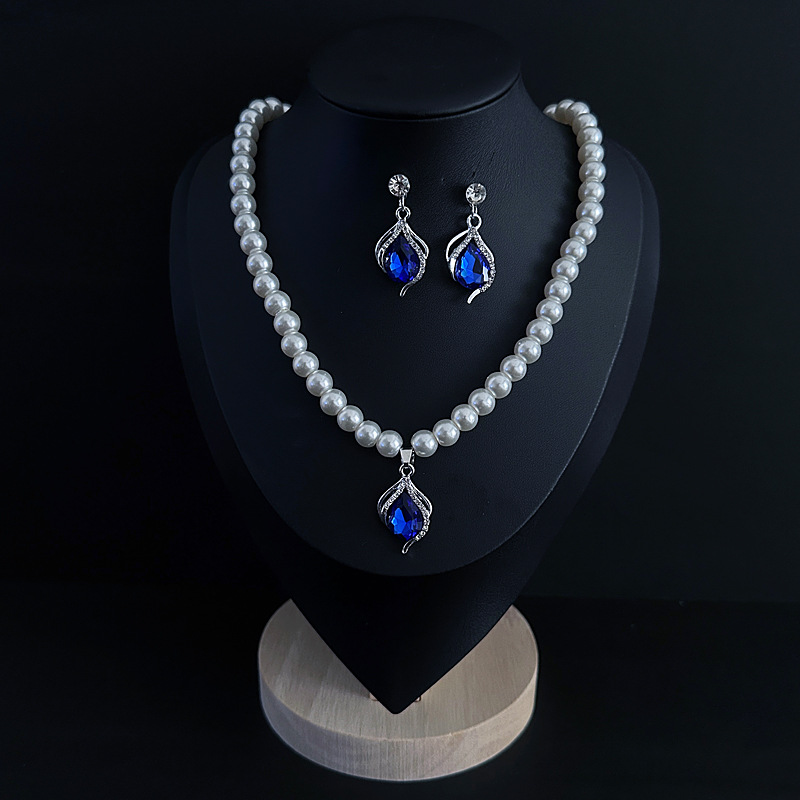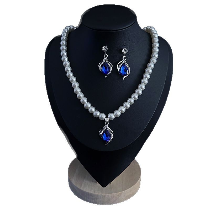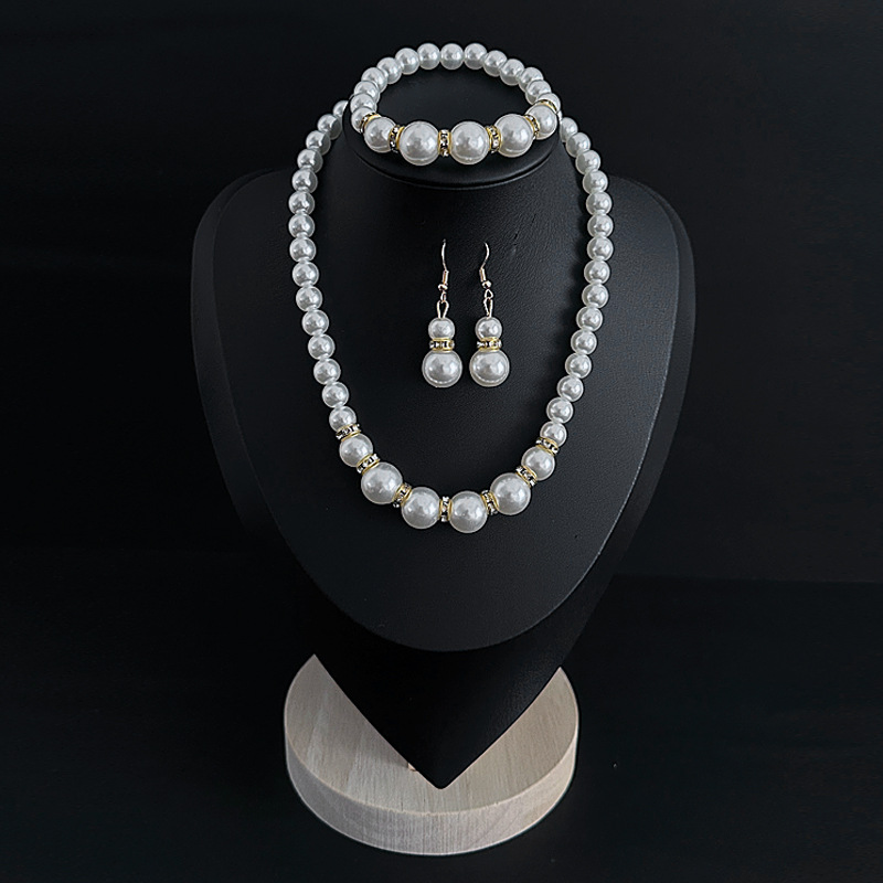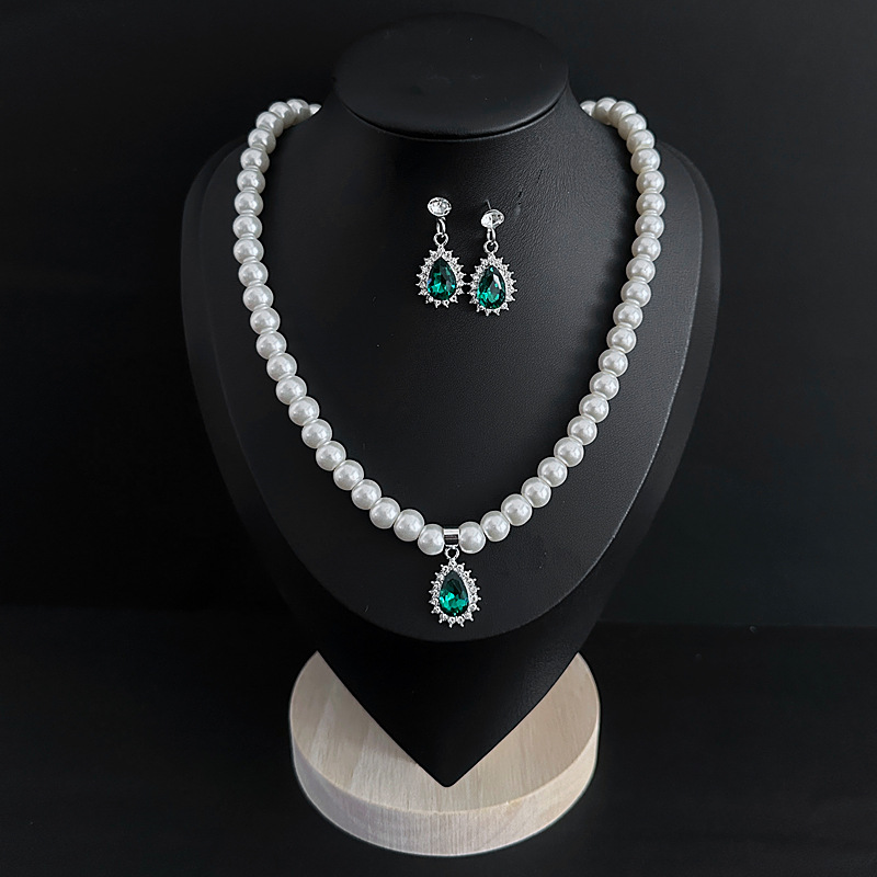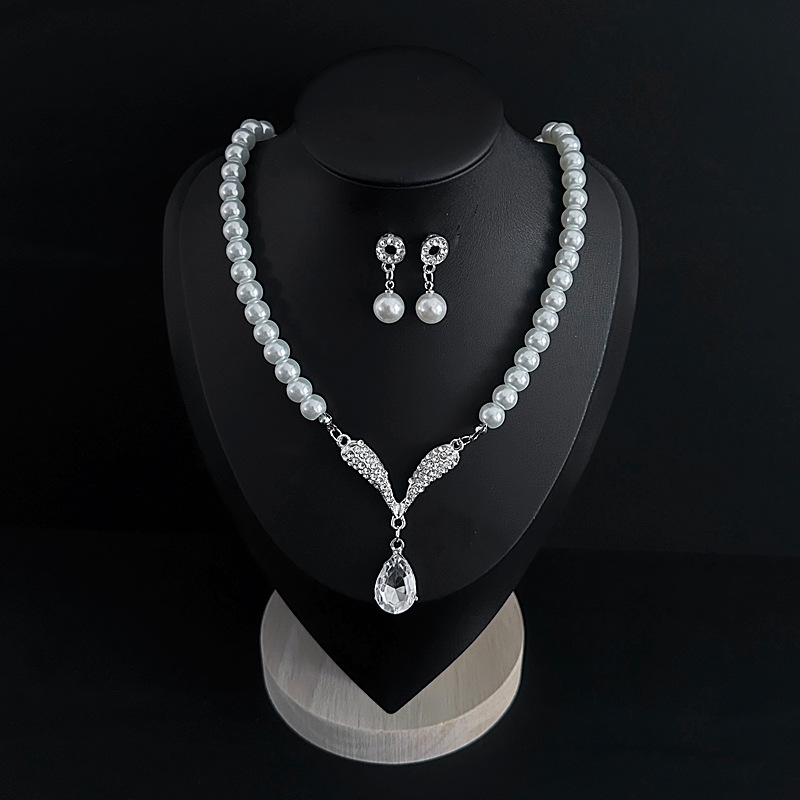 Color: Imitation pearl necklace two-piece set