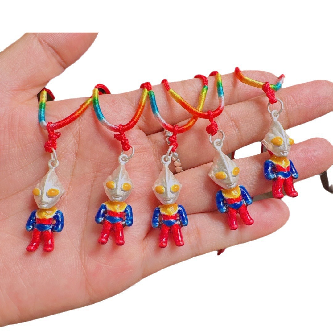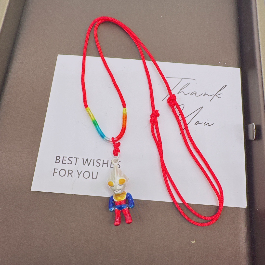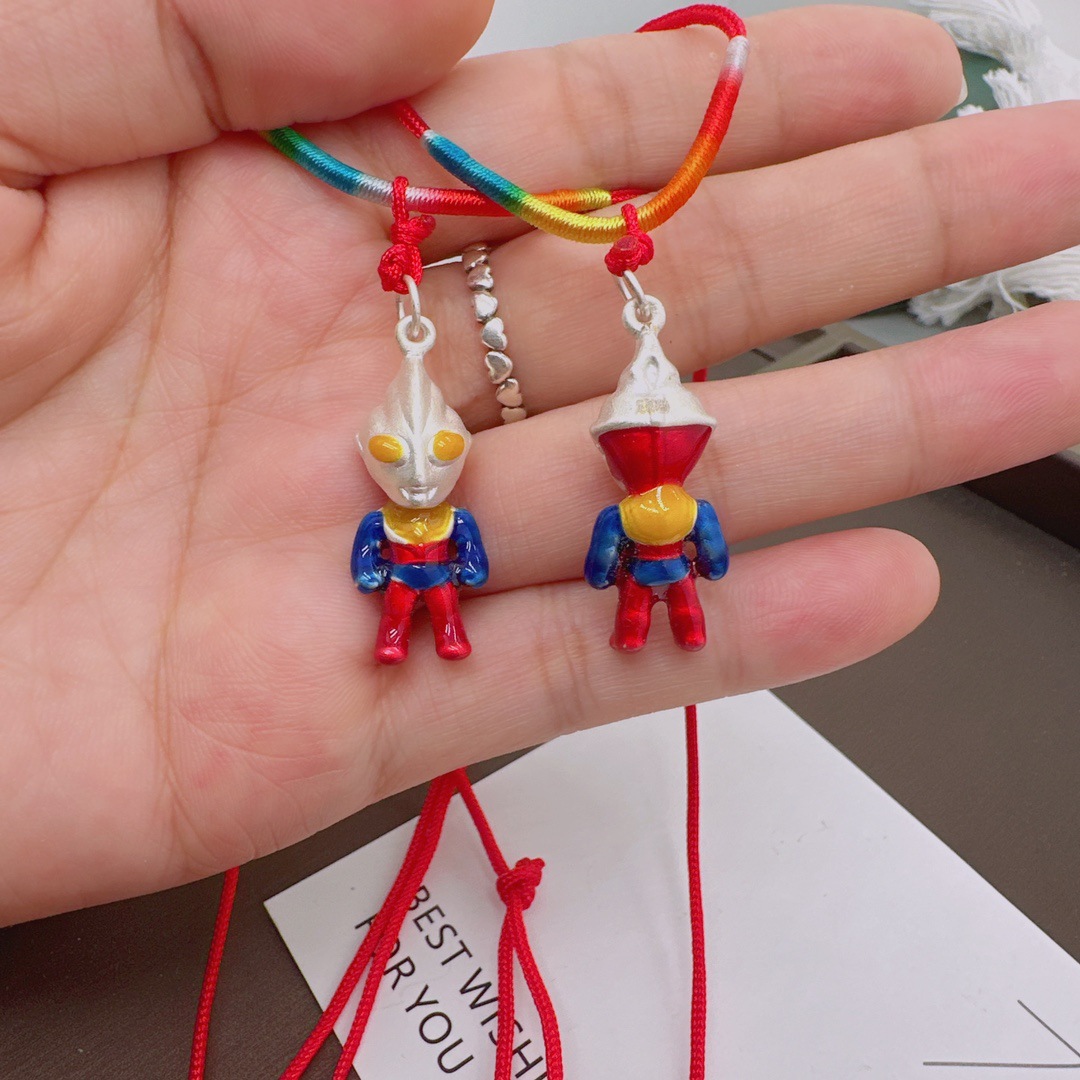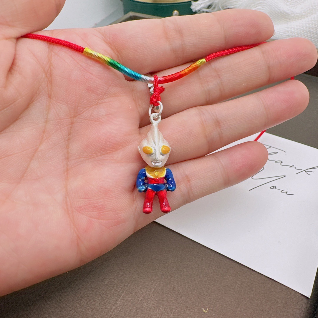 Silver 999 Ultraman Dragon Boat Festival Colorful Rope Sterling Silver Pendant Necklace Birthday Children's Holiday Gift for Boys