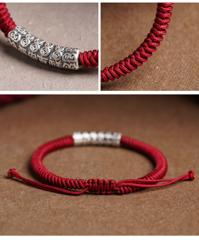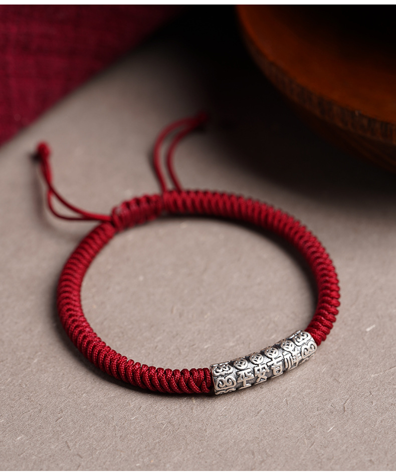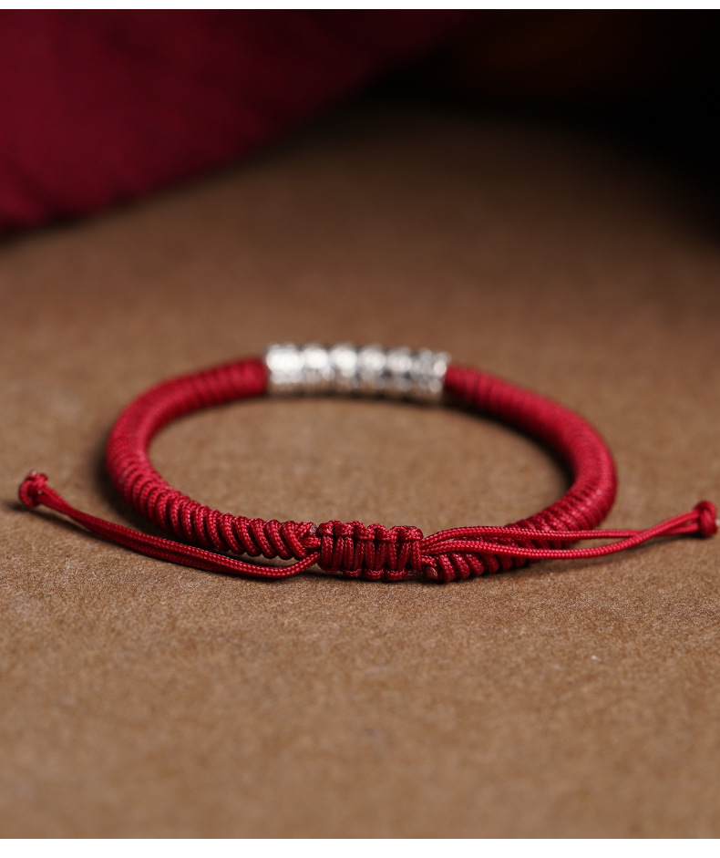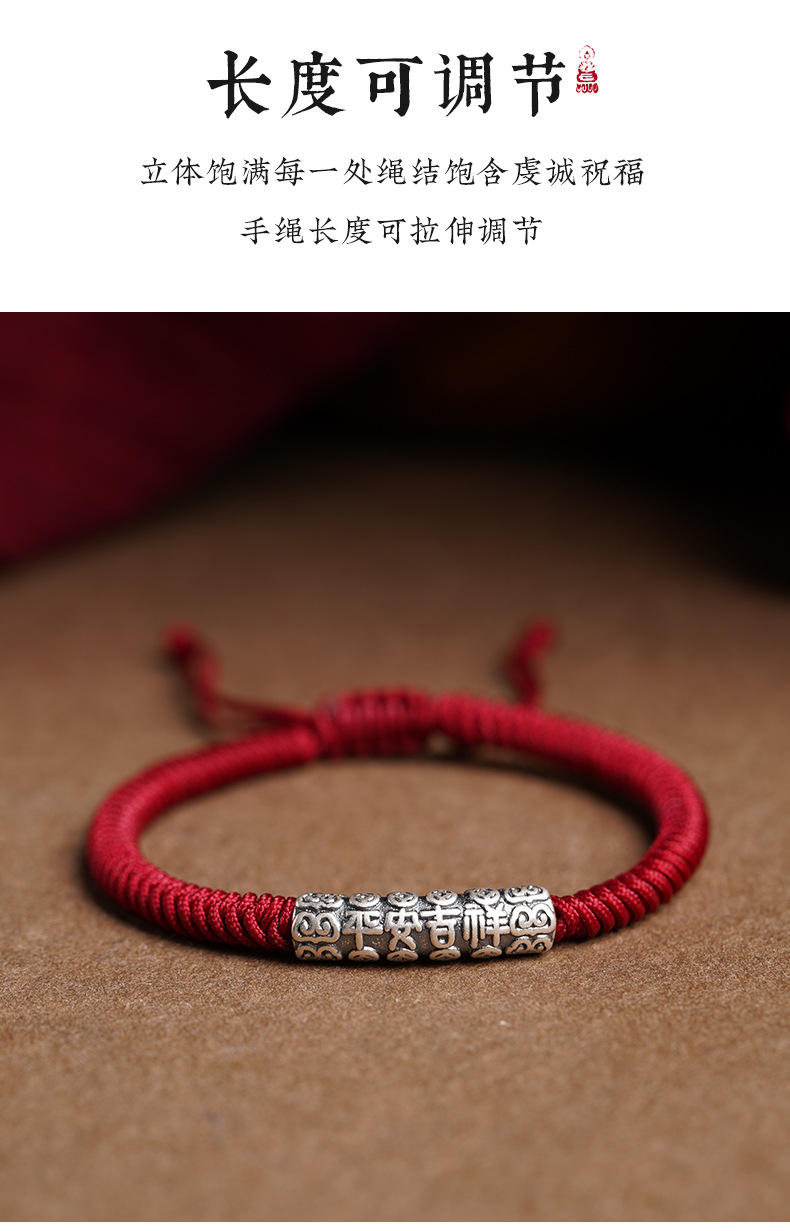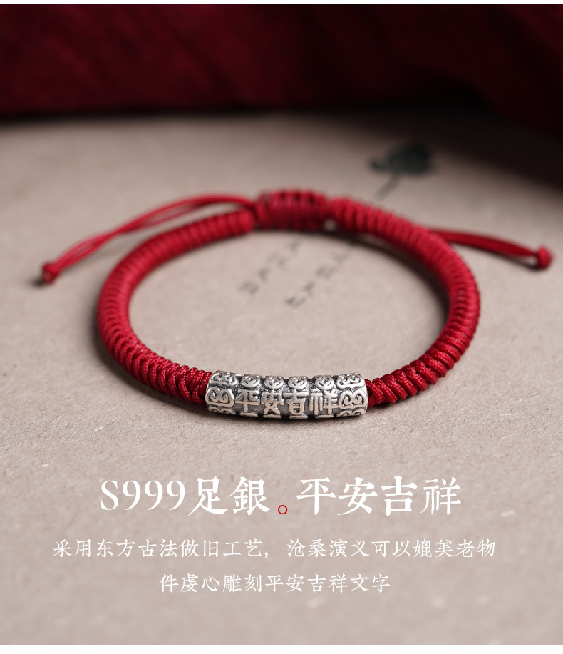 Ping An Auspicious Bracelet Red Rope Men's Benmingnian Xizang-style Hand Rope Diamond Knot Hand-woven Red Women's Thai Silver