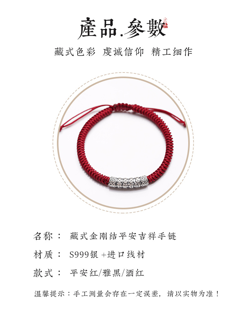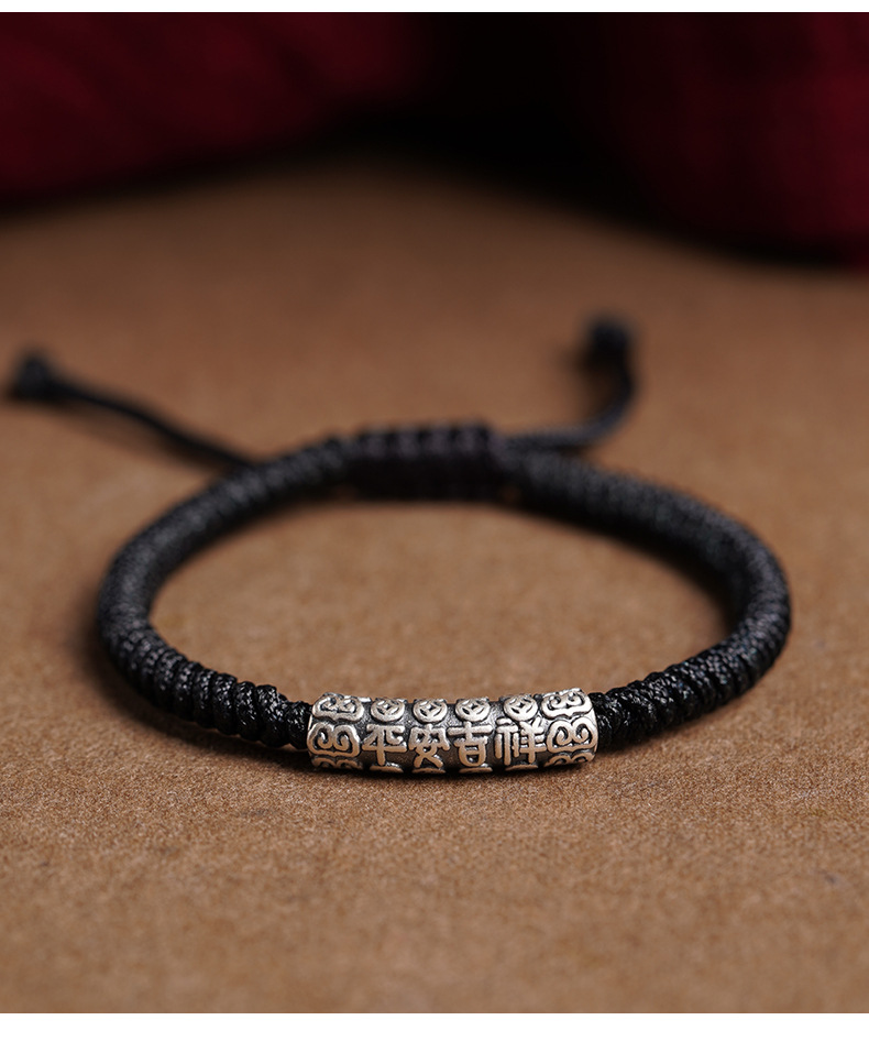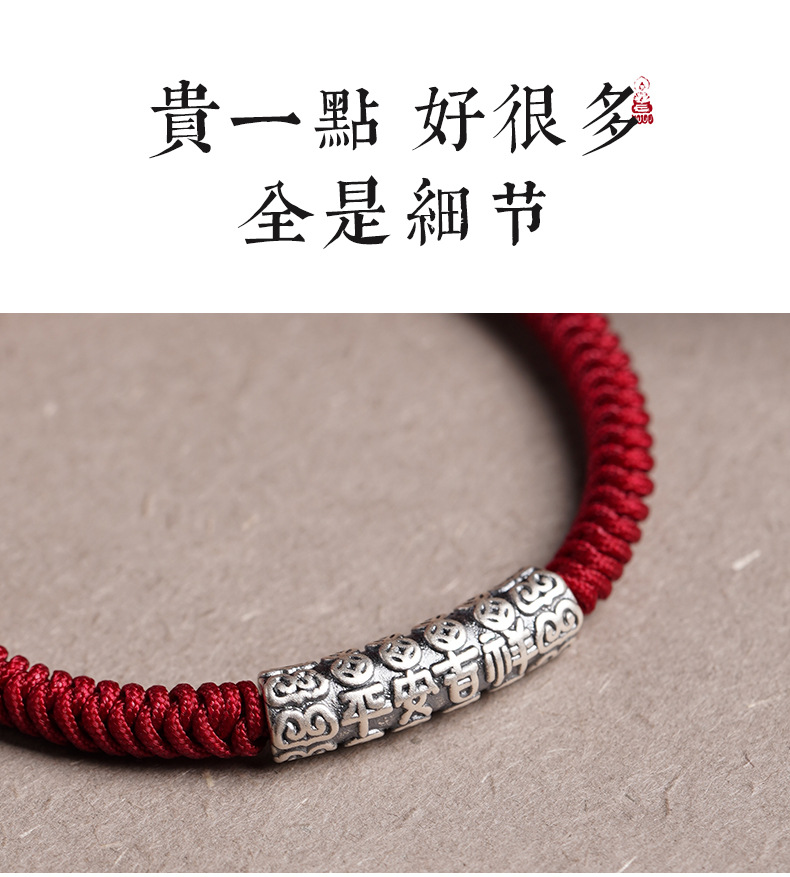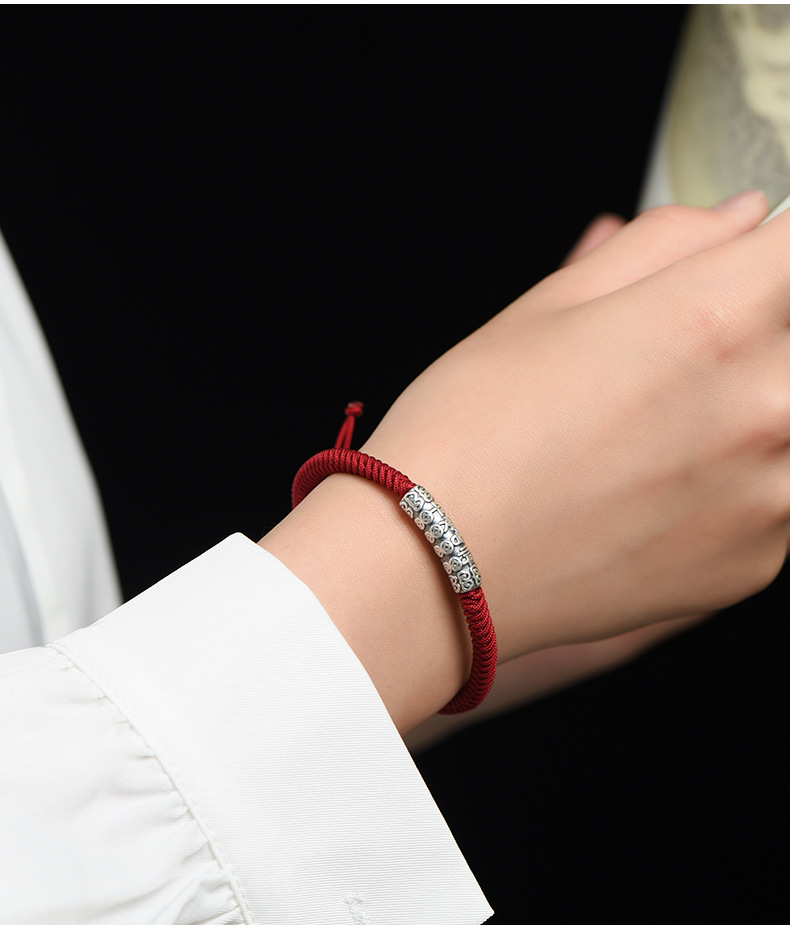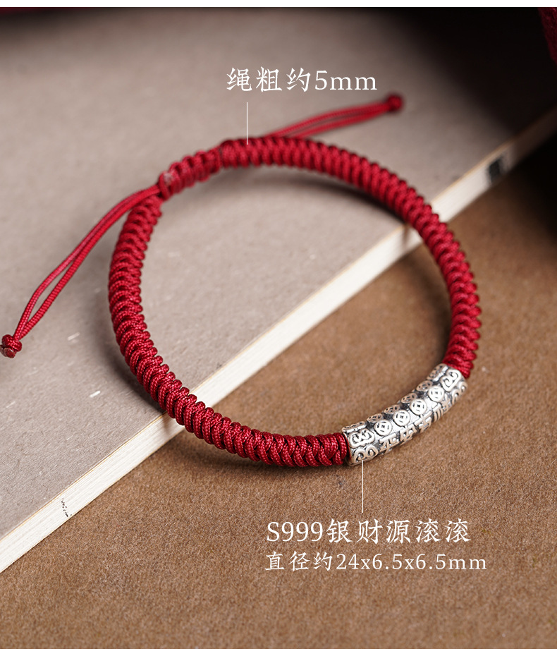 Ping An Auspicious Bracelet Red Rope Men's Benmingnian Xizang-style Hand Rope Diamond Knot Hand-woven Red Women's Thai Silver