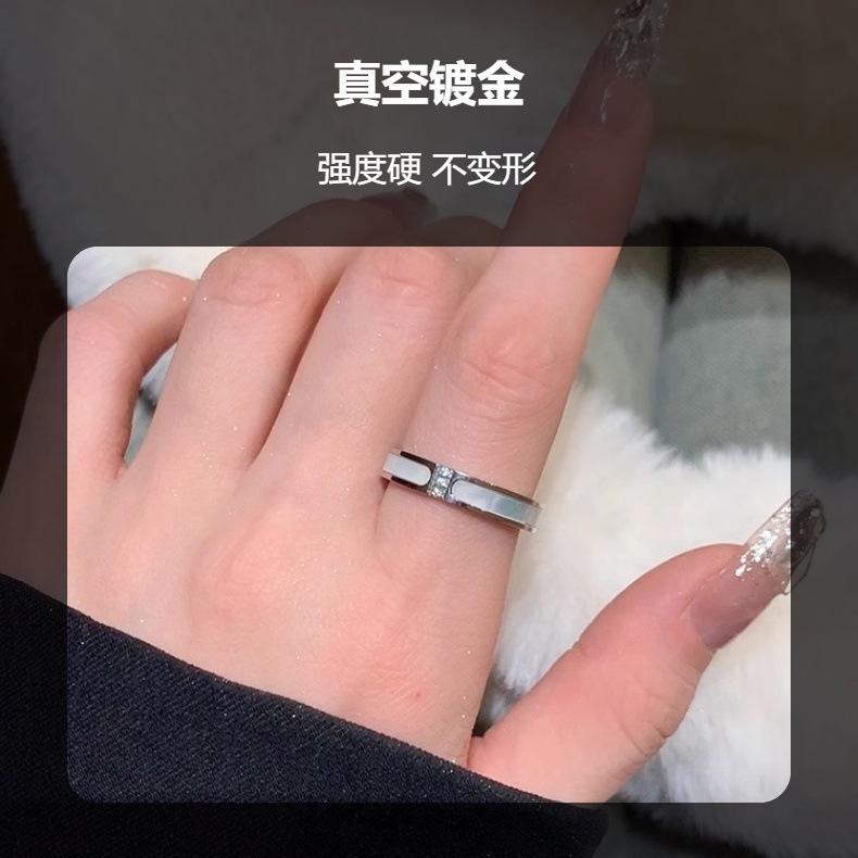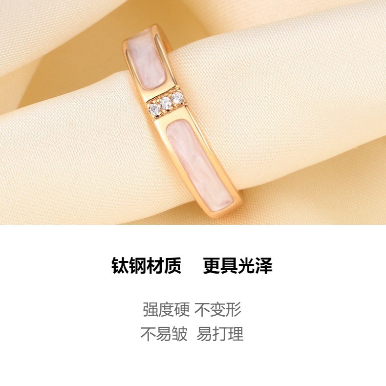 Three-diamond inlaid shell ring new simple fashion 18K gold plated non-fading titanium steel food ring women's jewelry ins