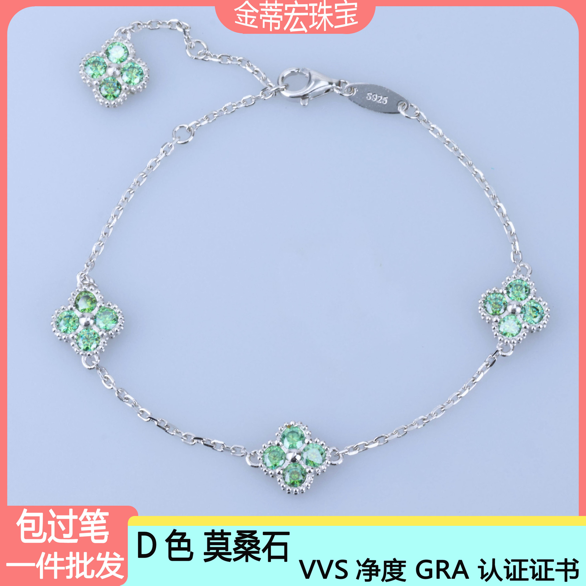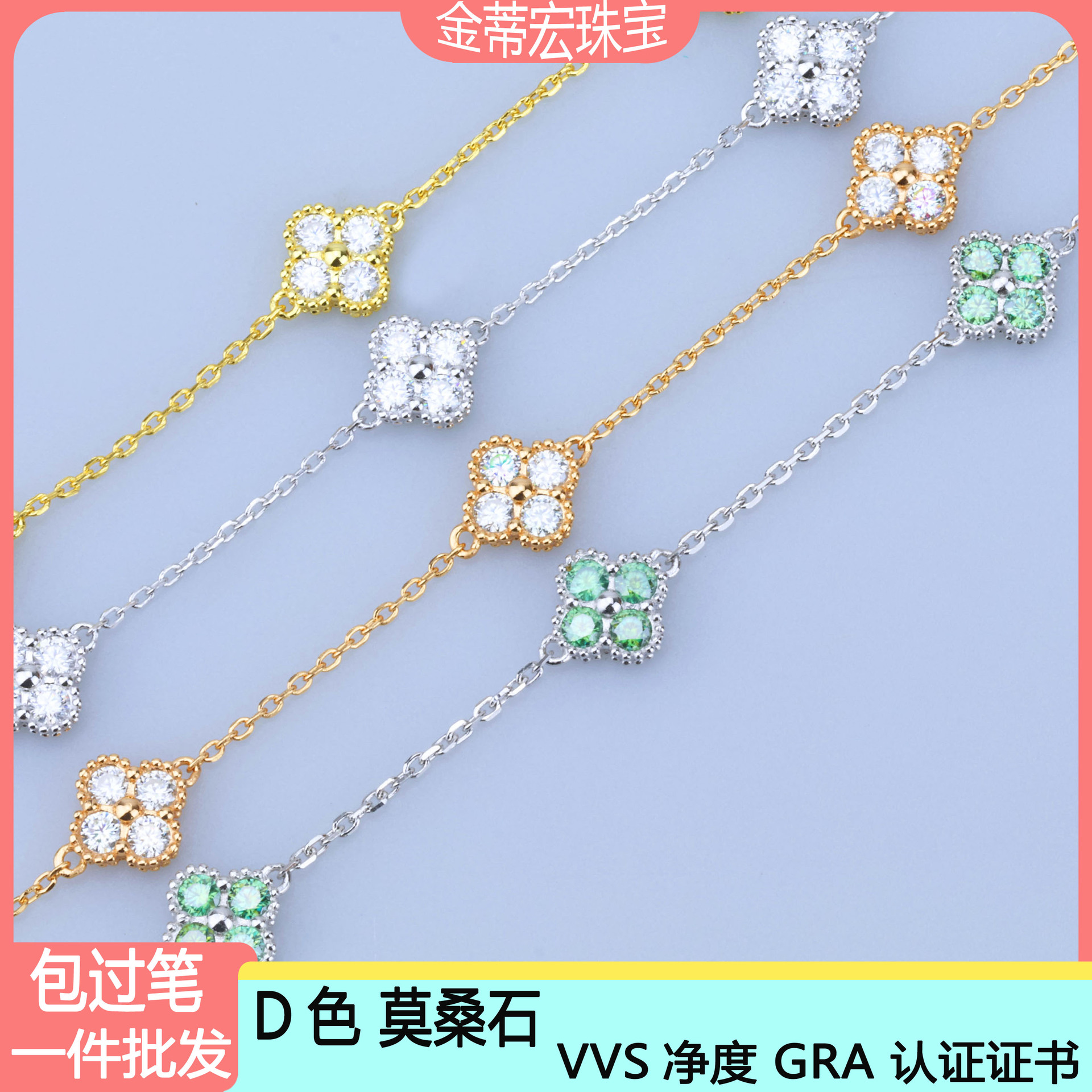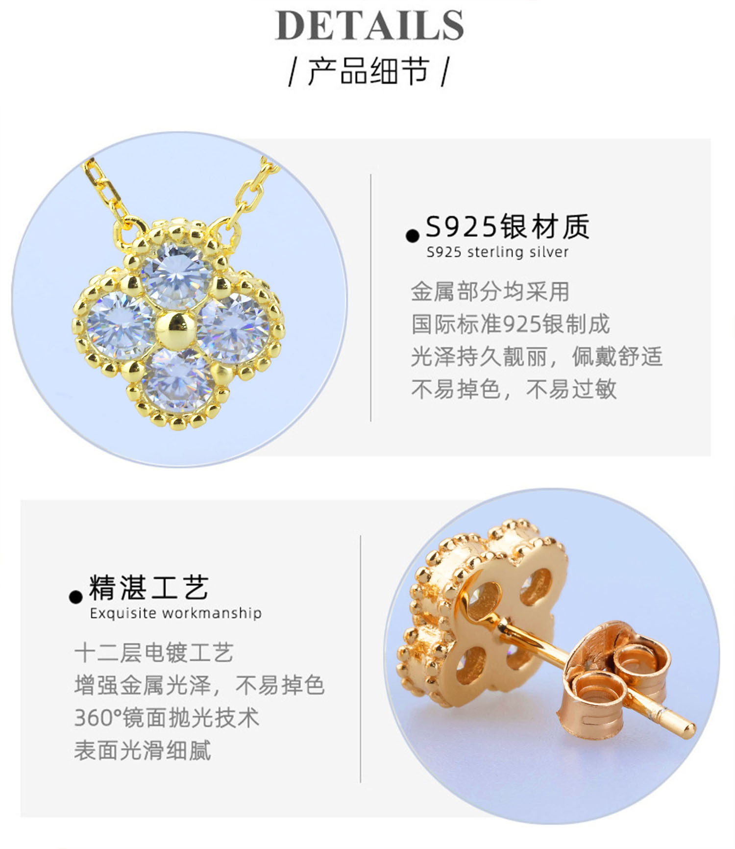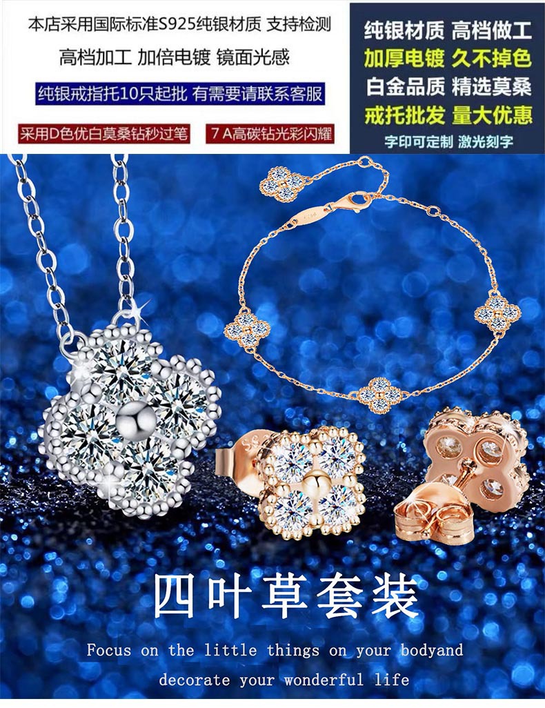 S925 sterling silver four-leaf clover moissanite jewelry suit necklace bracelet earrings cross-border supply chattering live wholesale