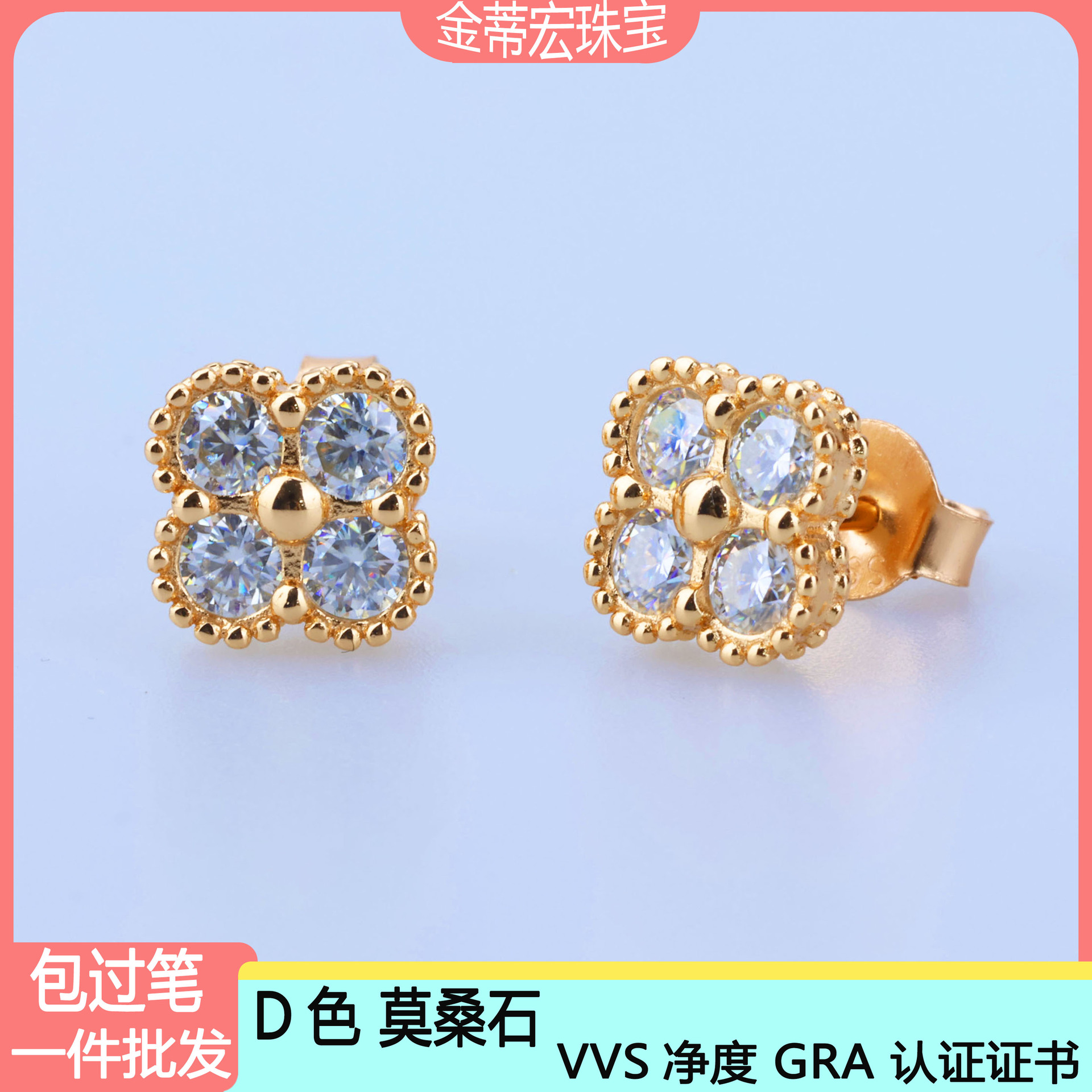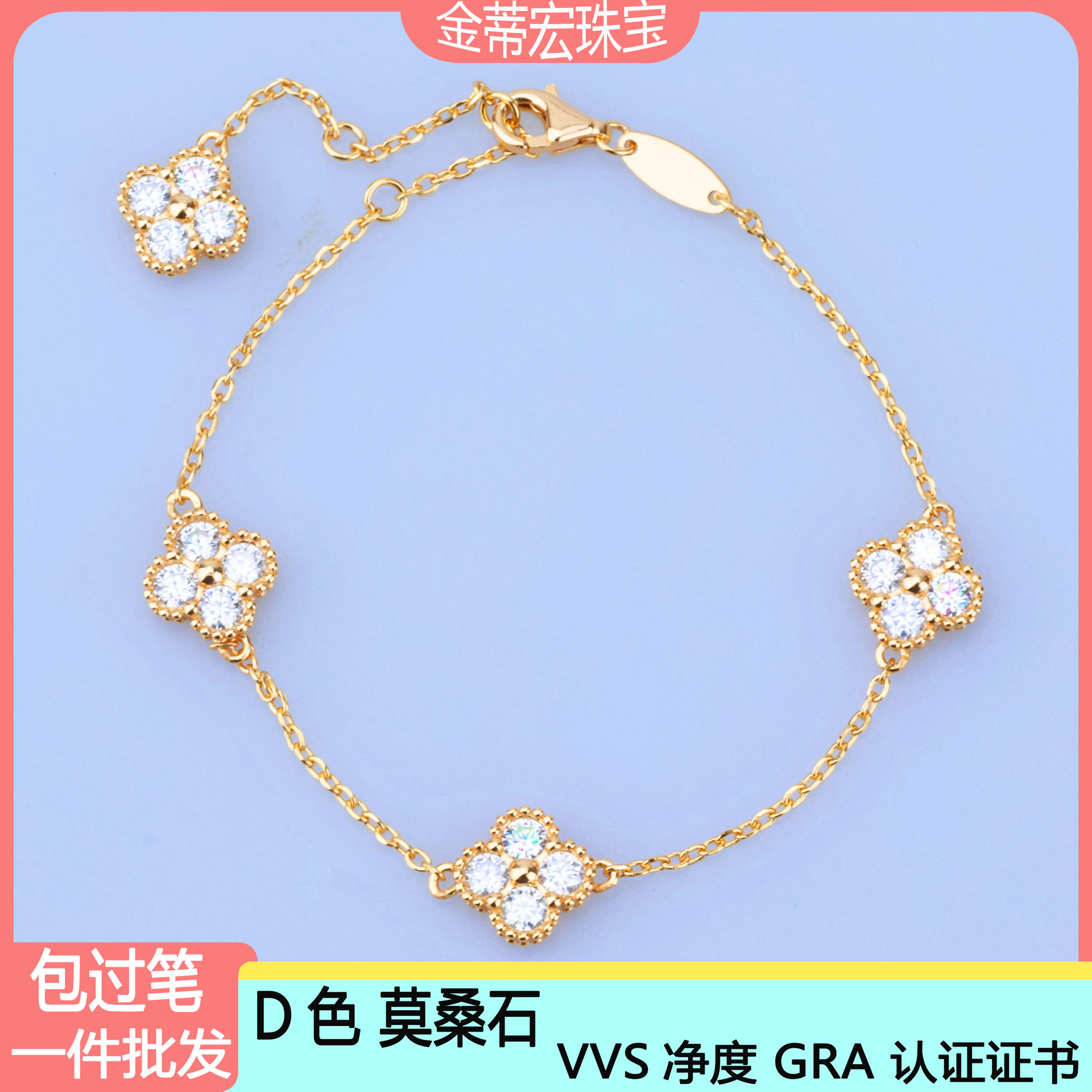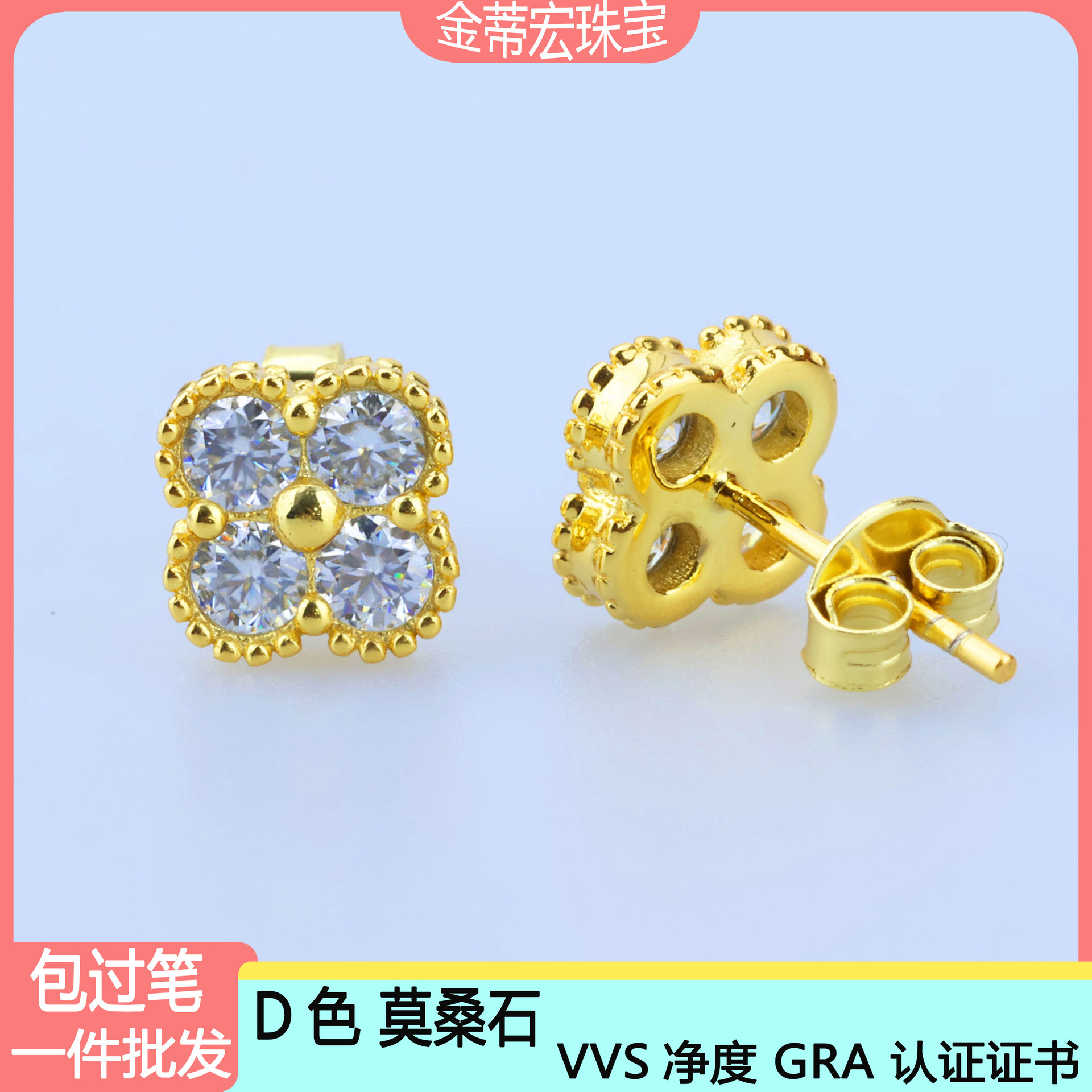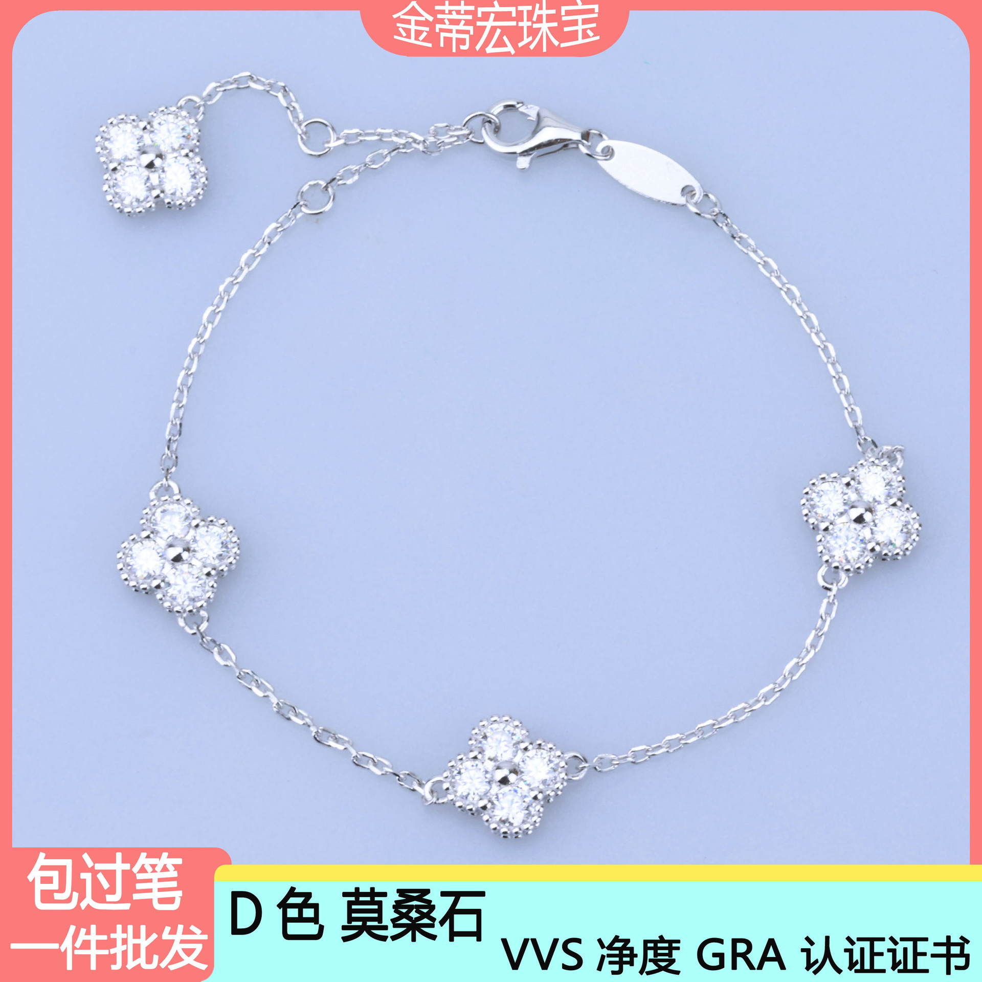 S925 sterling silver four-leaf clover moissanite jewelry suit necklace bracelet earrings cross-border supply chattering live wholesale
