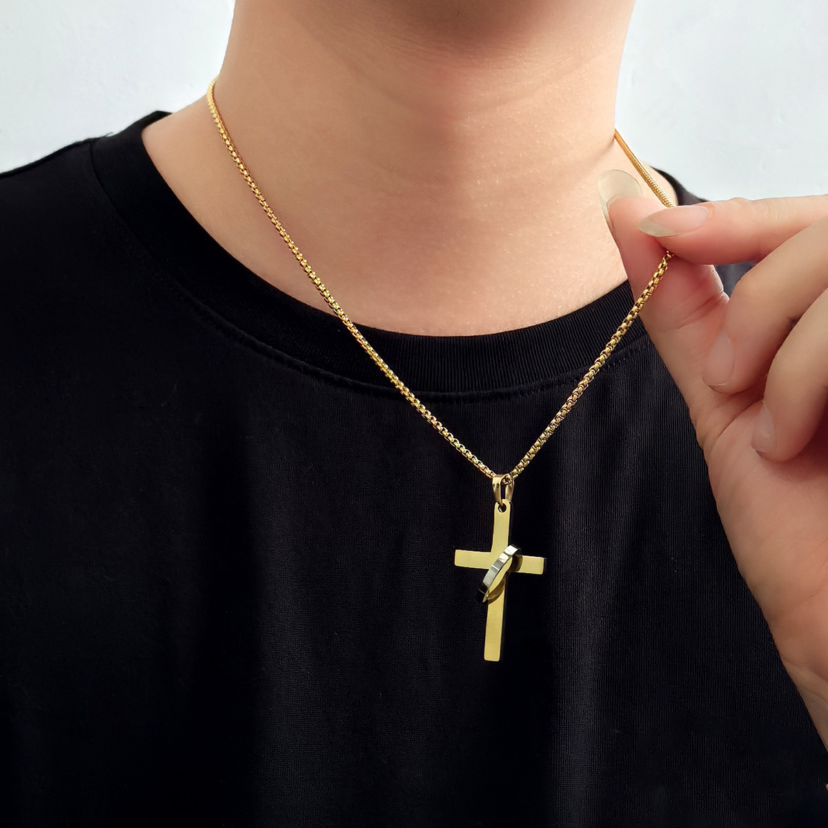 Color: Light Cross-Steel/Square Pearl Chain 70cm