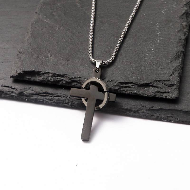 Color: Light Plate Cross with Ring-Steel/Square Pearl Chain 70cm