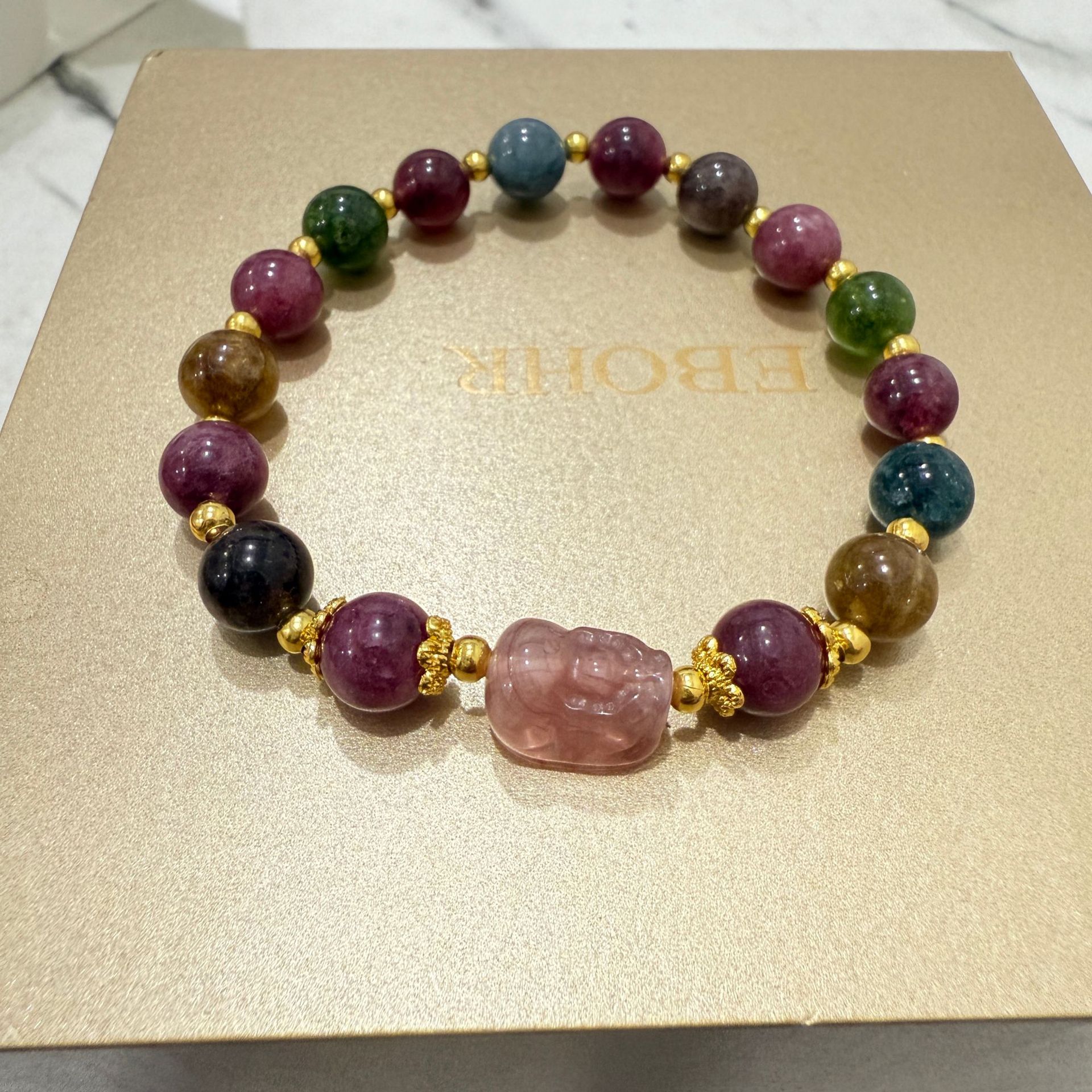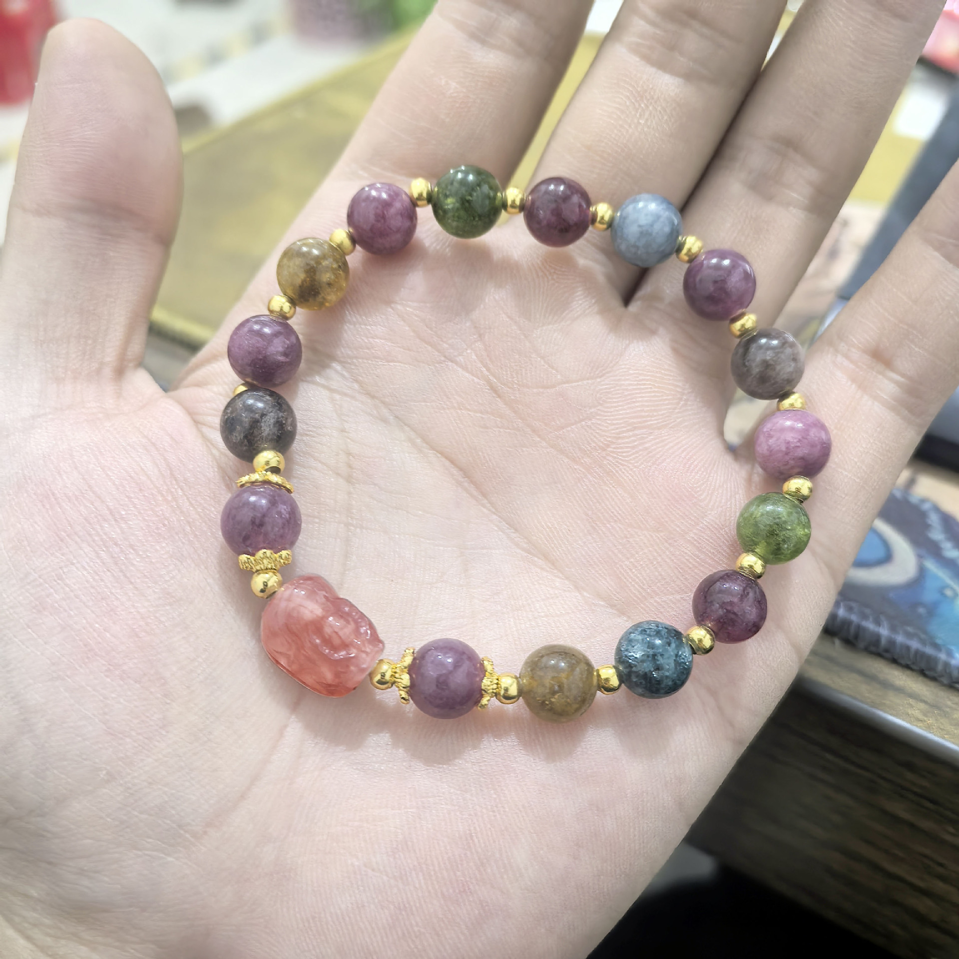 Color: Colored tourmaline strawberry color pixiu bracelet