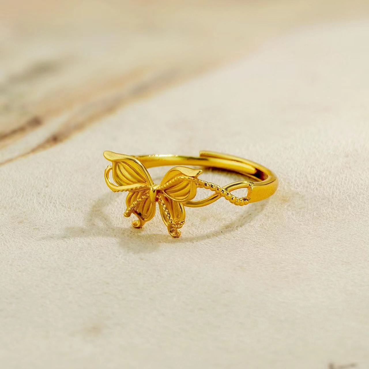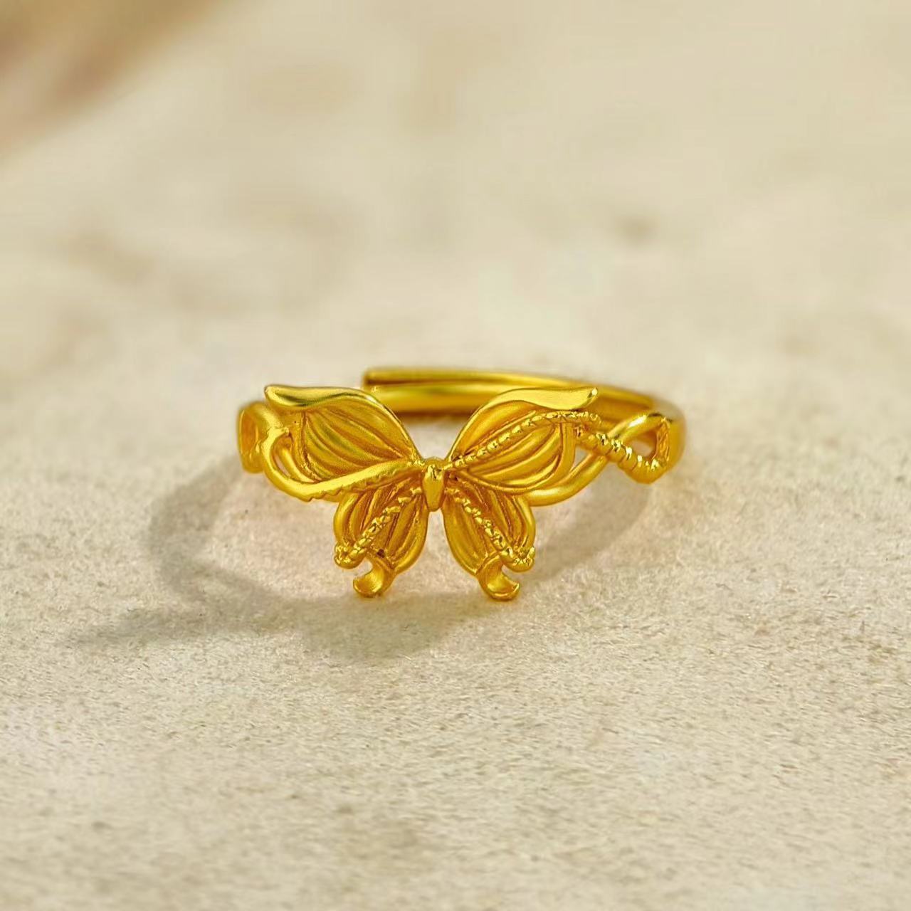 Gold Butterfly Ring for Women, Light Luxury, Fashionable, Versatile, Same Style as Gold Stores, Chinese Style, Adjustable Open Ring, Wholesale