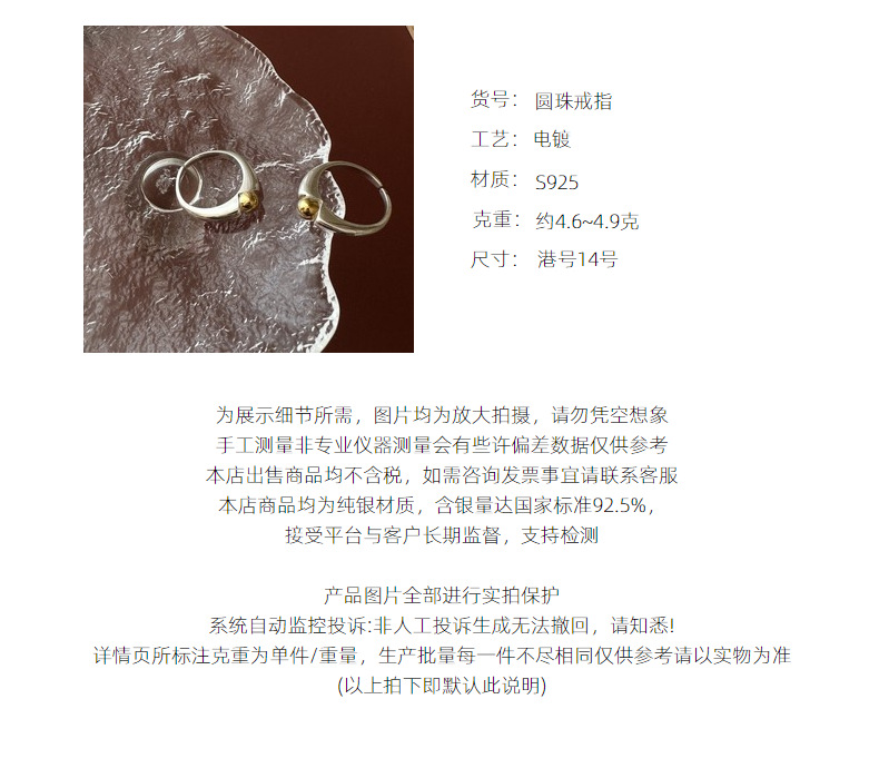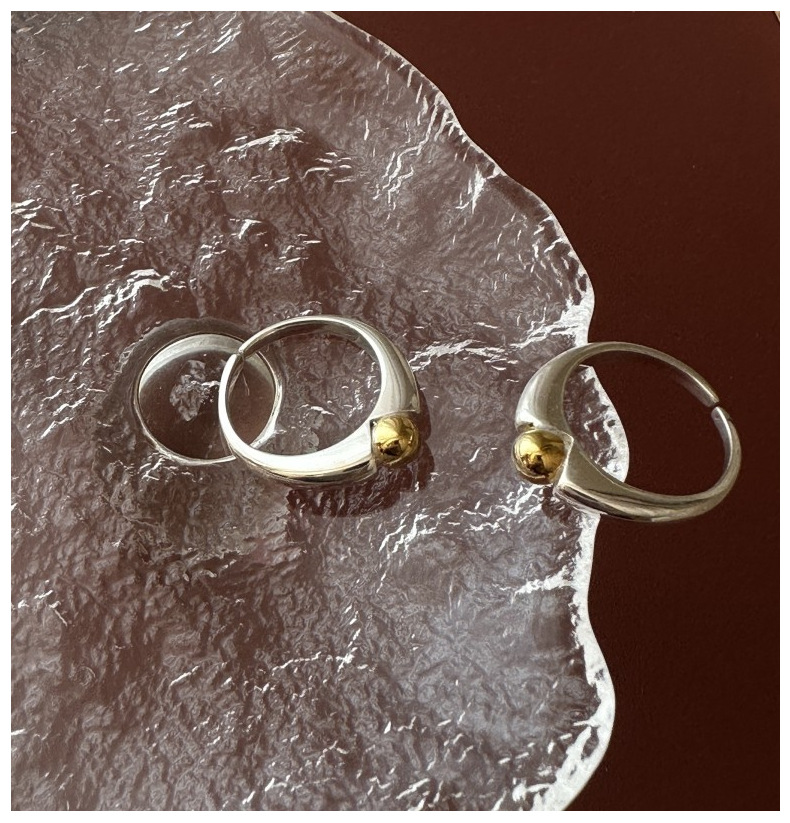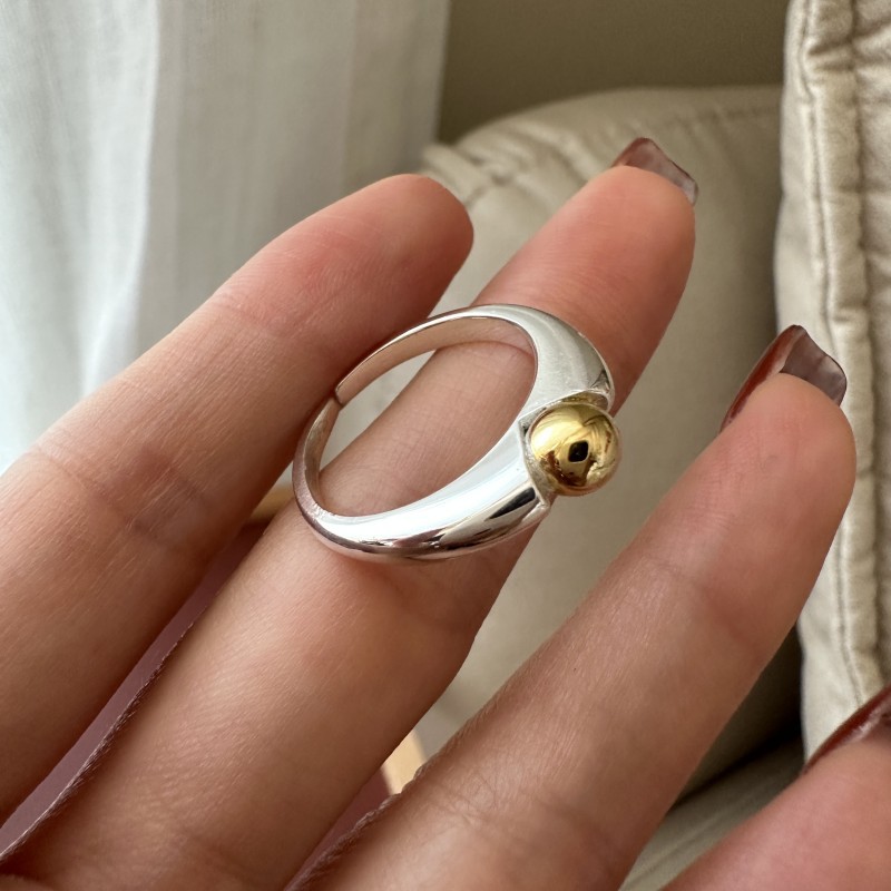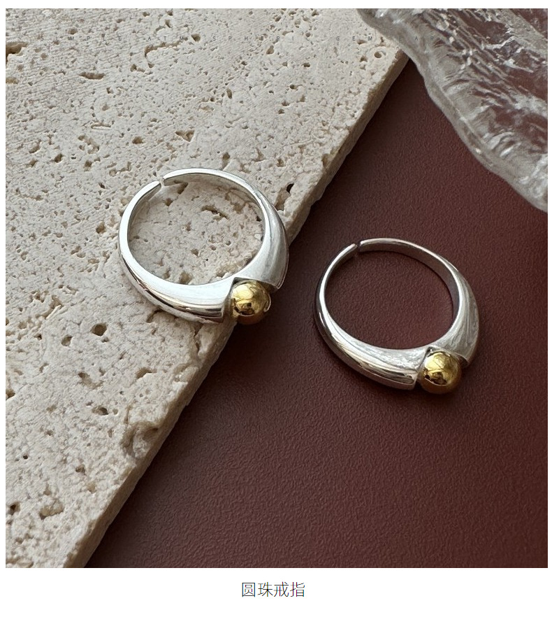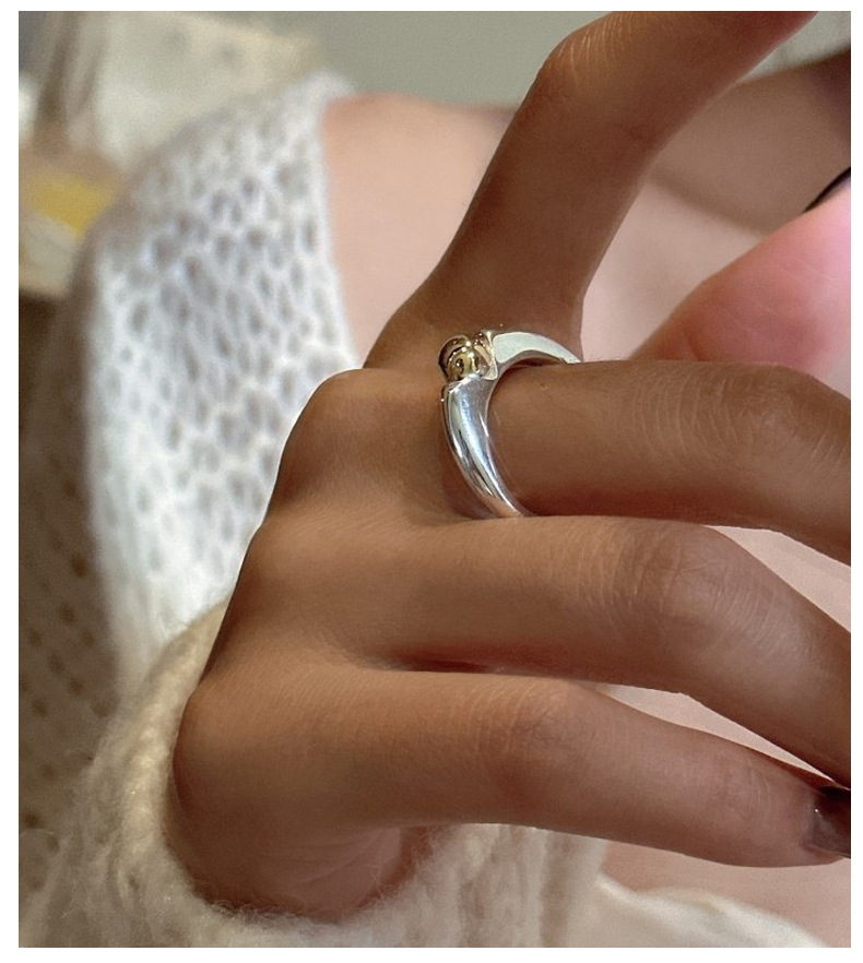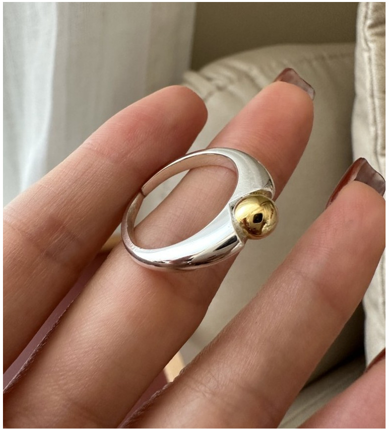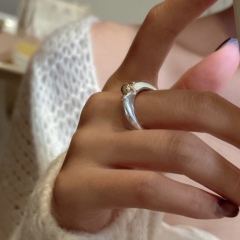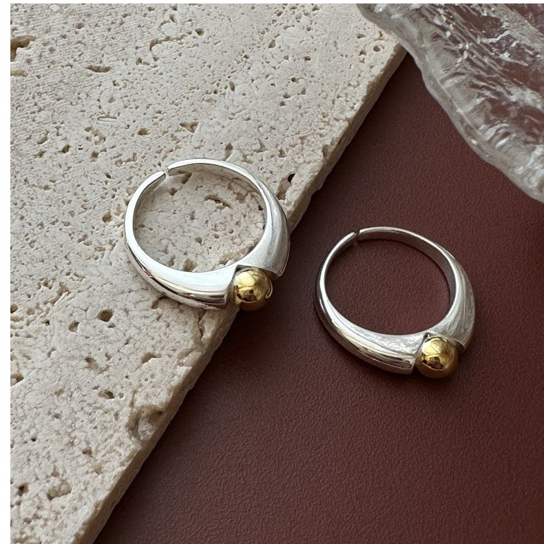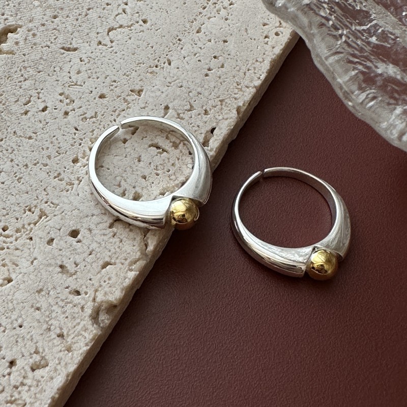 S925 Sterling Silver Korean Gold and Silver Contrast Bead Ring Korean Style Simple Basic Ring Silver Jewelry Wholesale