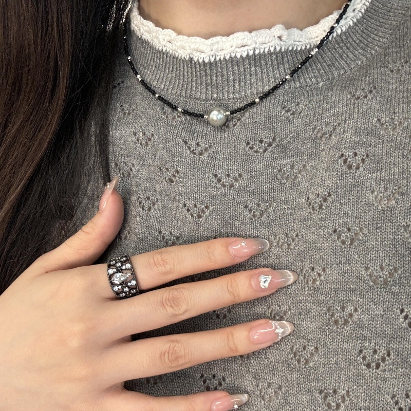 Light Luxury High-end Sense Black Gold Hollow Sword Diamond Ring Shining Elegant Fashion European and American Style Cool Handsome Wide Face Finger Ring