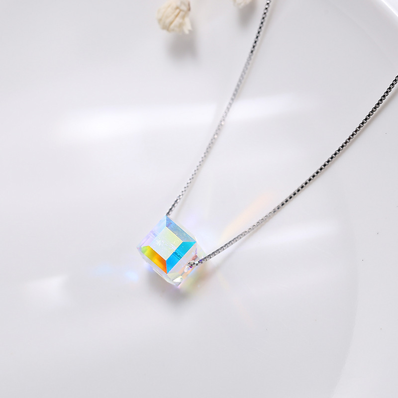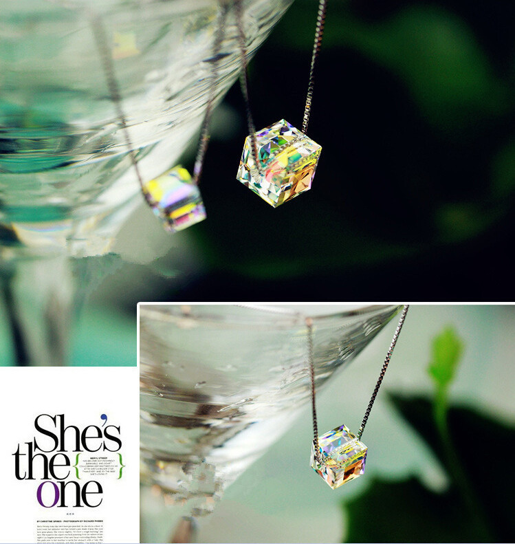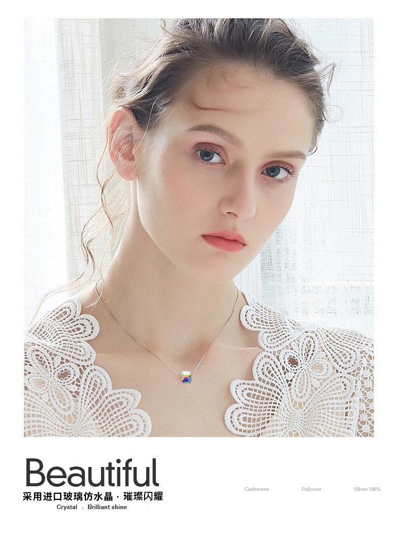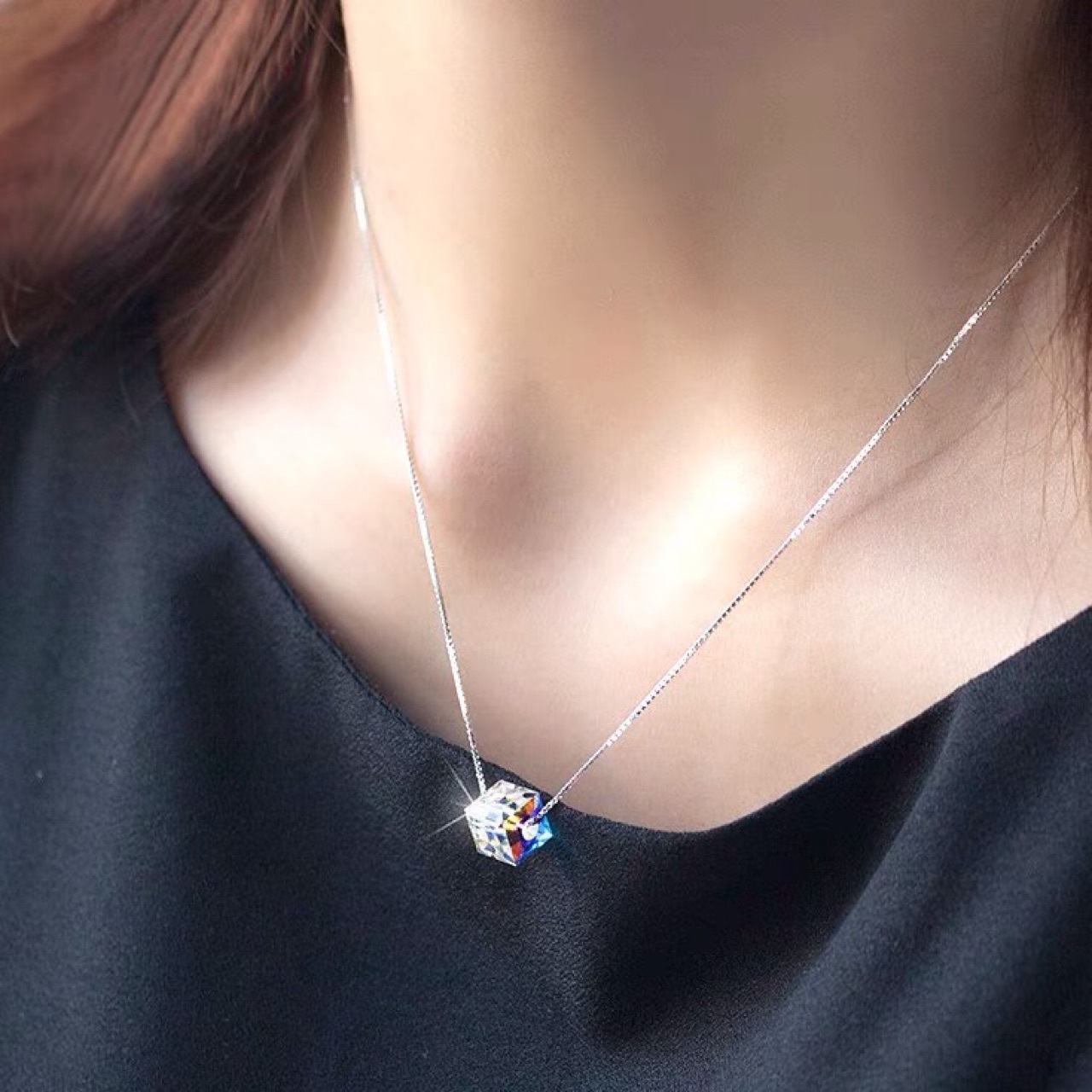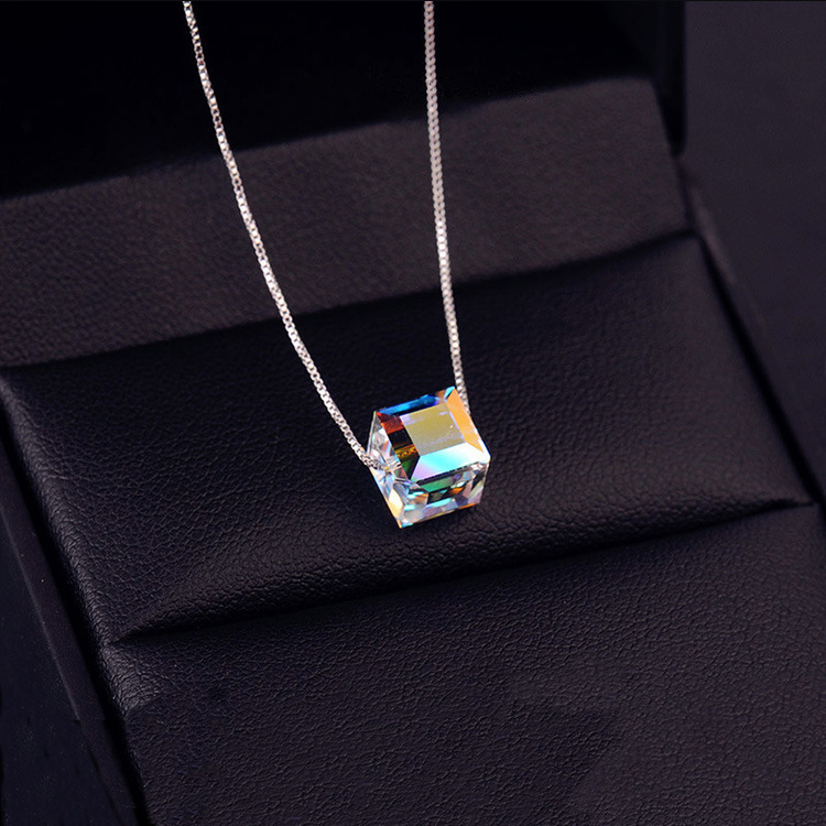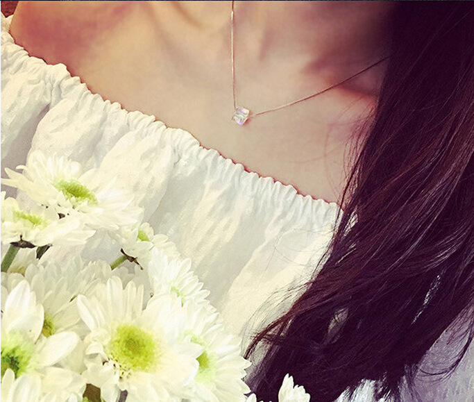 Internet Celebrant New Aurora Sugar Simple Sweet Faux Austrian Crystal Pendant Short Clavicle Thin Necklace Gift for Women