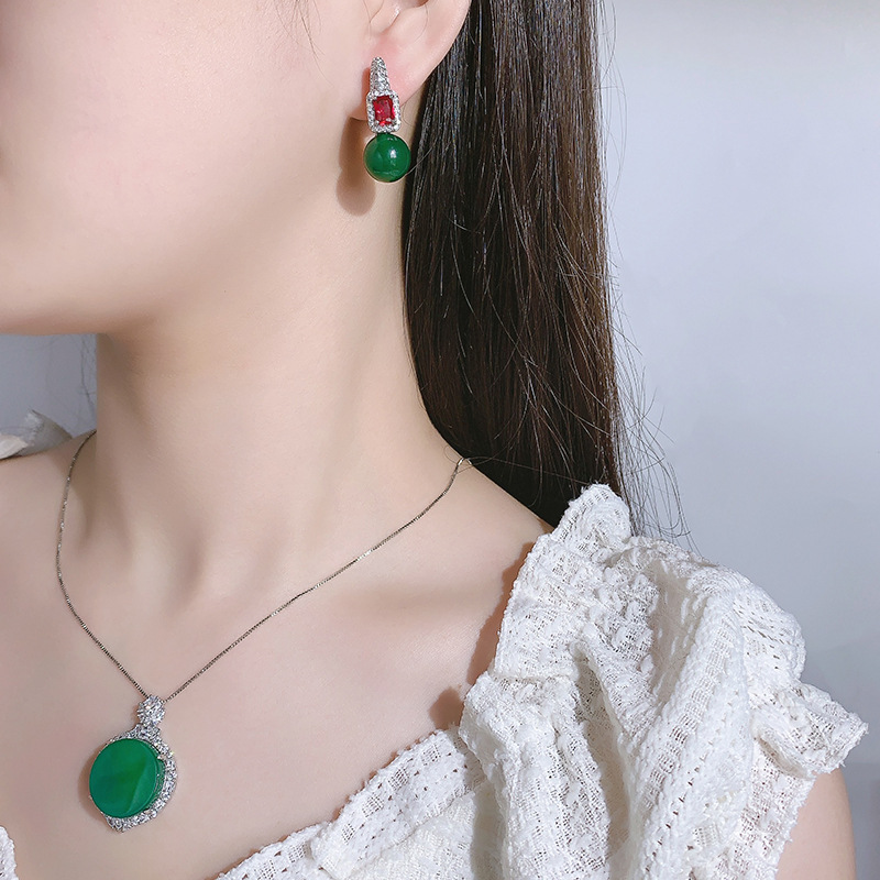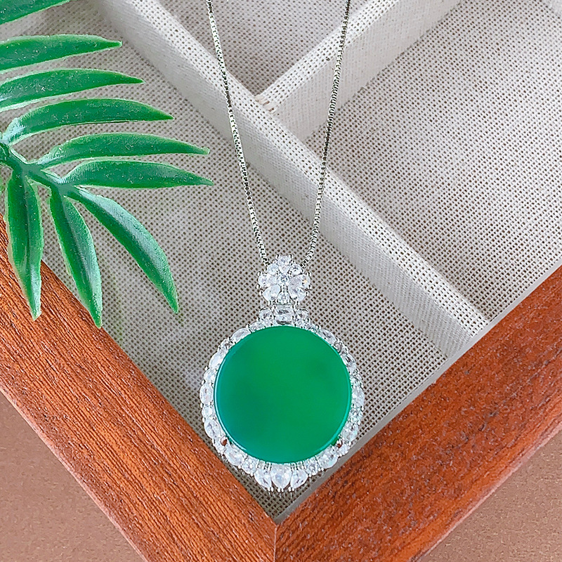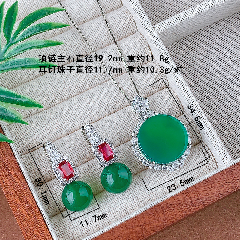 💎 惊艳时光,绿玉髓圆盘项链耳环
