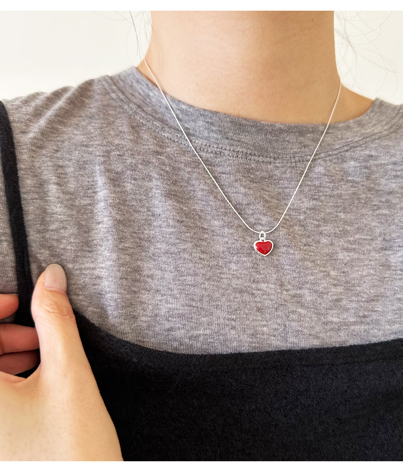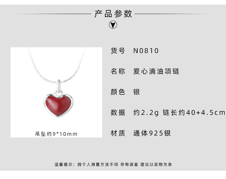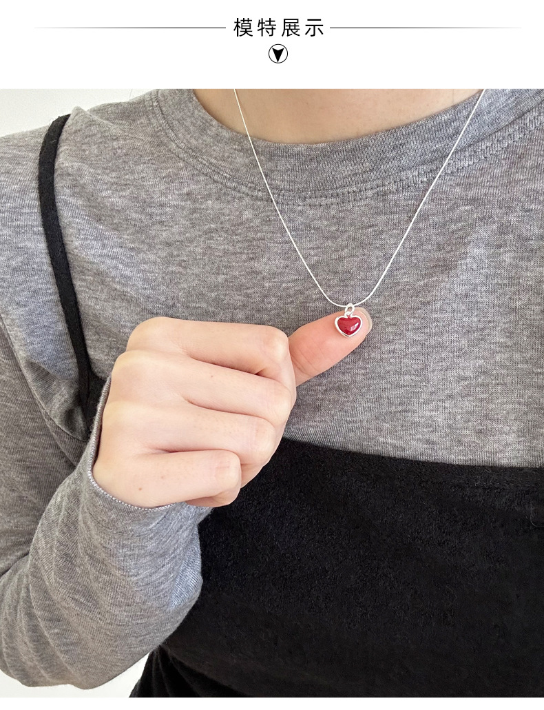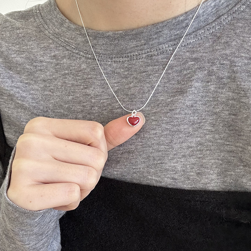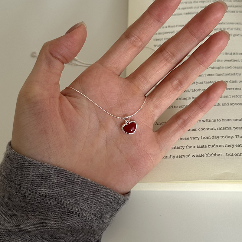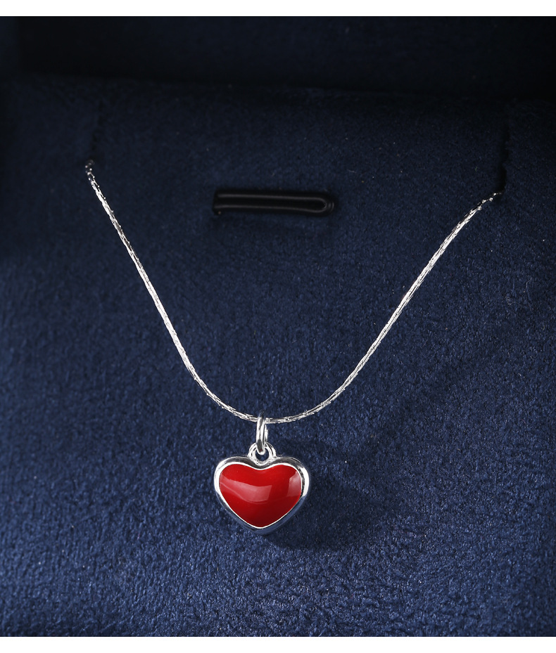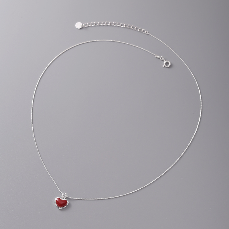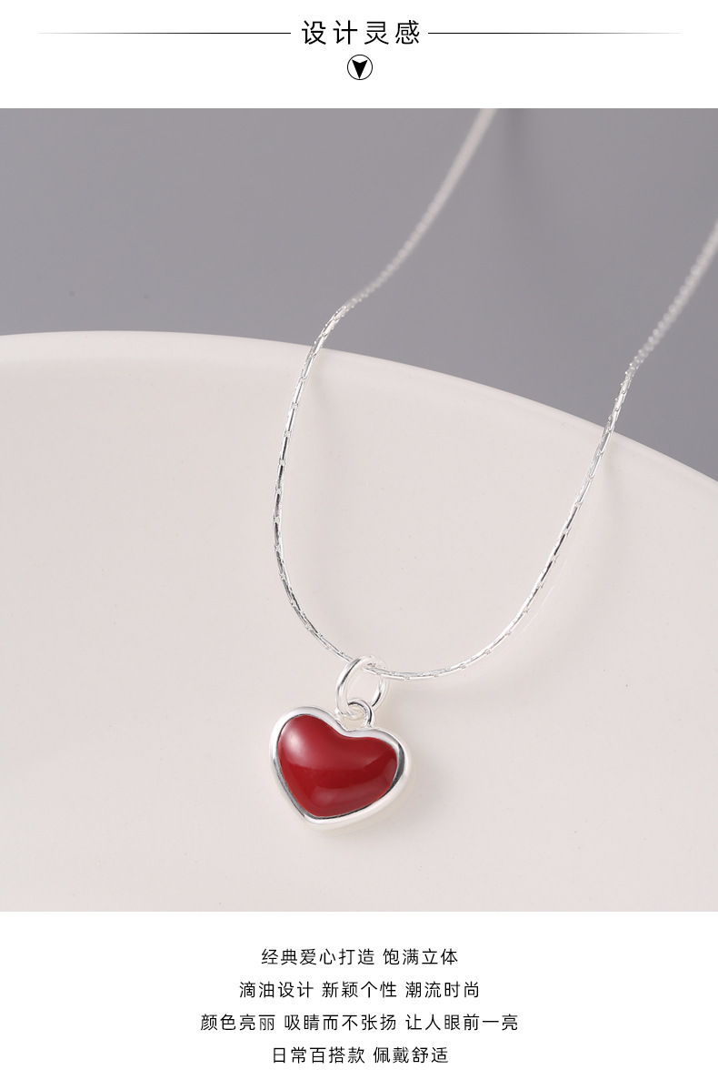925 Sterling Silver Red Oil Dropping Love Necklace Women's Simple Niche Fashion Sweet Elegant Heart-shaped Collarbone Chain N0810