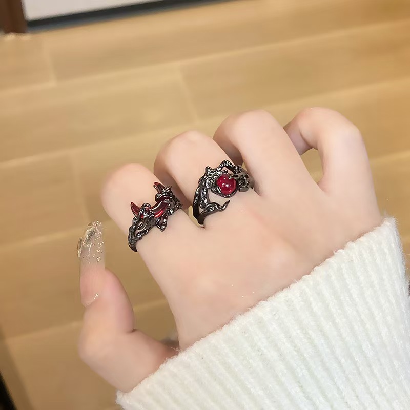 Hot New Dark Style Blood Moon Fashion Vintage Irregular Winding Ring Niche Design Open Ring