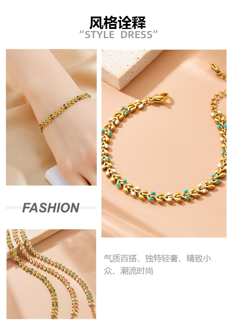 Cross-border fashion simple all-match design sense gold-plated stainless steel drop tree leaf chain jewelry bracelet