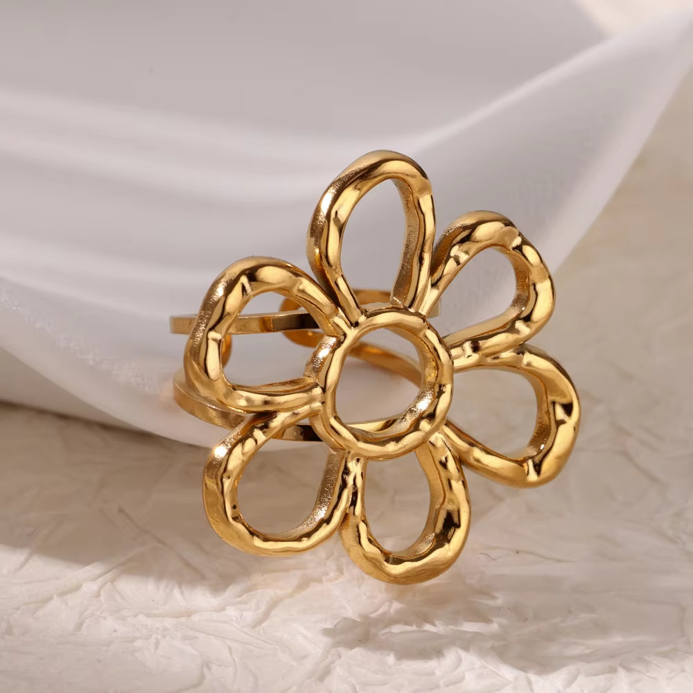 18K gold-plated stainless steel exquisite flower series butterfly ring European and American trend jewelry personalized elegant hand jewelry