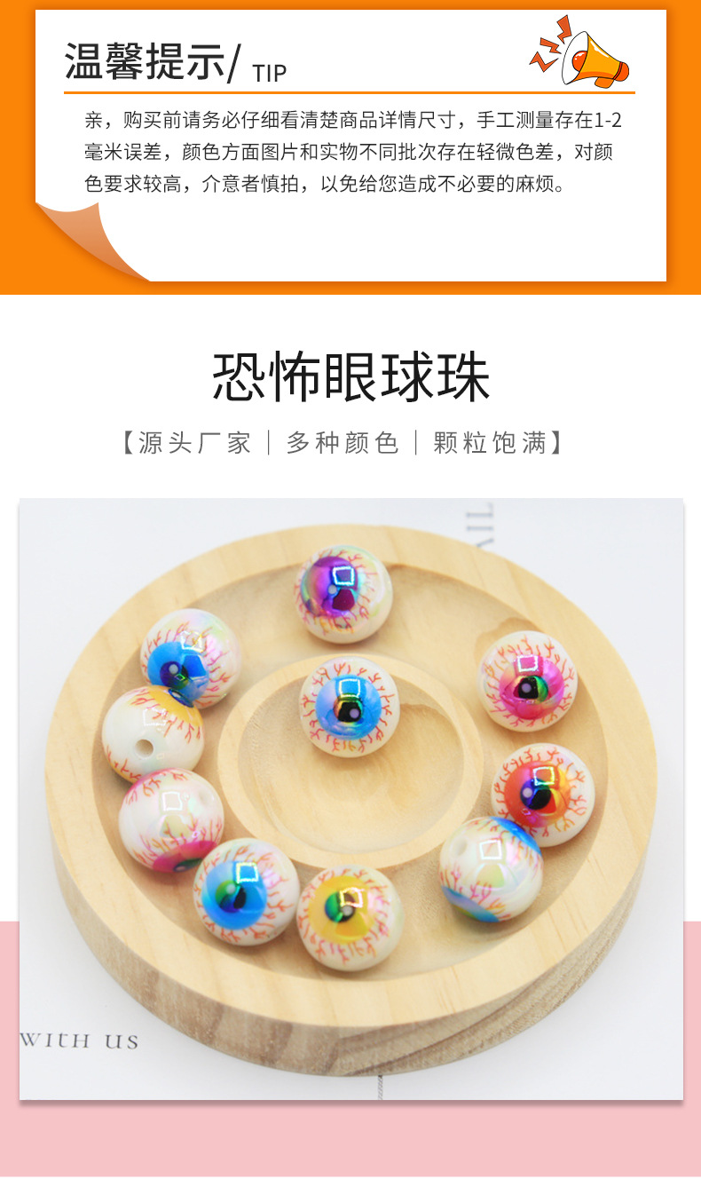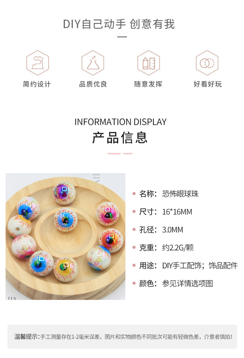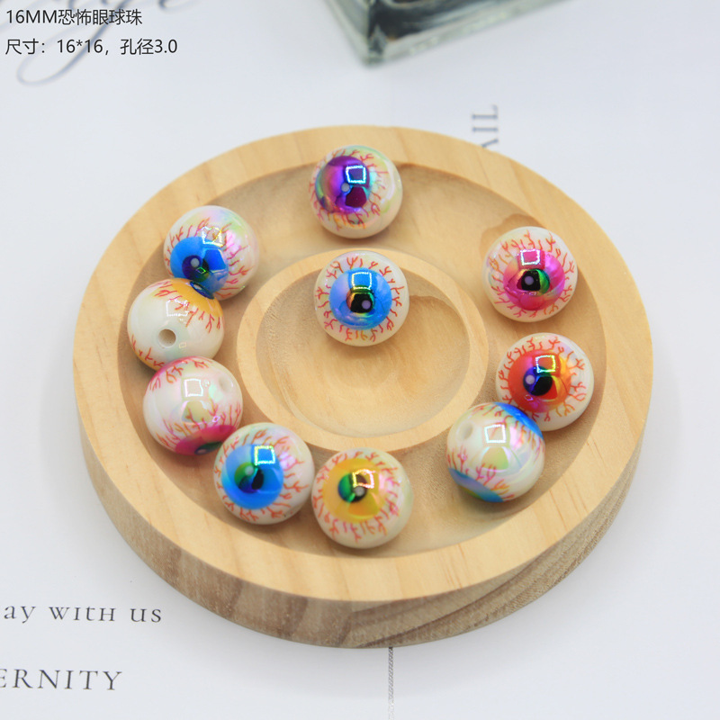 New Cross-Border 16mm Halloween Personalized Uv-Plated Colorful Horror Eyeball Beads DIY Handmade Beads Loose Beads Wholesale