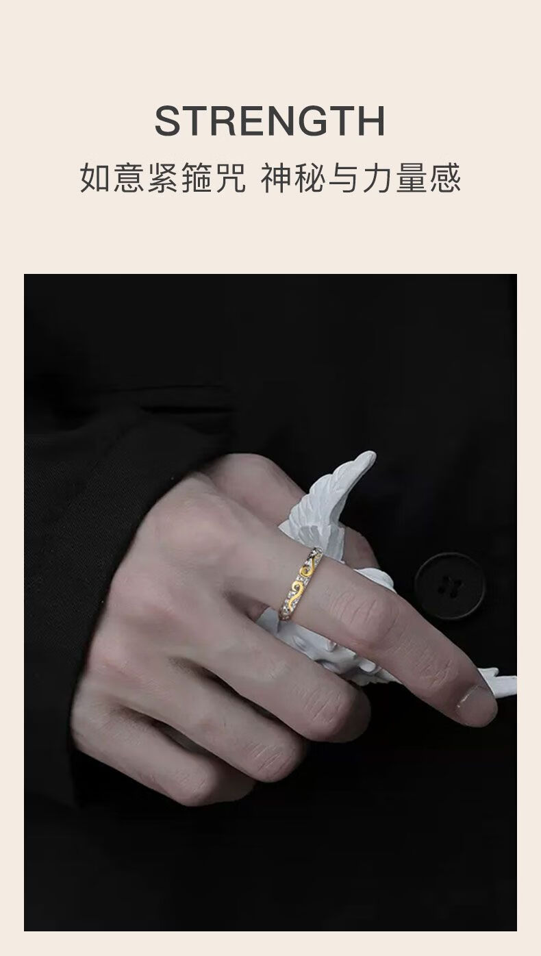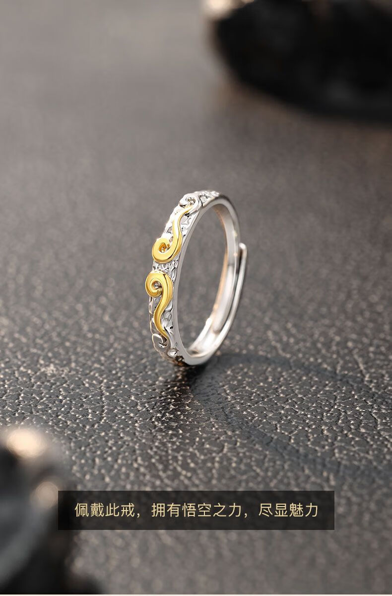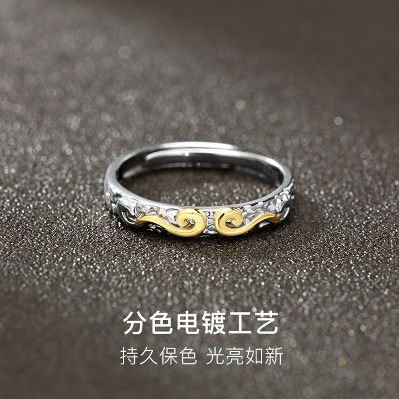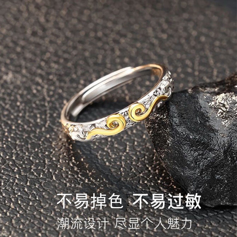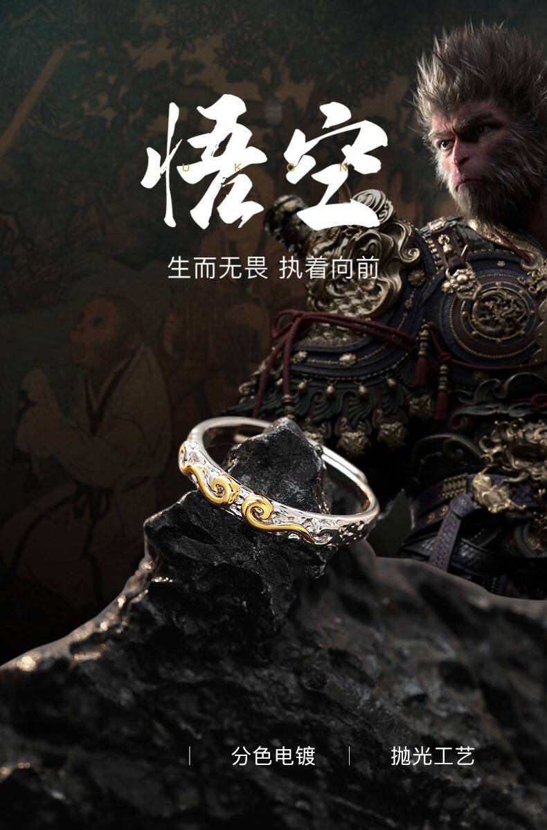 Wukong Ring Men's and Women's Black Mythical Peripheral Curse with Sterling Silver Plating Auspicious Cloud Ring Opening Adjustable Engraving