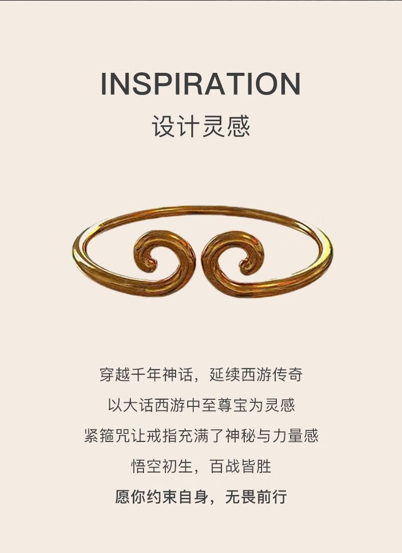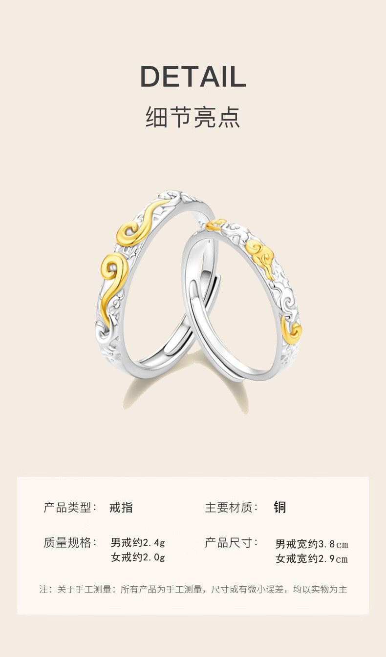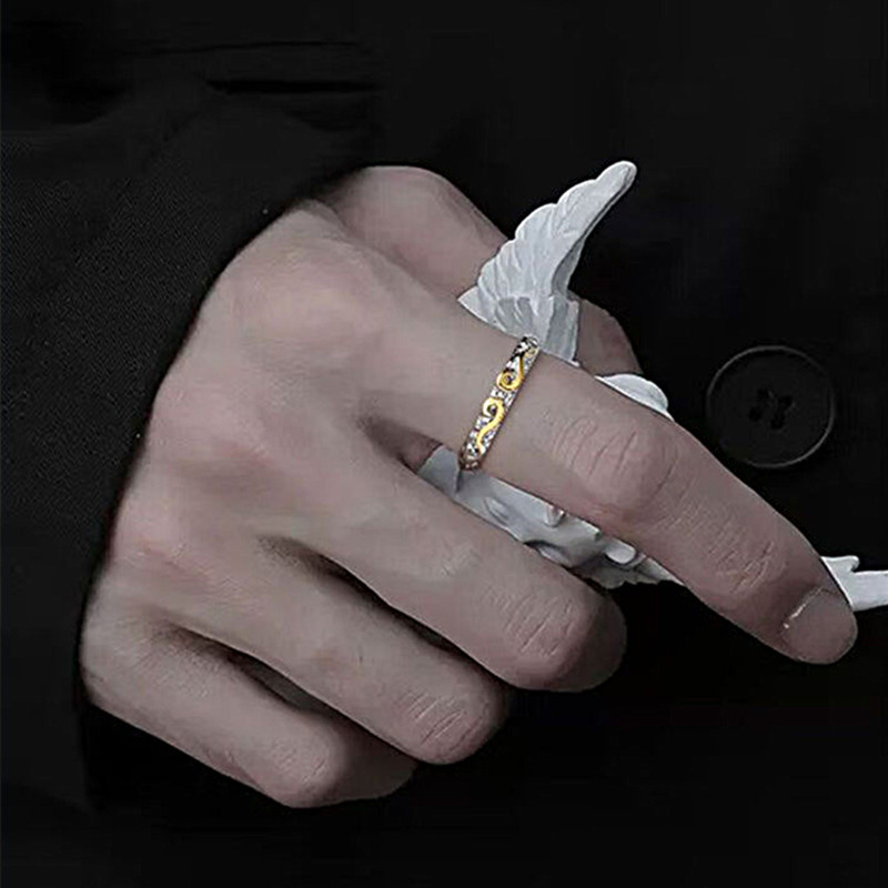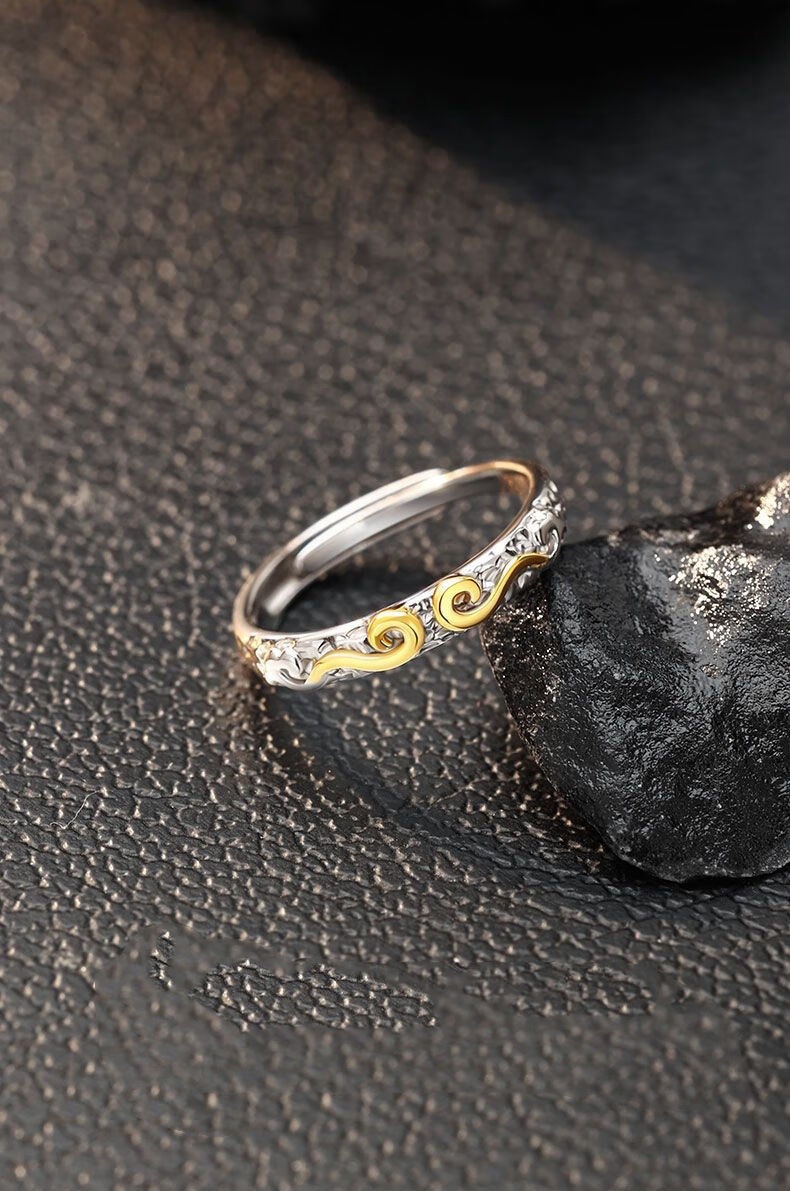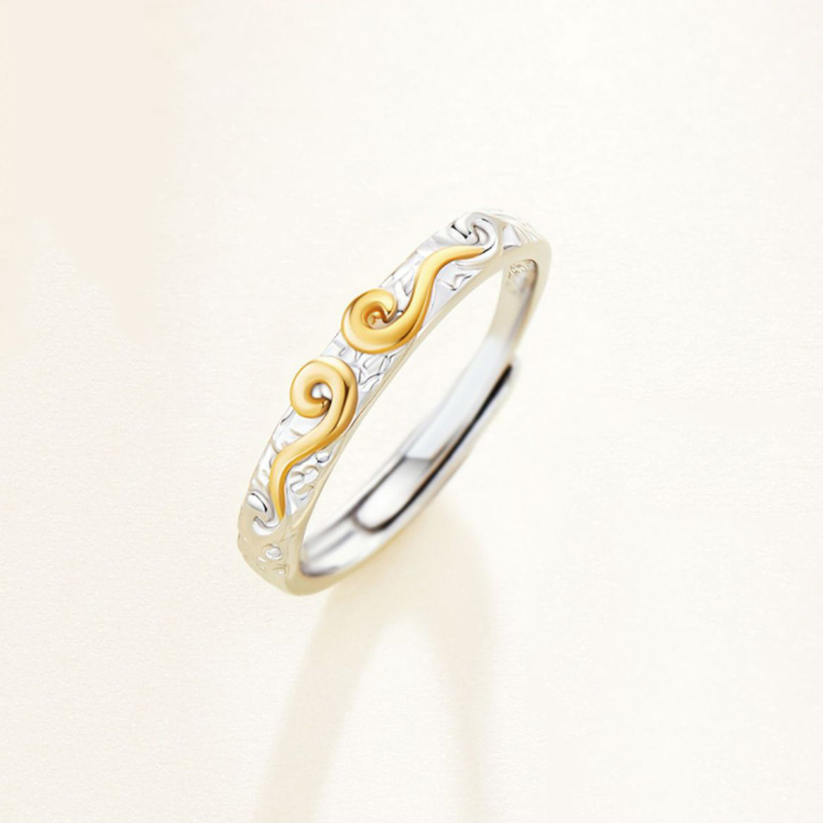 Wukong Ring Men's and Women's Black Mythical Peripheral Curse with Sterling Silver Plating Auspicious Cloud Ring Opening Adjustable Engraving