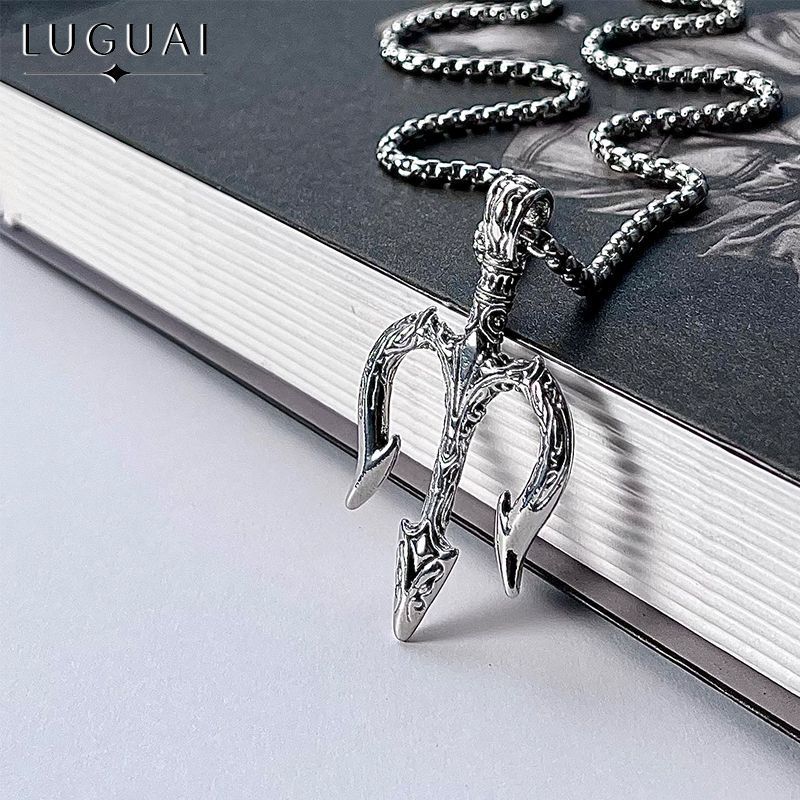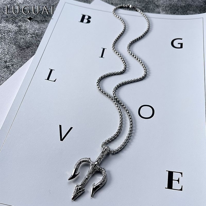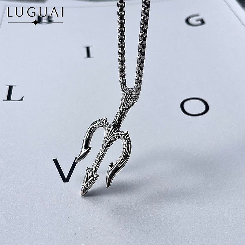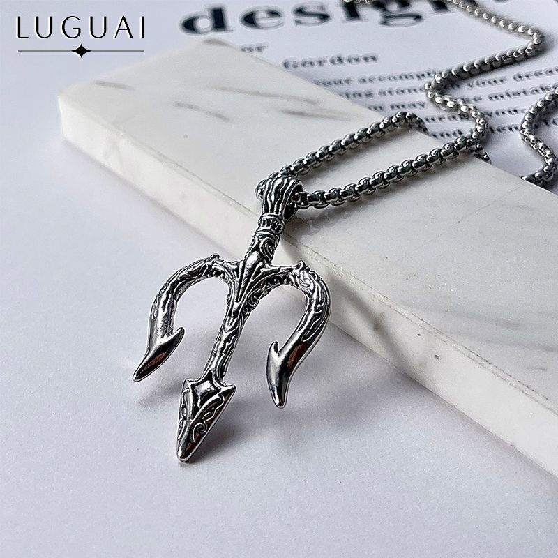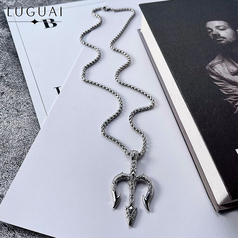 European and American Retro Neptune Trident Pendant Necklace Men's Personalized Hip-Hop Domineering Haishen Sweater Chain Pendant Chain