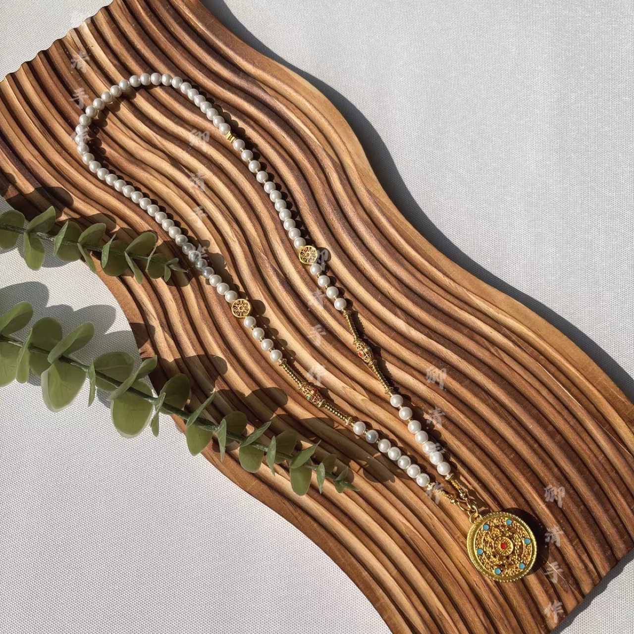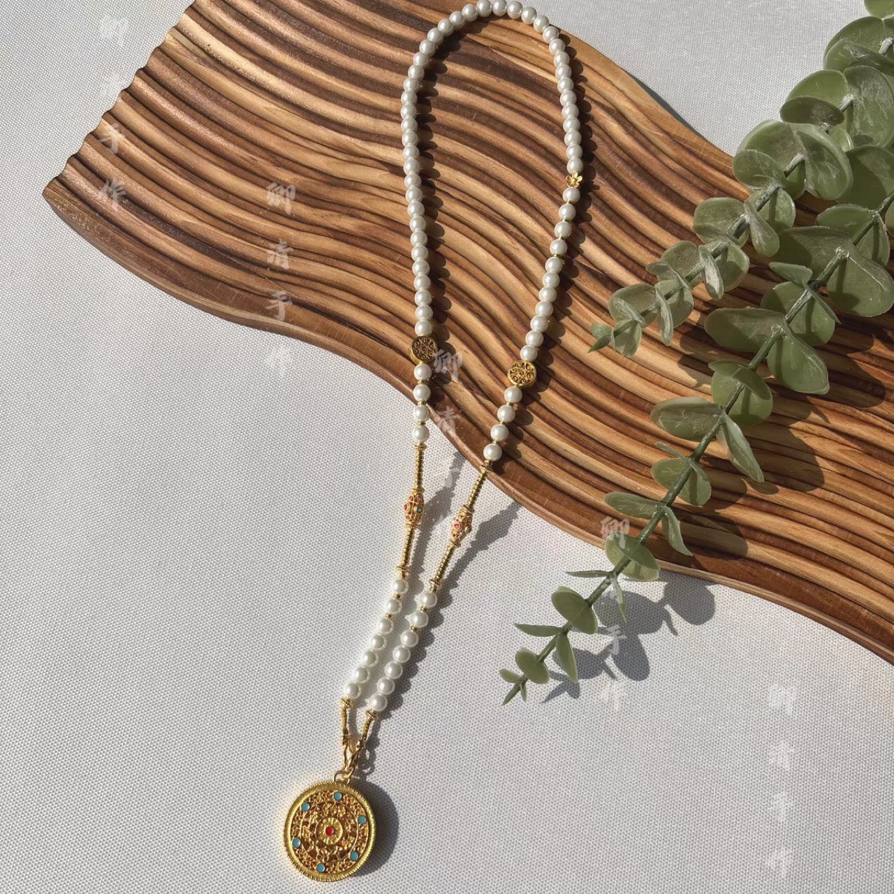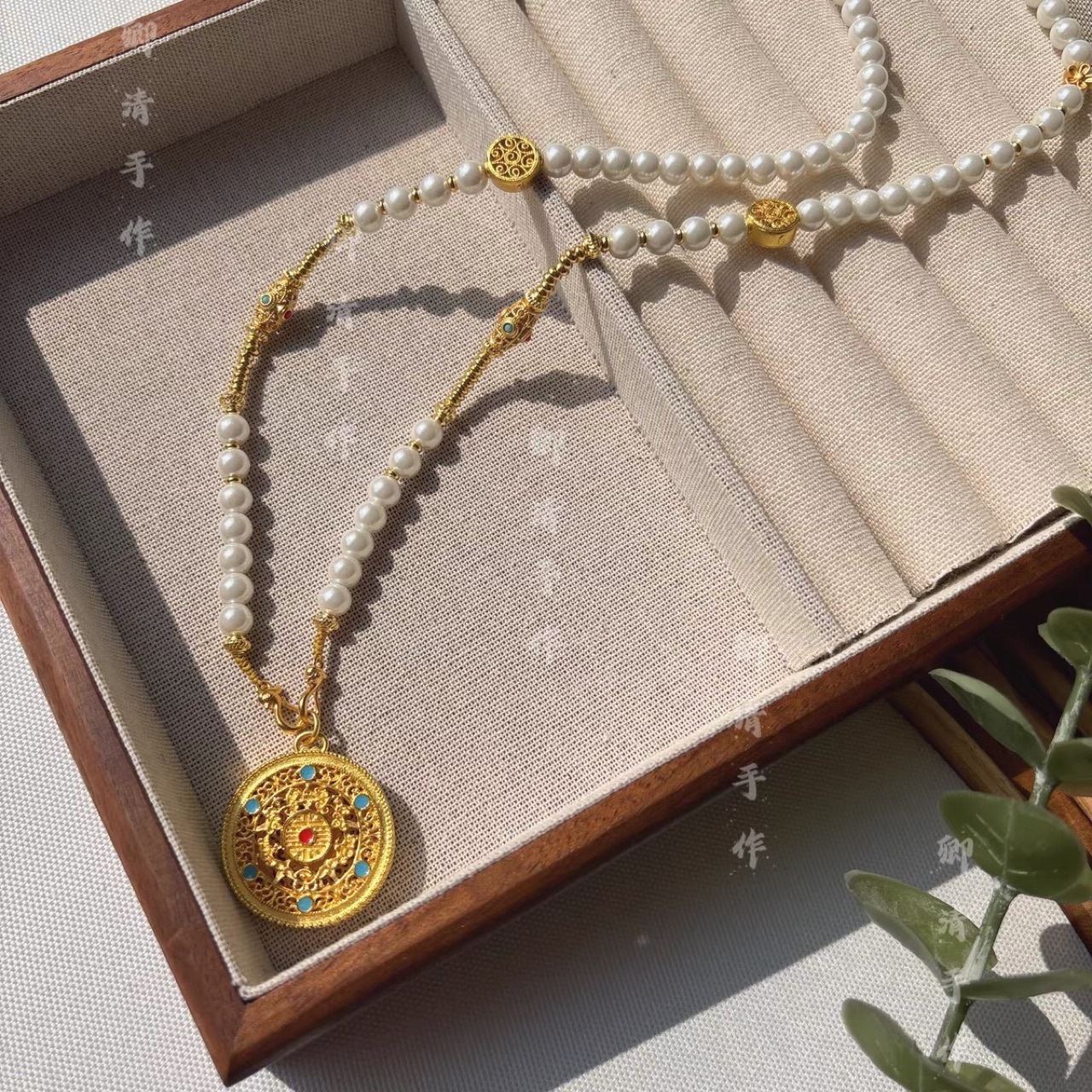 Pearl Filament Ancient Method Wufu Hollow Disc Necklace Woolen Chain Hanfu Accessories Popular Little Red Book Gold Shop Same