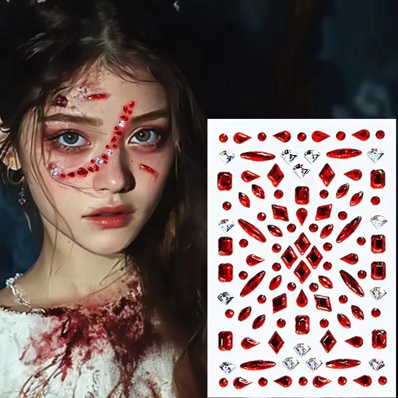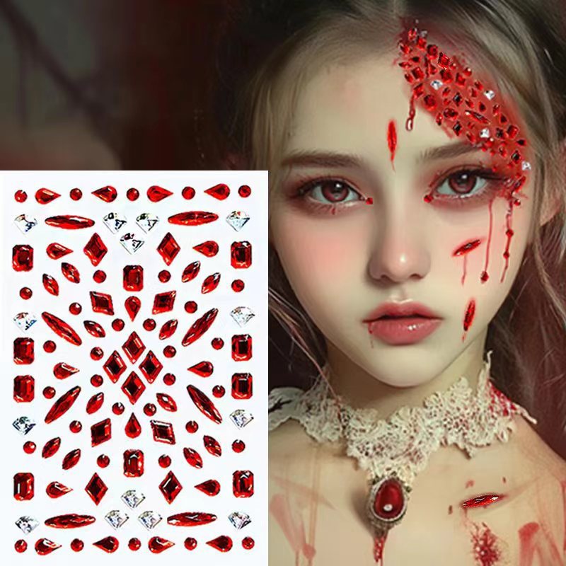 Face Sticker Makeup Sticker Diamond Halloween Red Gem Ice Small Broken Diamond Alien Horror Simulation Blood Diamond Tears Drill Eye Makeup