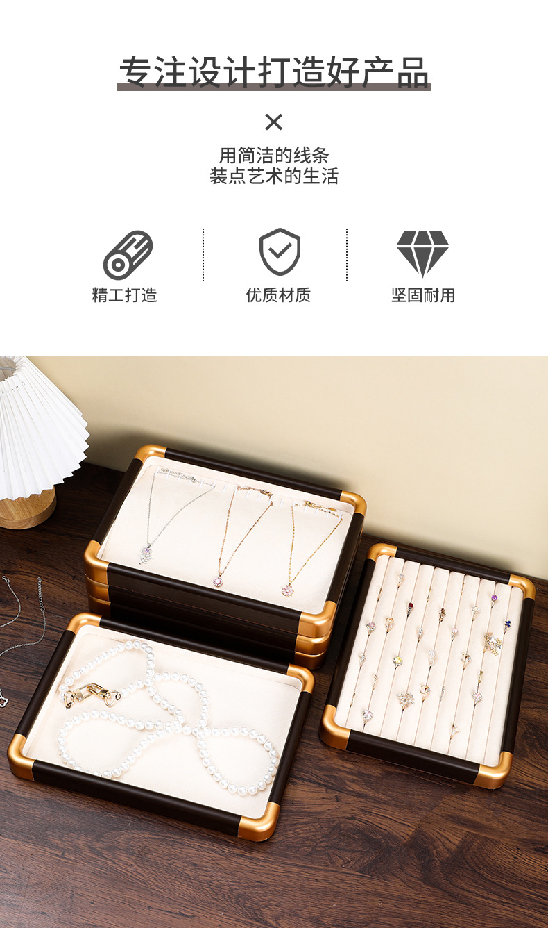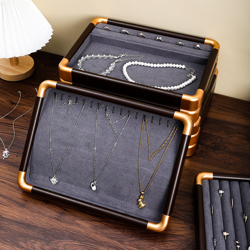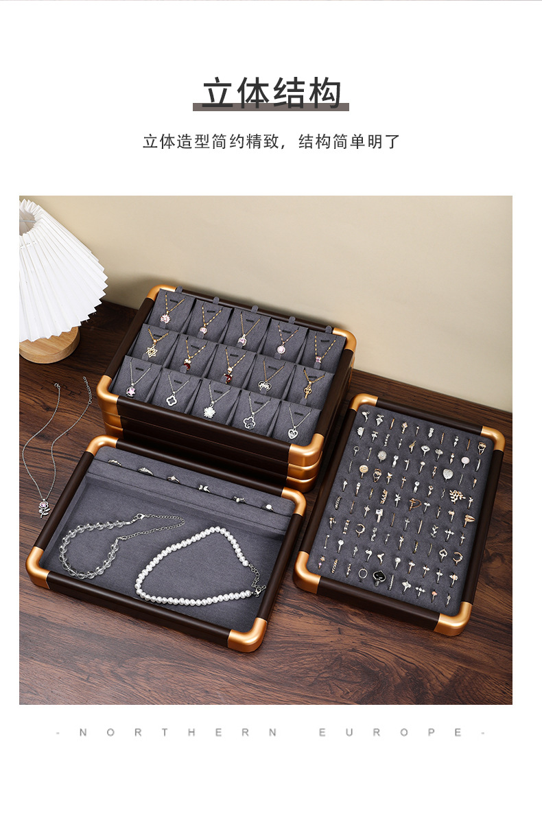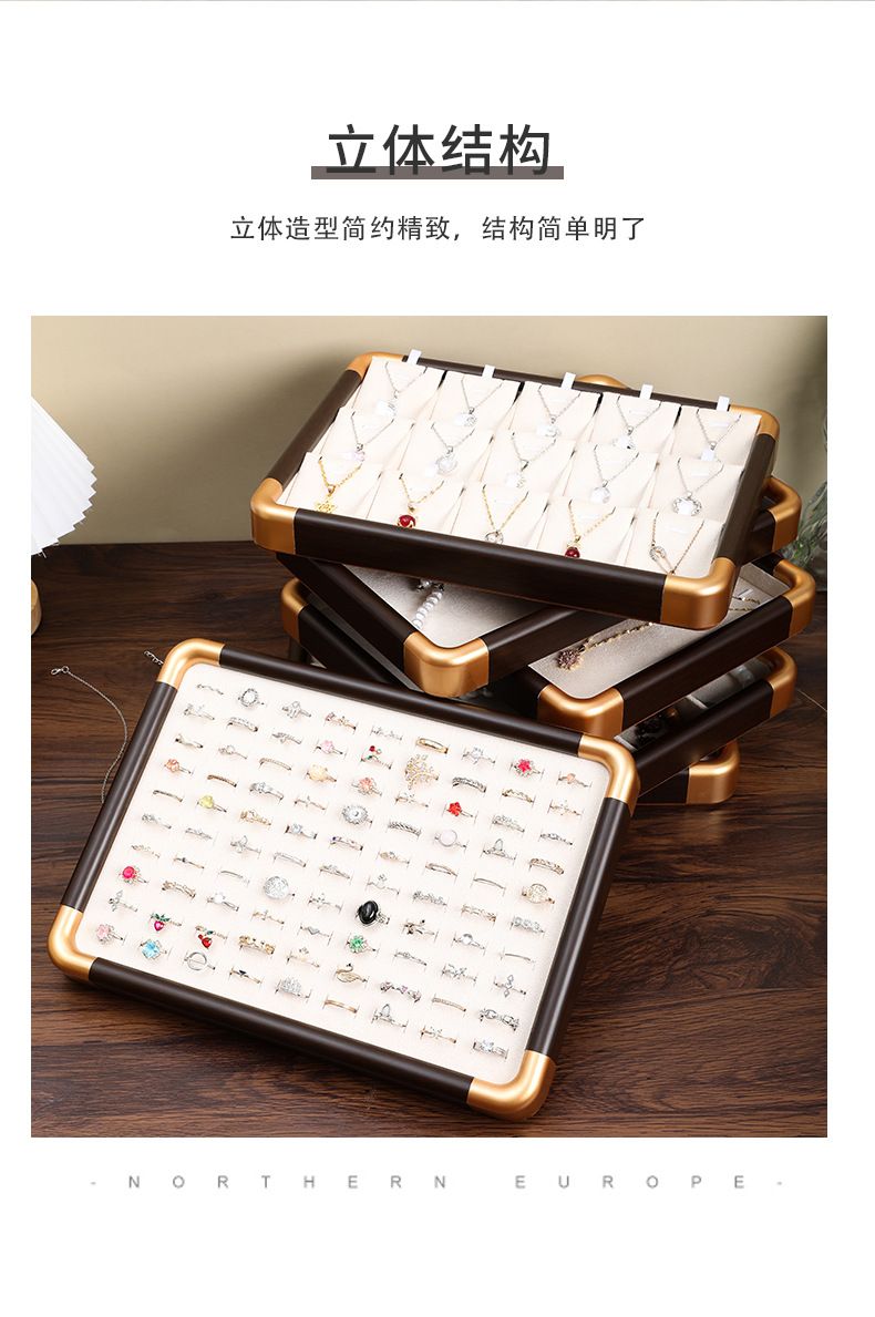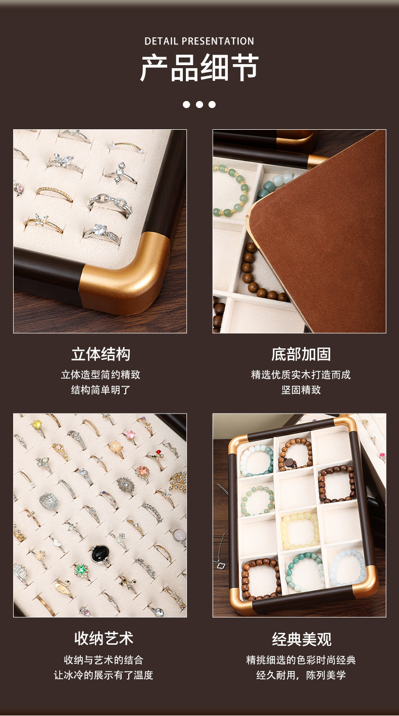 Walnut Jewelry Plate Combination Tray Light Luxury Ring Earrings Earrings Stud Storage Display Plate Jewelry Display Props