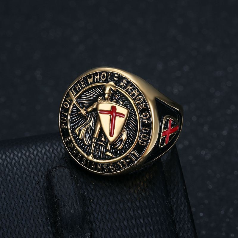 Men's Ring Retro Templar Red Cross Cross Cross Shield Ring European and American Personality Exaggerated Accessories