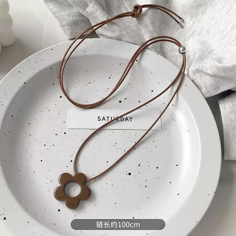 Color: Milky brown flower pull necklace