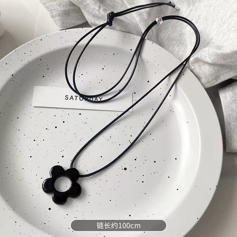 Color: Athens black flower pull necklace