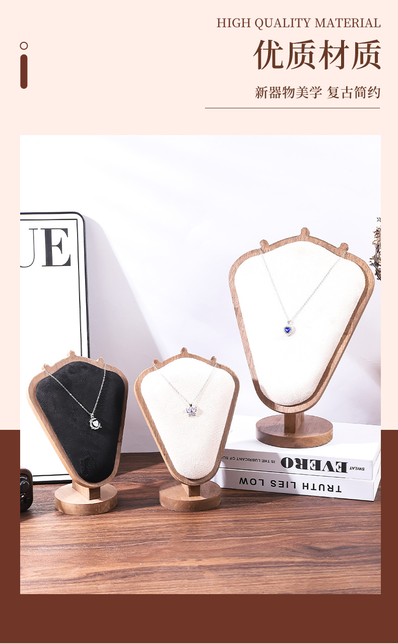 High-grade wooden black walnut necklace portrait display stand jewelry pendant model neck display props