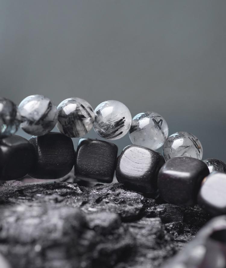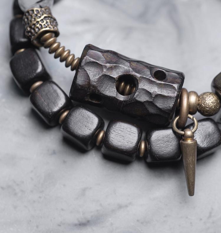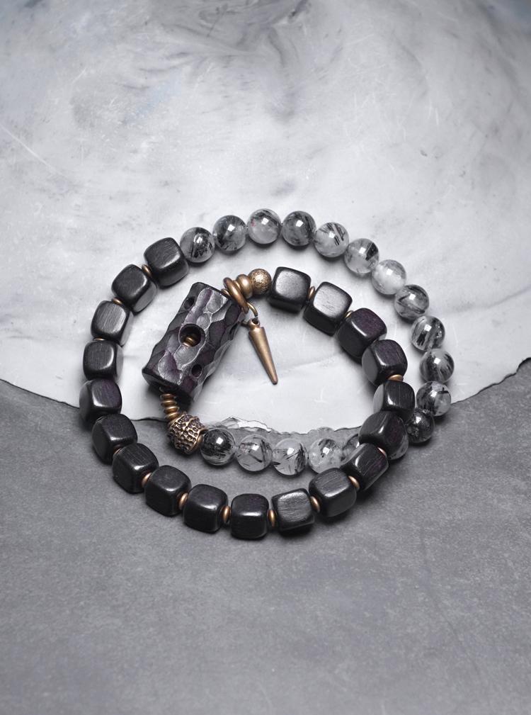Ethnic Style Black Hair Crystal Mix and Match Handmade Texture Ebony Bead Bracelet Men's Retro Personality Double Circle Bracelet Accessories