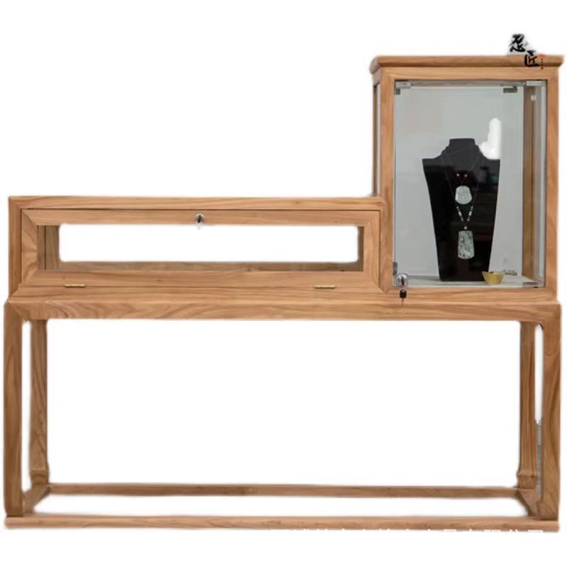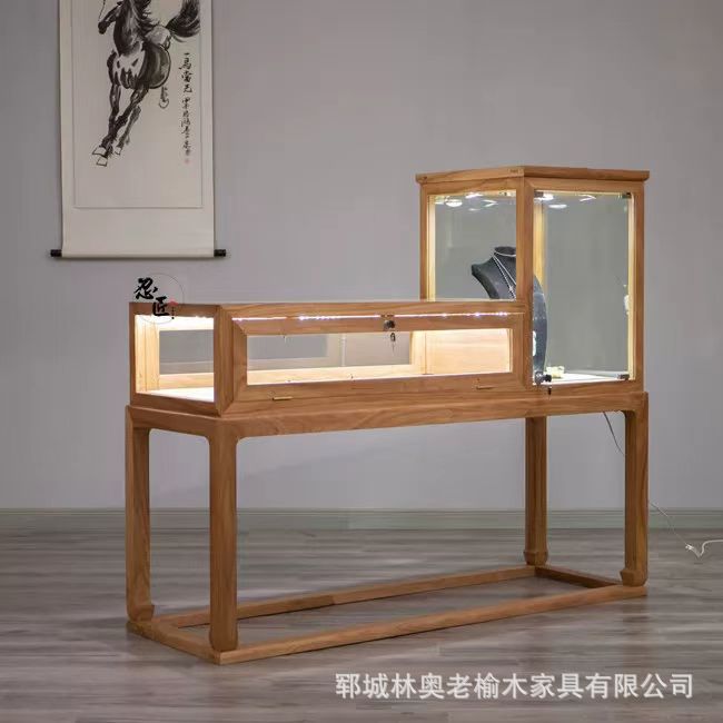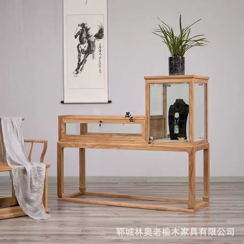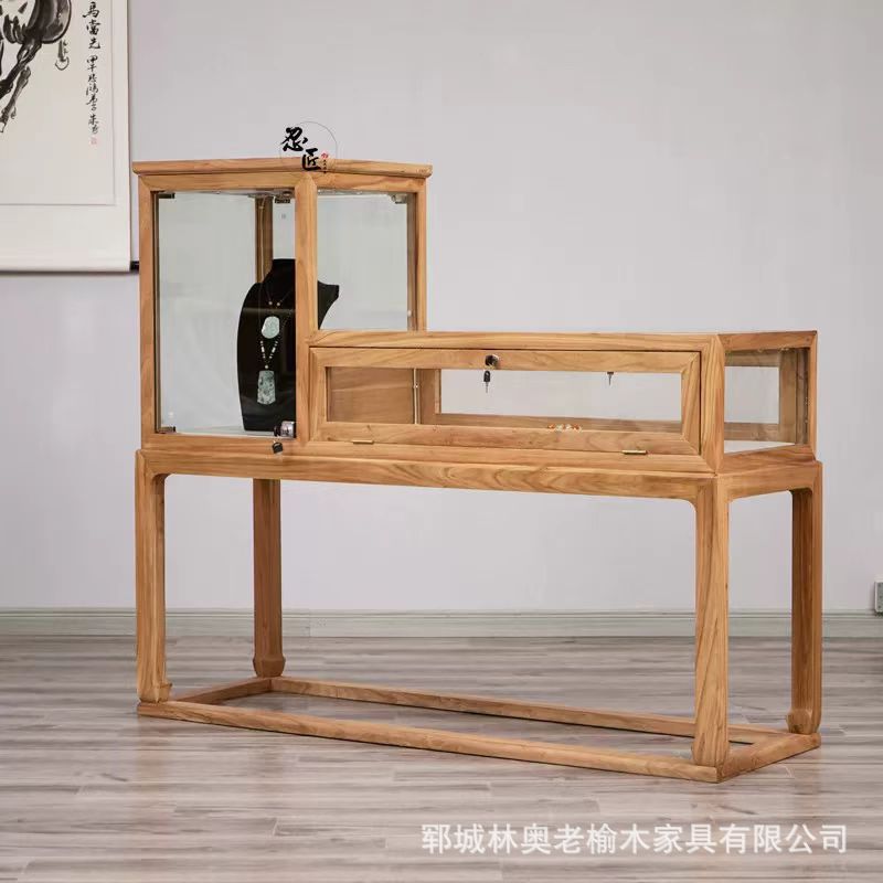 Old Elm Wooden Bucket Cabinet Household Jewelry Glass Cabinet Store Display Cabinet Elm Wooden Furniture Locker Ancient Ancient Cabinet