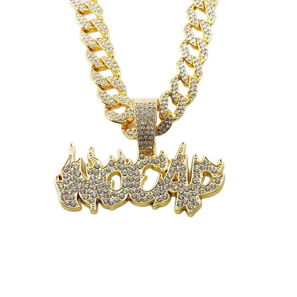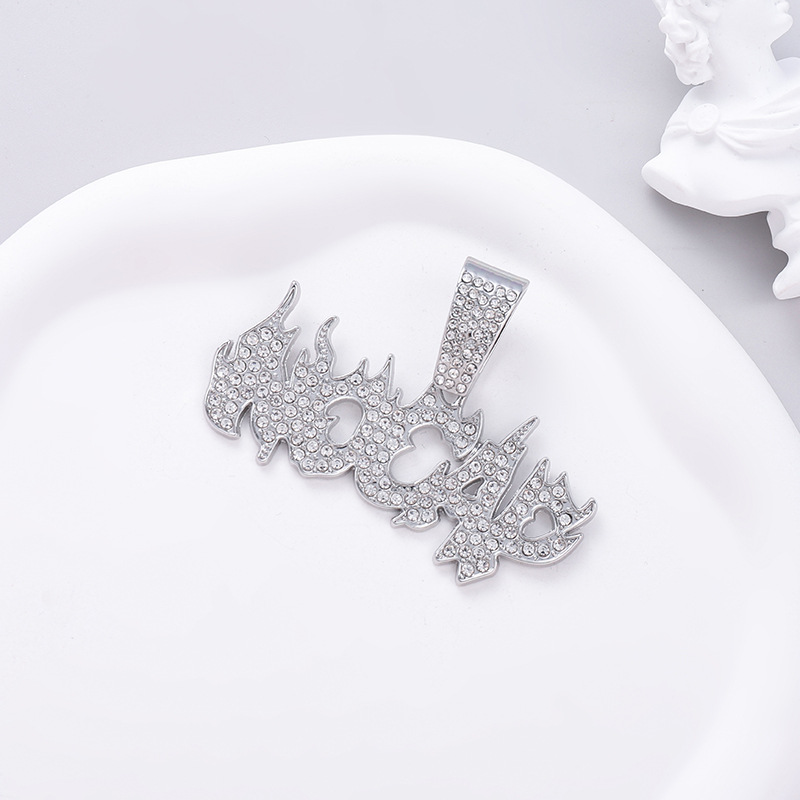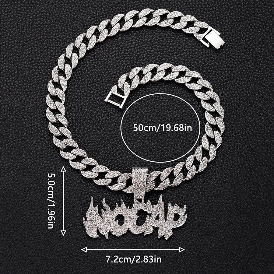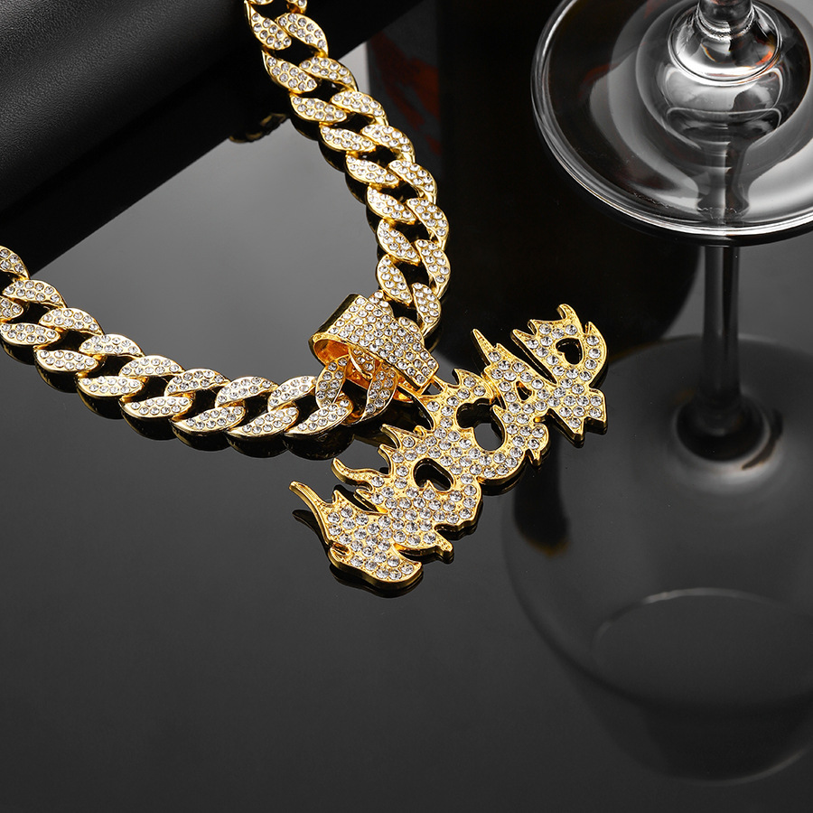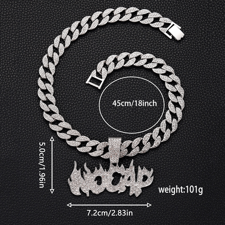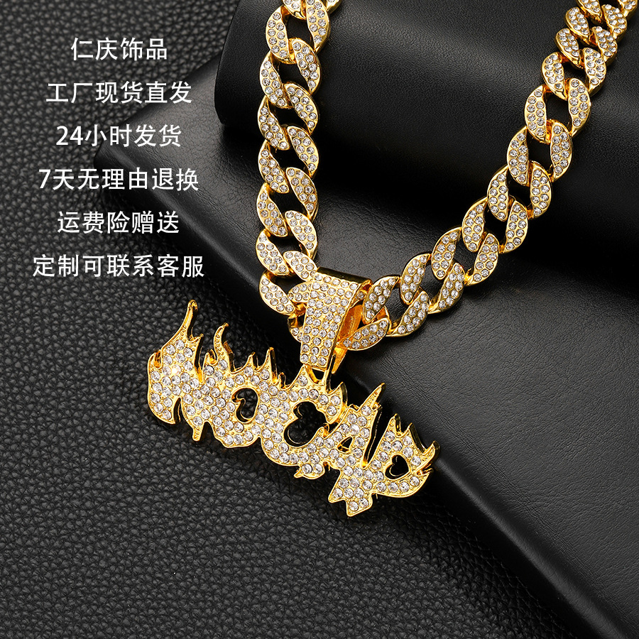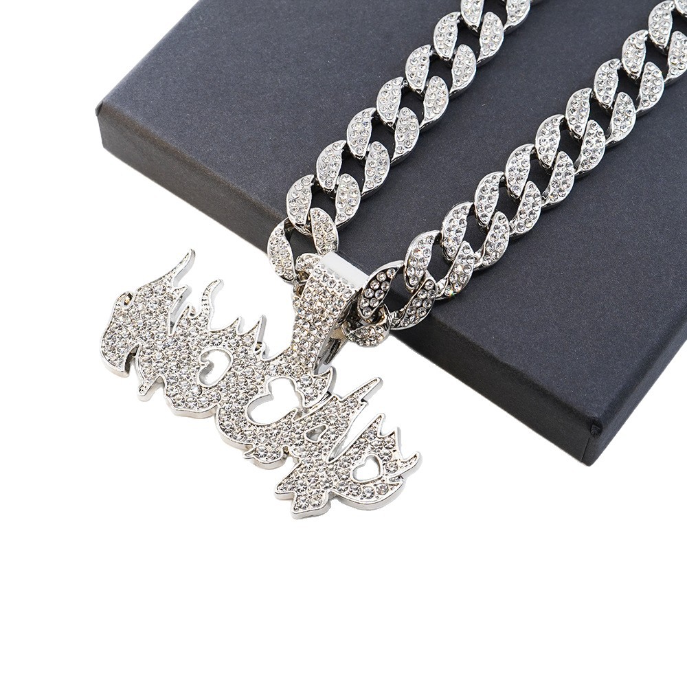 Alloy Flame Full Diamond Letter Heat Trend Exaggerated Men's Hip Hop Necklace Personality Hip-hop Rap Cuban Chain