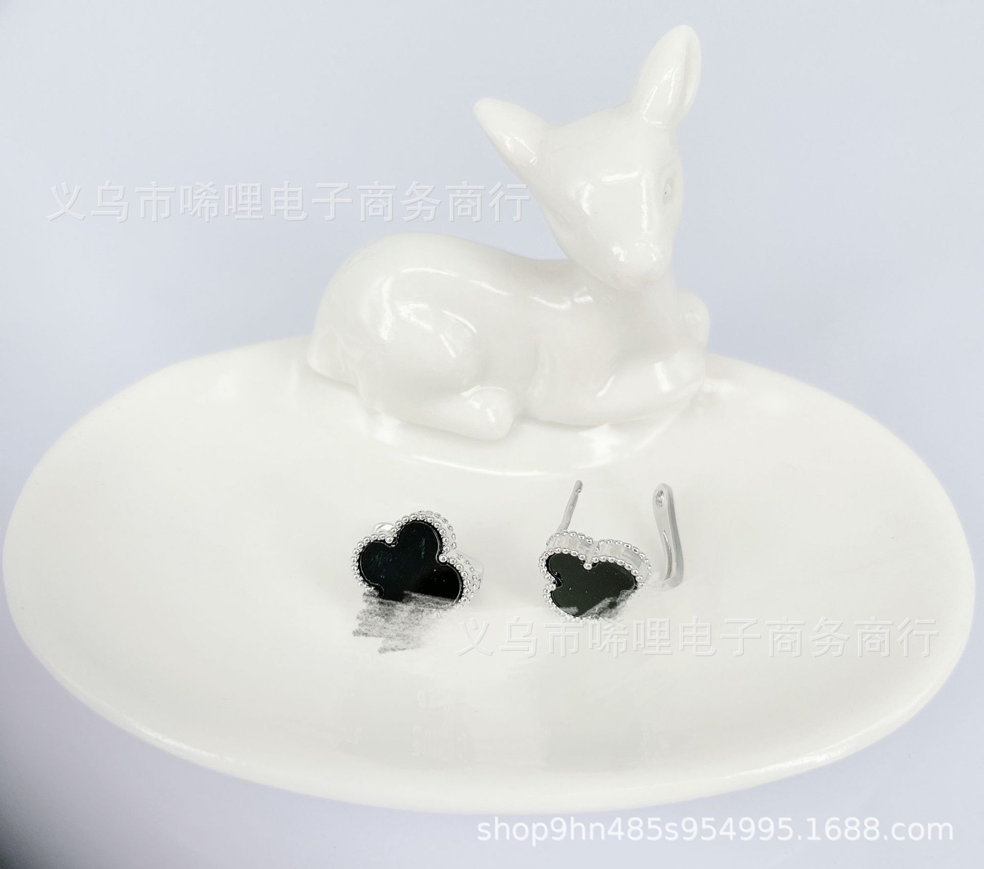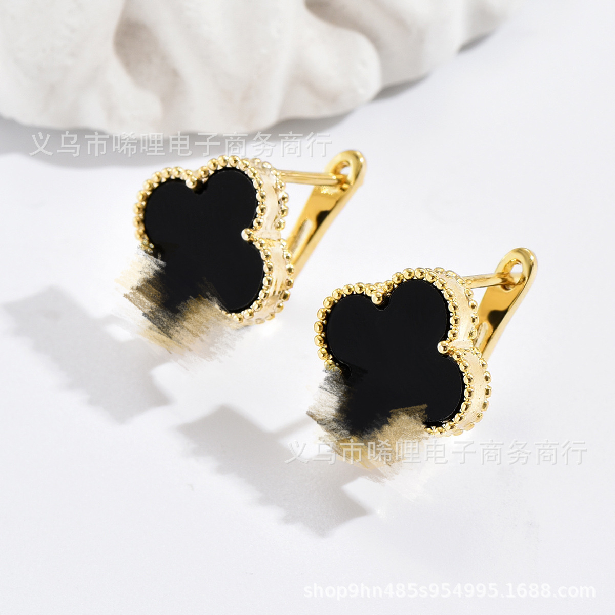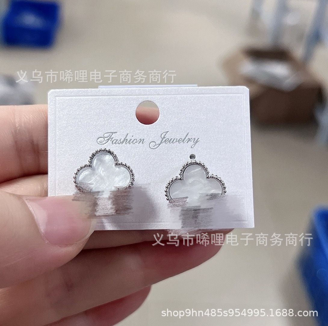 Light Luxury Design Lucky Grass Mosquito Incense Plate Ear Ring Advanced Sense Niche Ear Buckle Black and White Four Leaf Elegant Cross-border Earrings