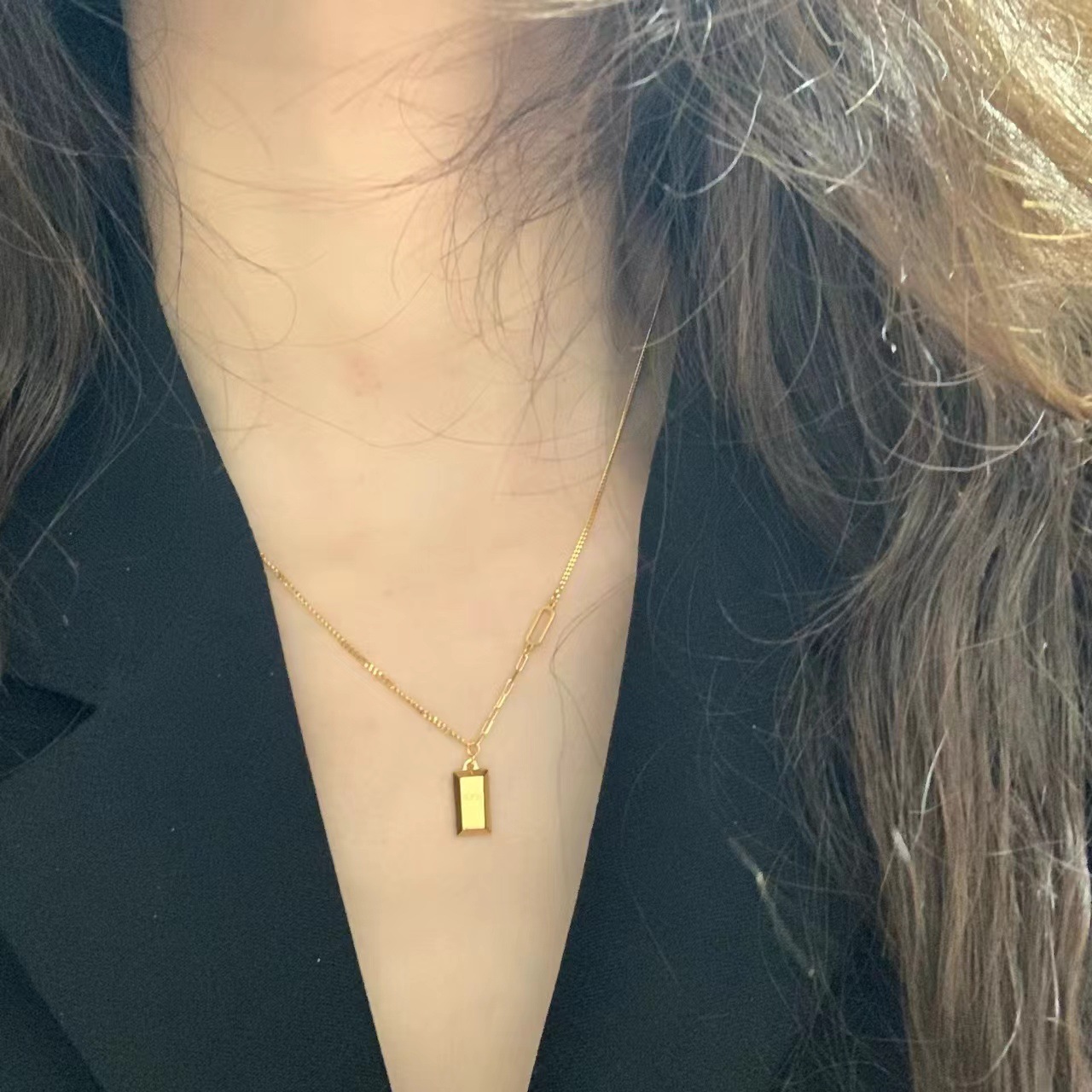 Cross-border Hot-selling European and American Rich Small Brick Necklace Women's Small Square Pendant Gold-plated High-end All-match Collarbone Chain Ornaments
