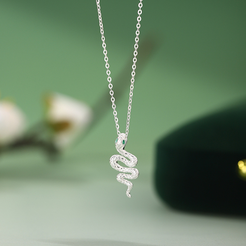 Original Ganjia S925 Sterling Silver New Year Spirit Snake Necklace Ruyi Si Snake Benmingnian Clavicle Chain Gift suit Daifa