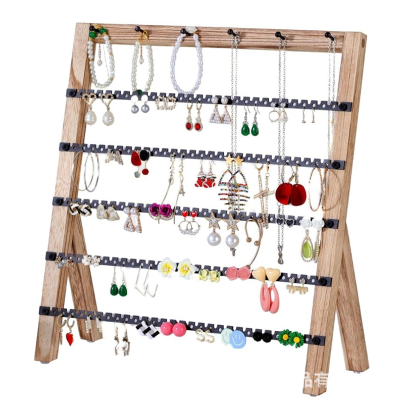 Wooden Earring Rack Countertop Jewelry Display Rack Multi-layer Country Style Jewelry Display Rack Store Solid Wood Storage Rack