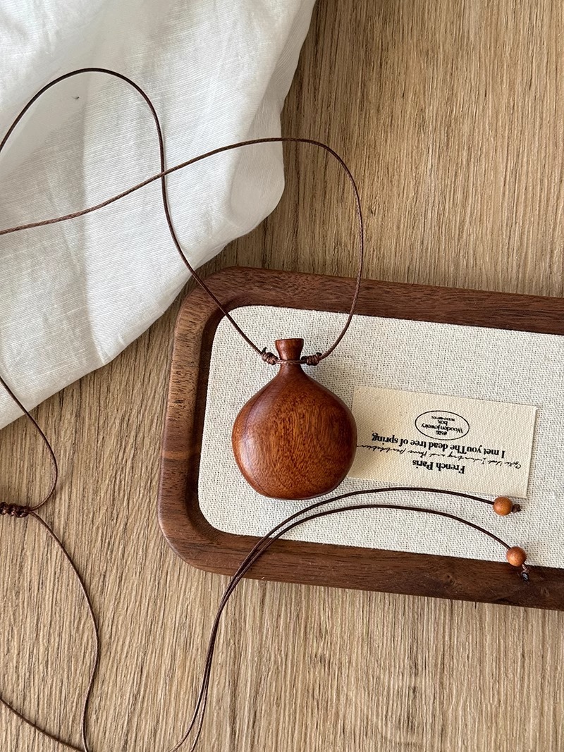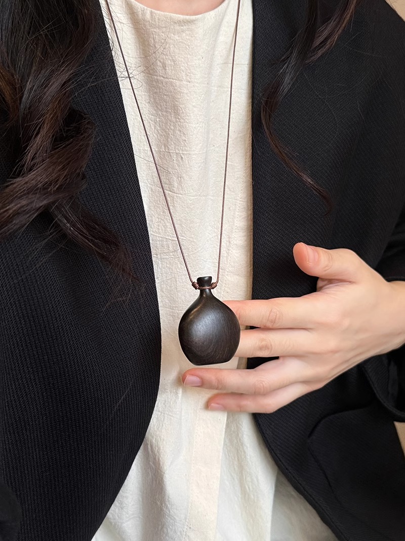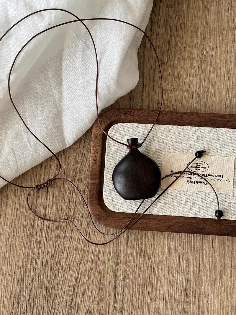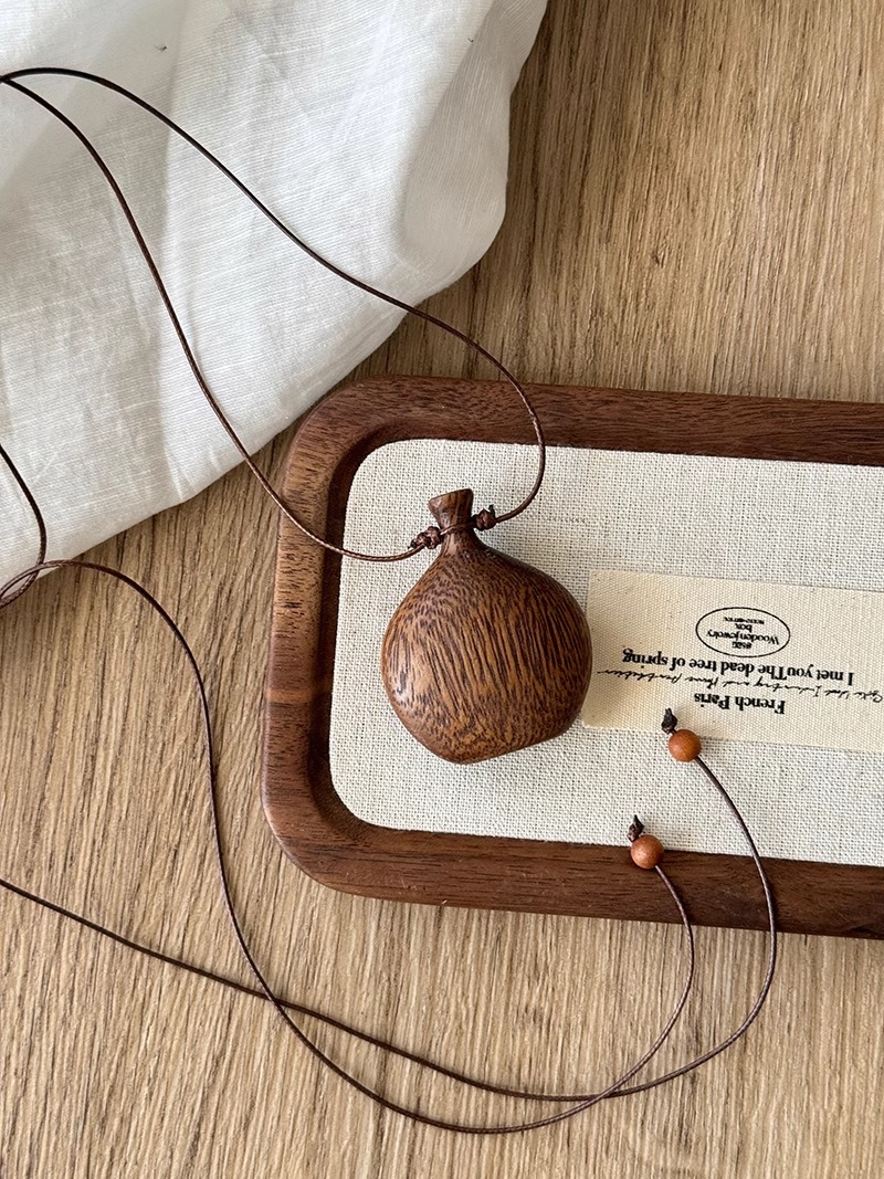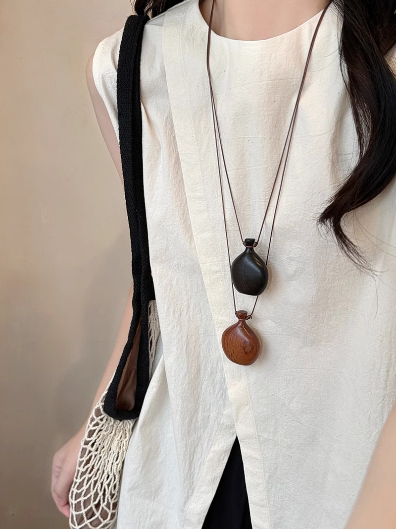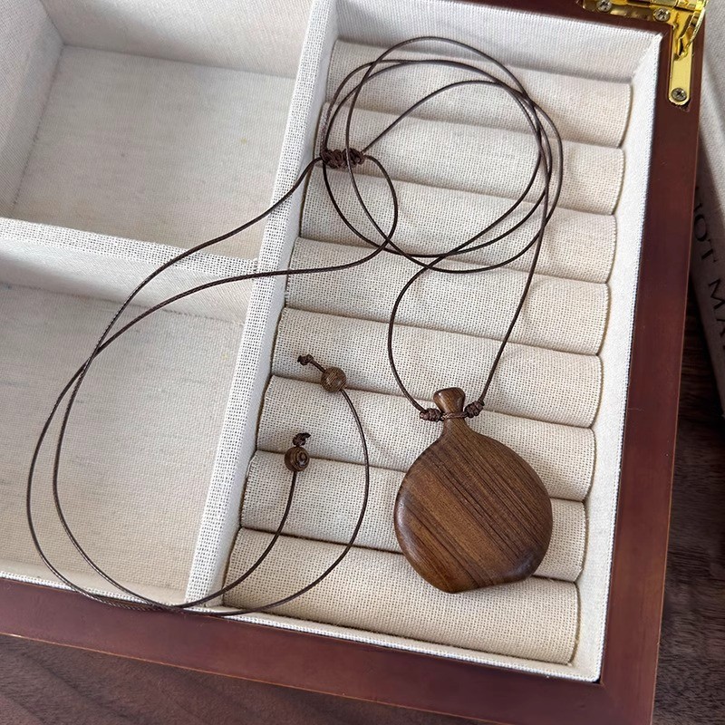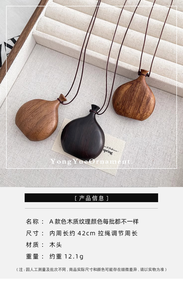 Atmospheric Accessories Wooden Flask Necklace Light Luxury Niche Design Agarwood Pendant Sweater Chain Long Style Autumn and Winter