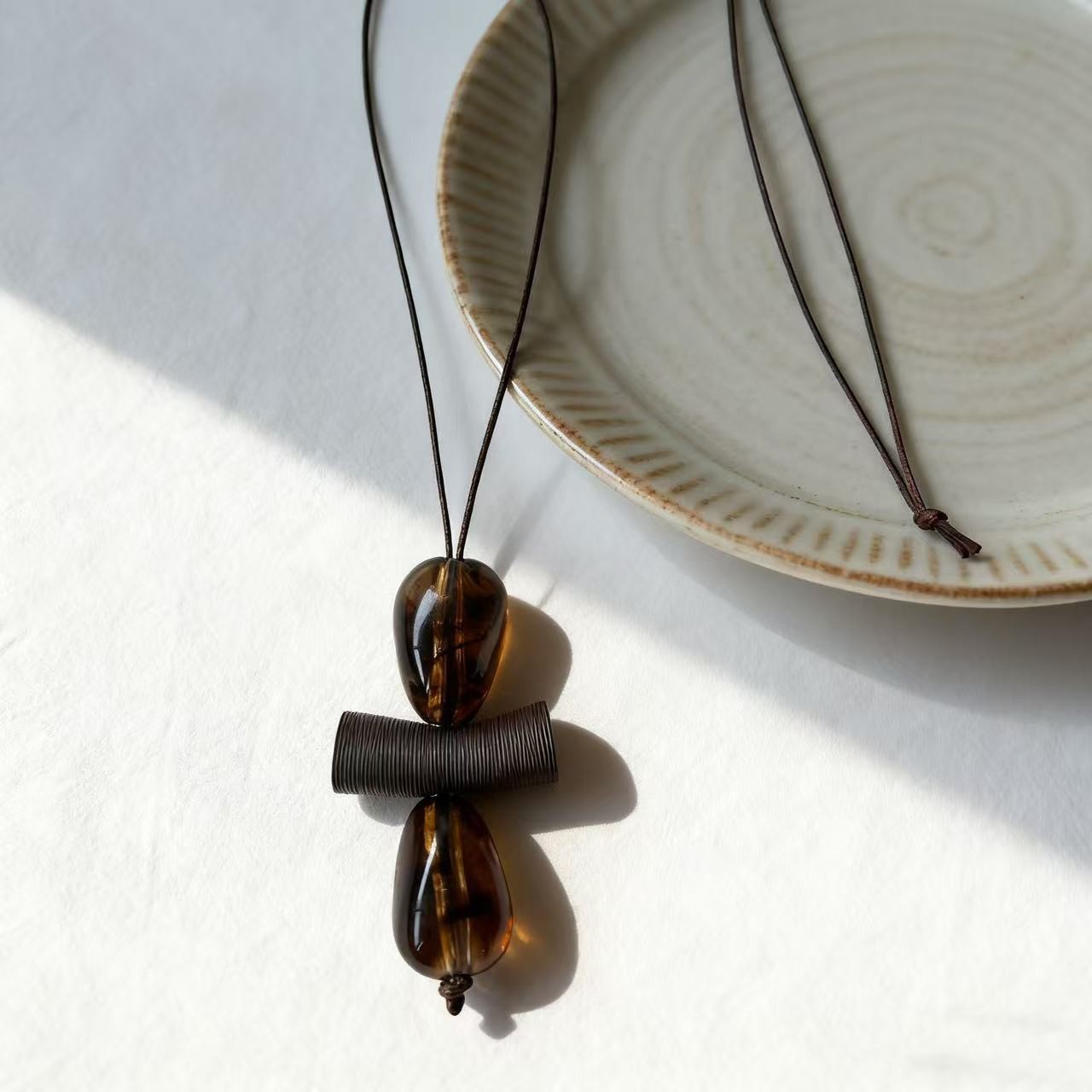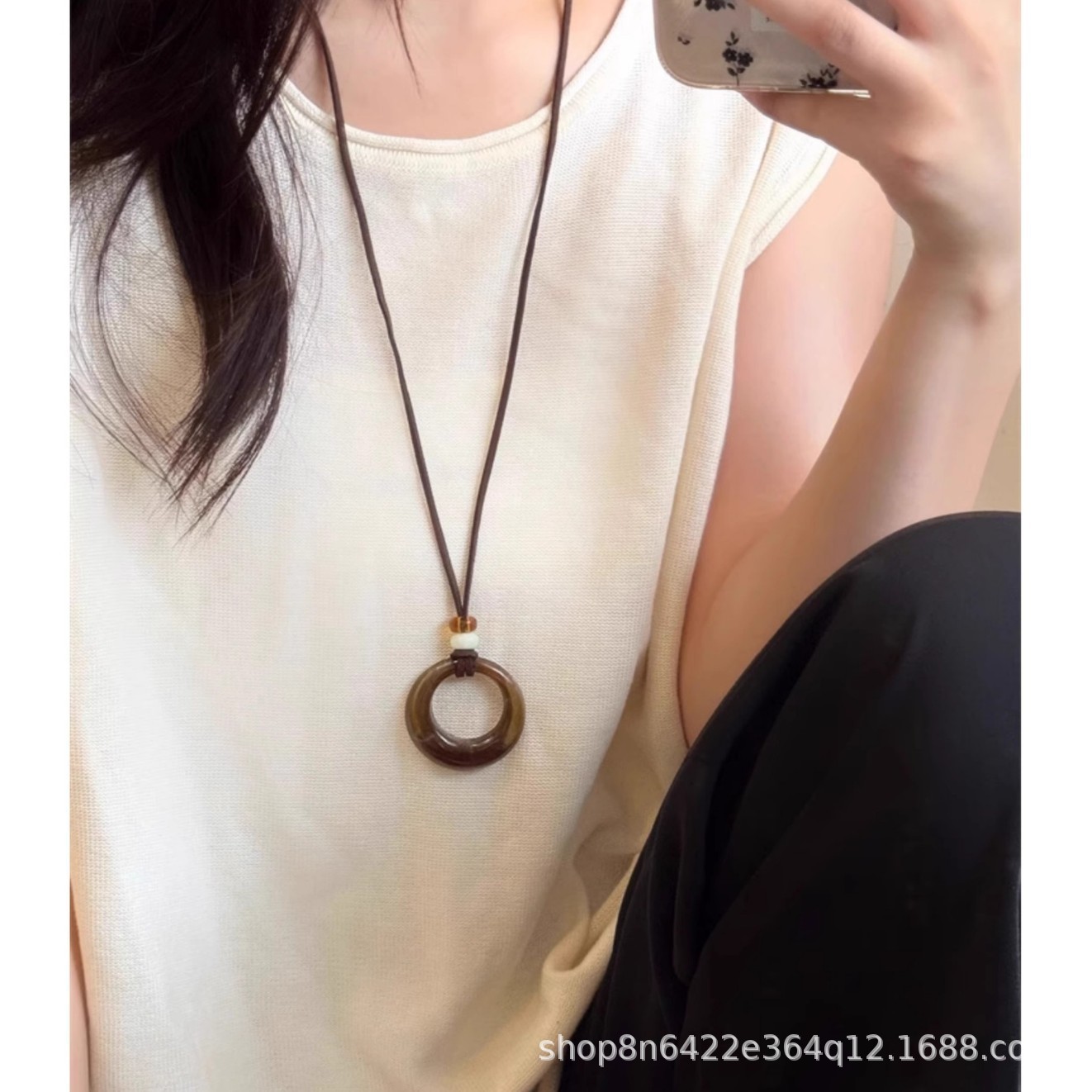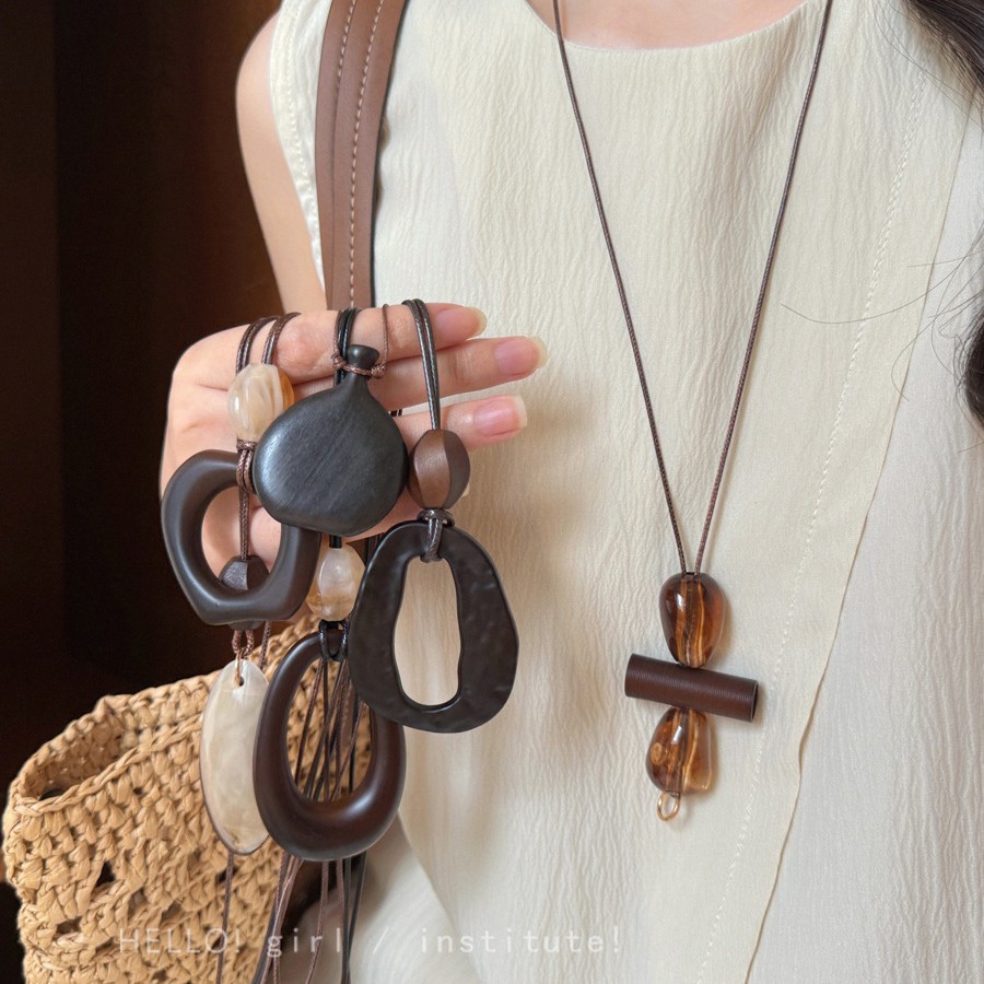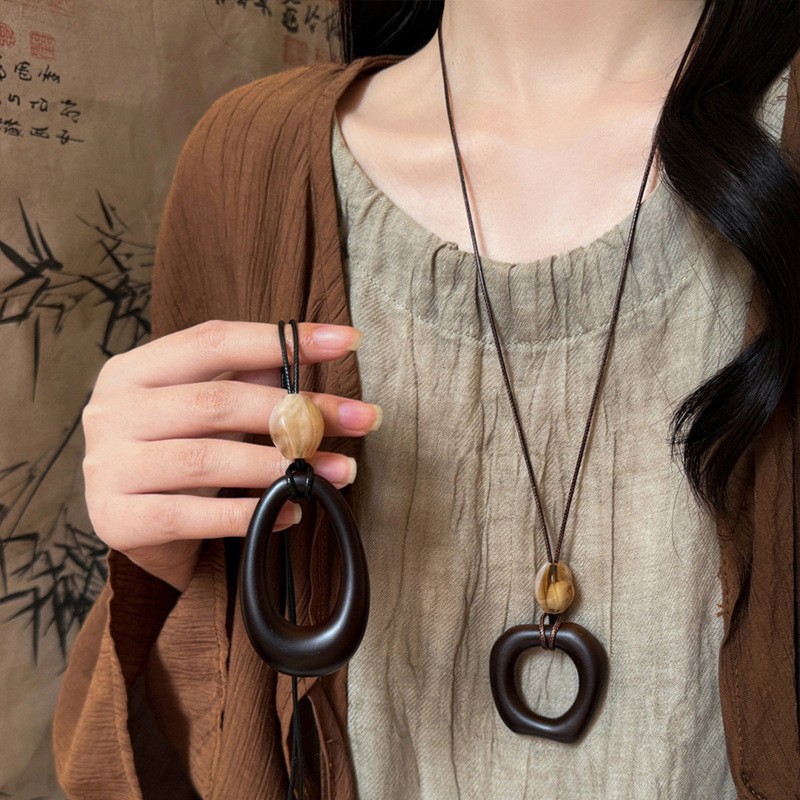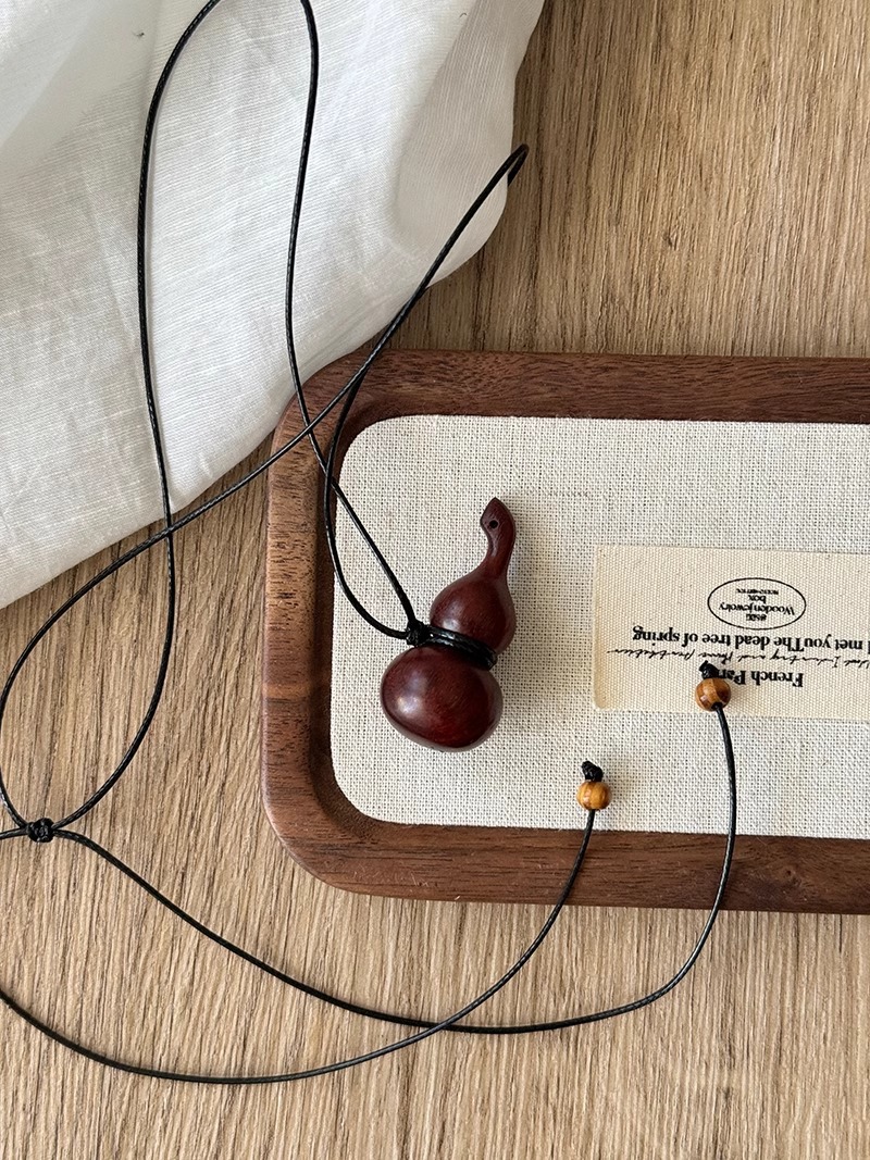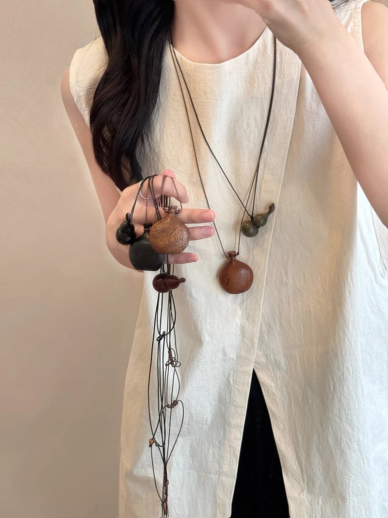 Atmospheric Accessories Wooden Flask Necklace Light Luxury Niche Design Agarwood Pendant Sweater Chain Long Style Autumn and Winter