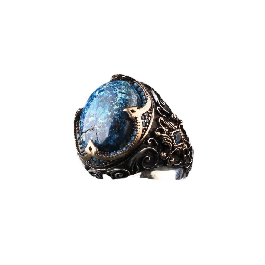 Jianjie cross-border European and American craftsmen diamond-encrusted blue carved ring Amazon retro wholesale men's ring direct sales