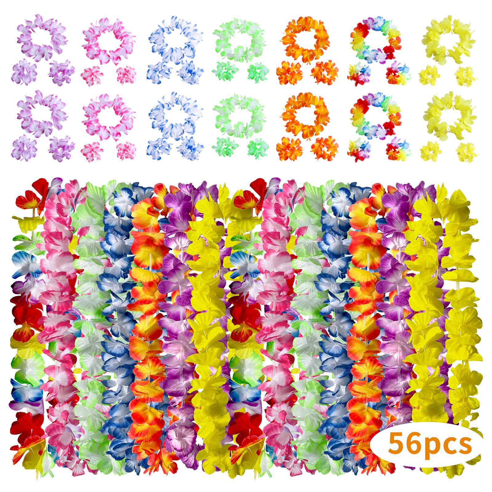 56PCS Classic Garment Four-piece Set Holiday Party Hawaii Seaside Vacation Decorative Petal Necklace