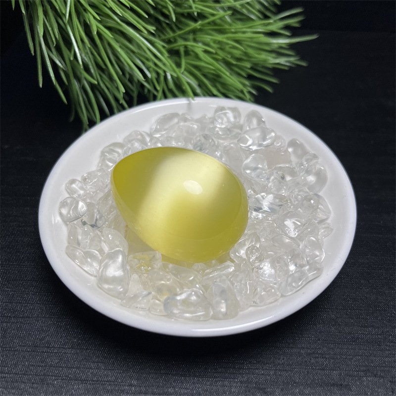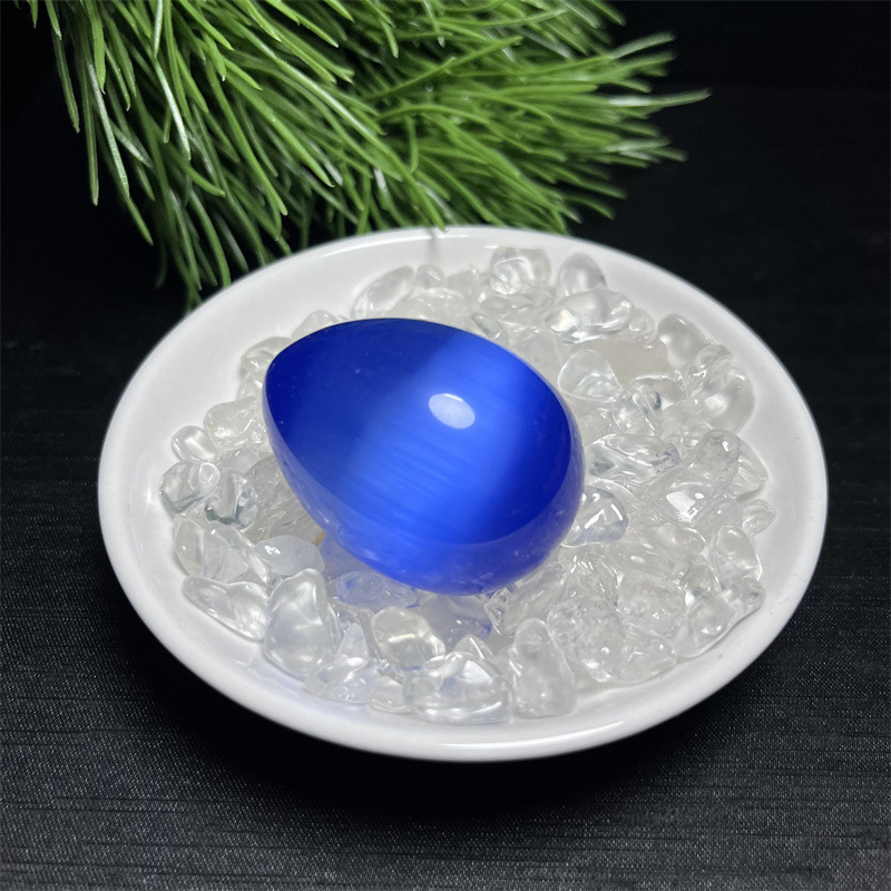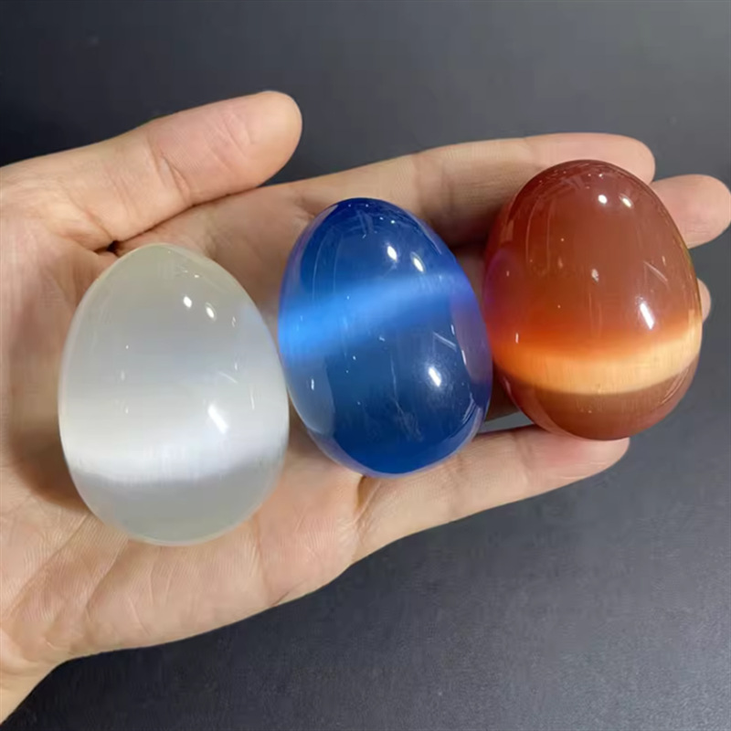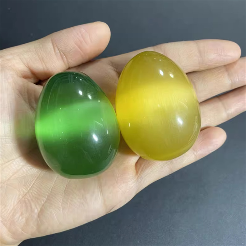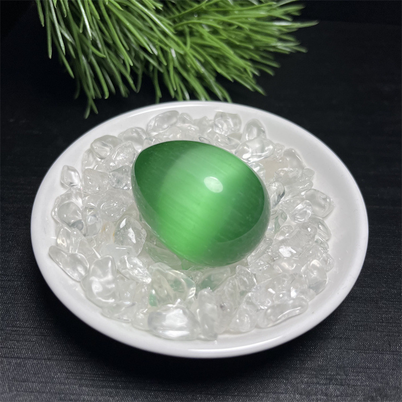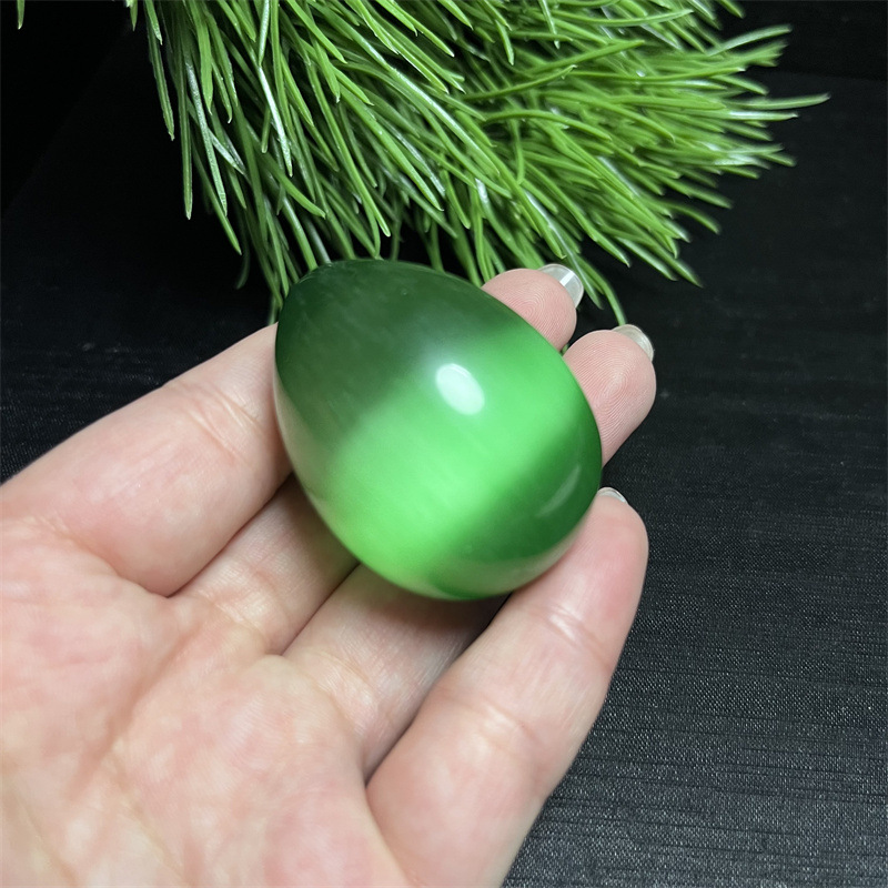 Cat's eye stone small egg shape stone 4.5*3.4cm polished small egg ornaments meditation play handle play pieces
