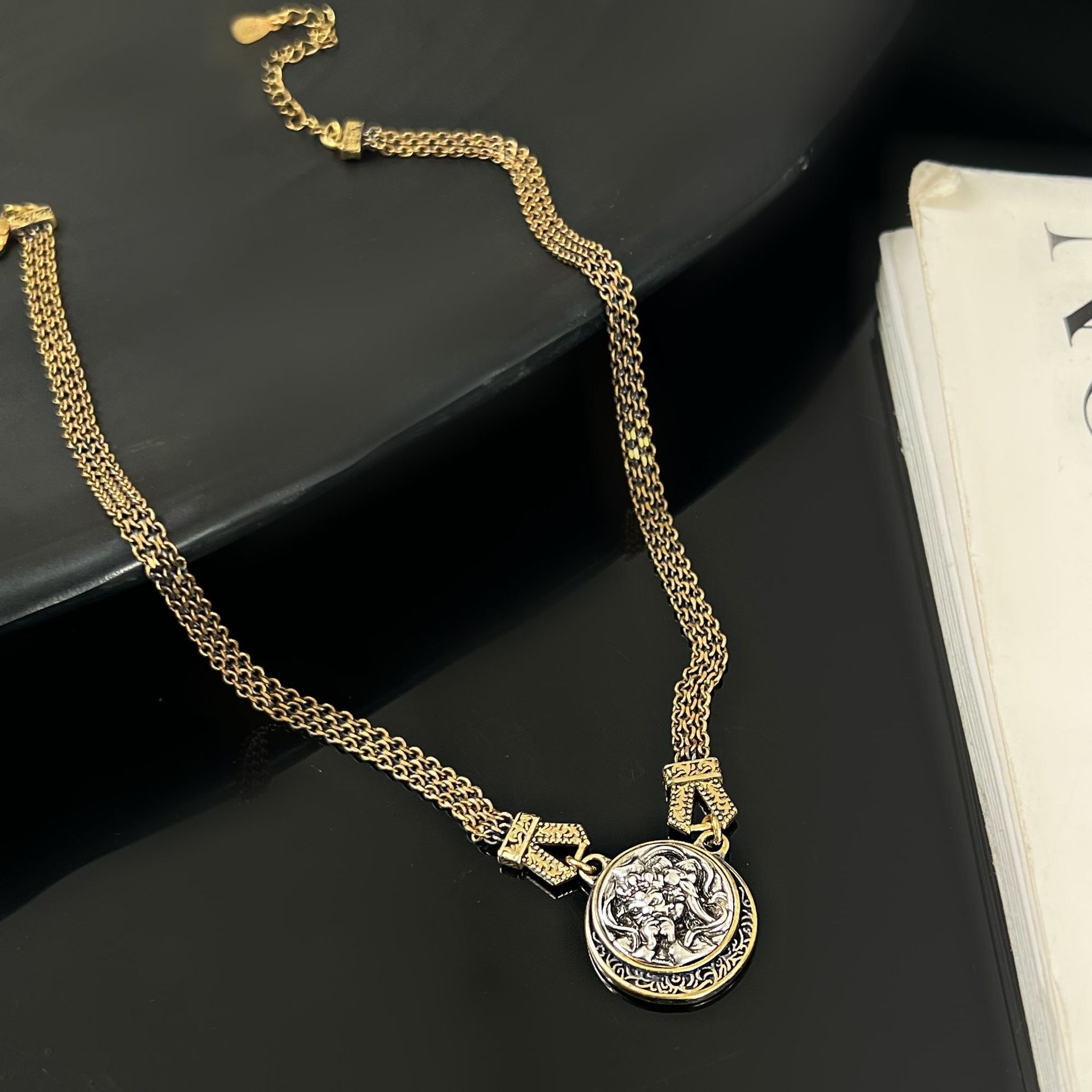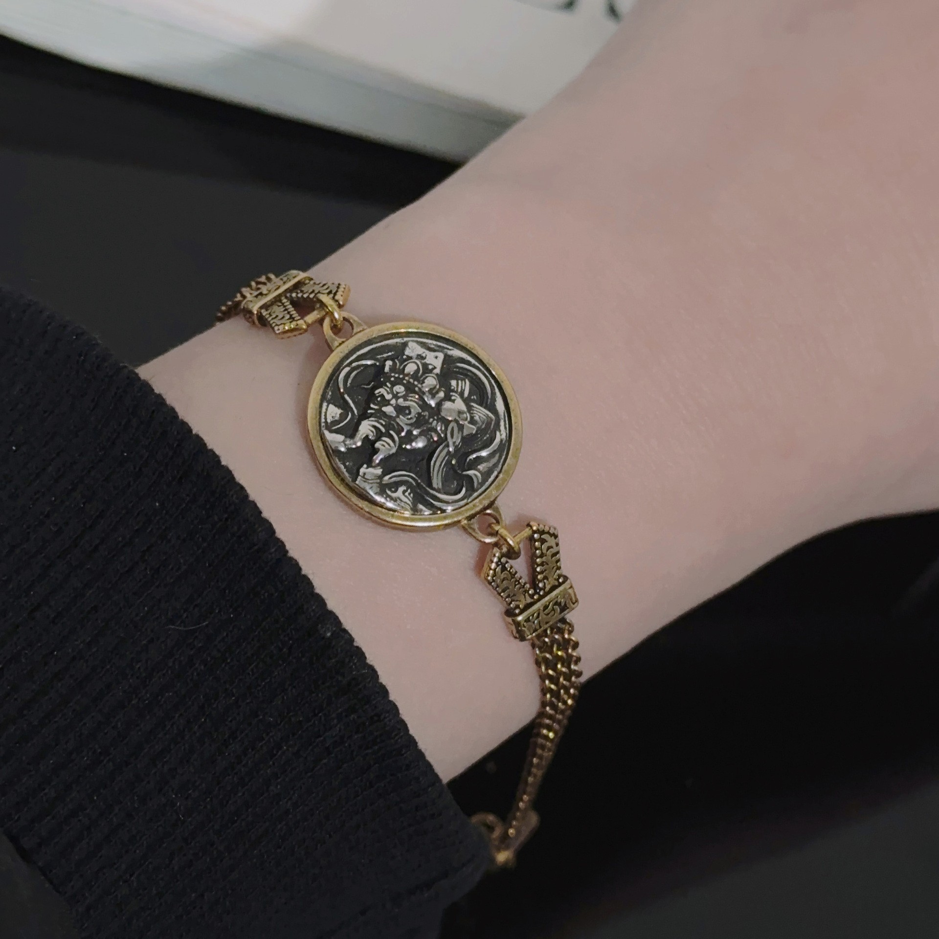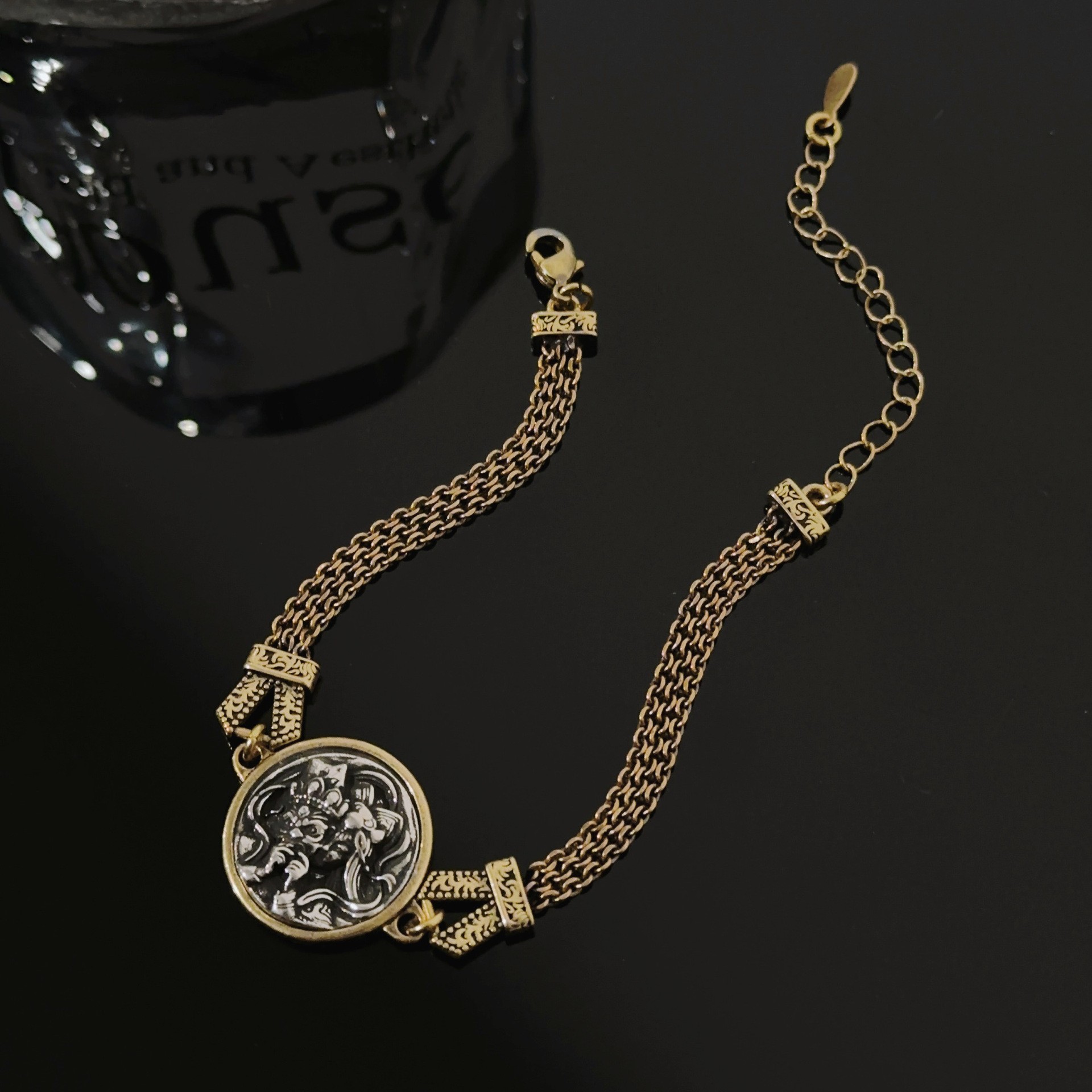 Vintage Tang Grass Pattern Xizang Girl Mask Goddess Lace Necklace Zakiram Round Brand Collarbone Chain Bracelet suit